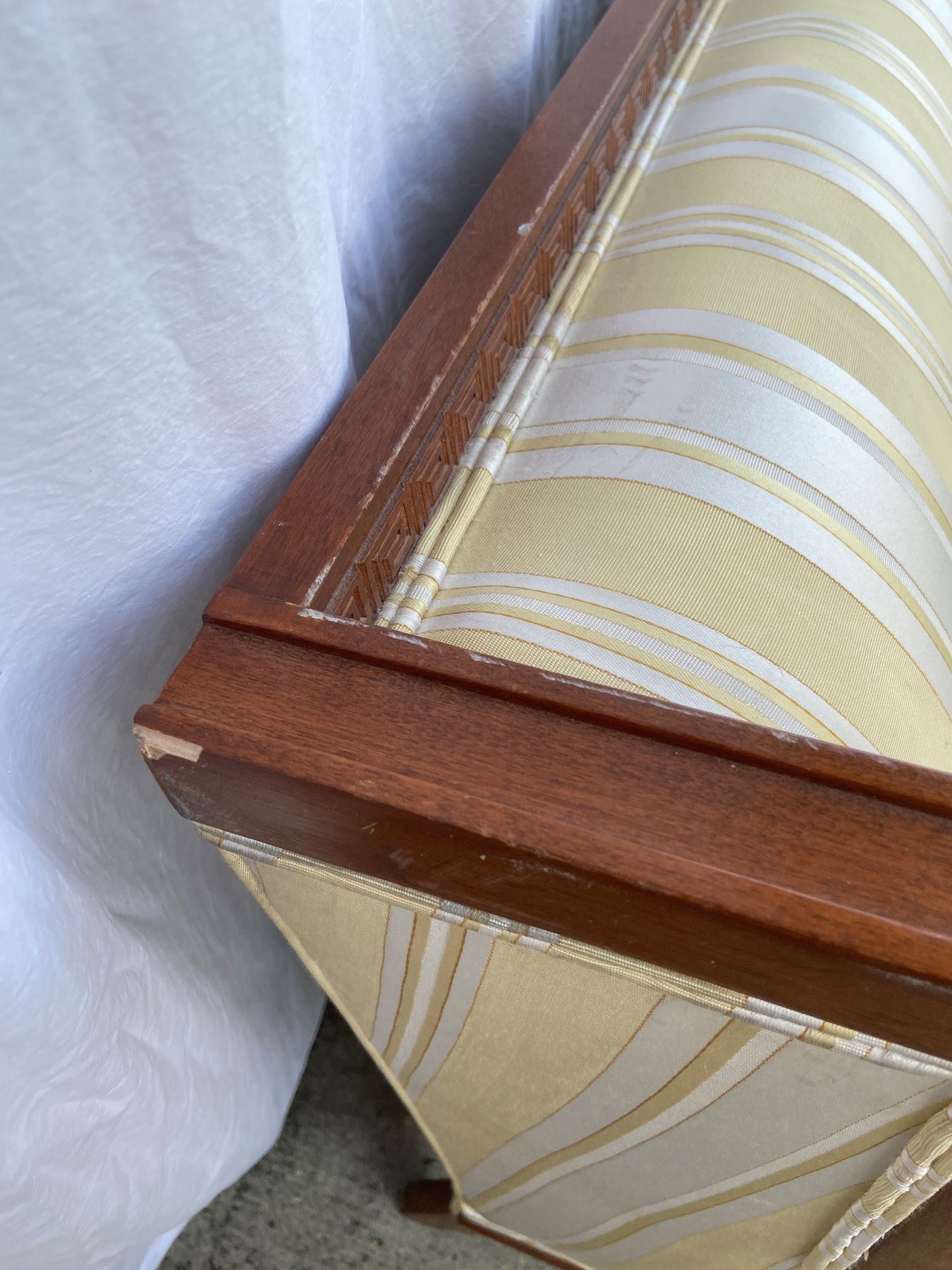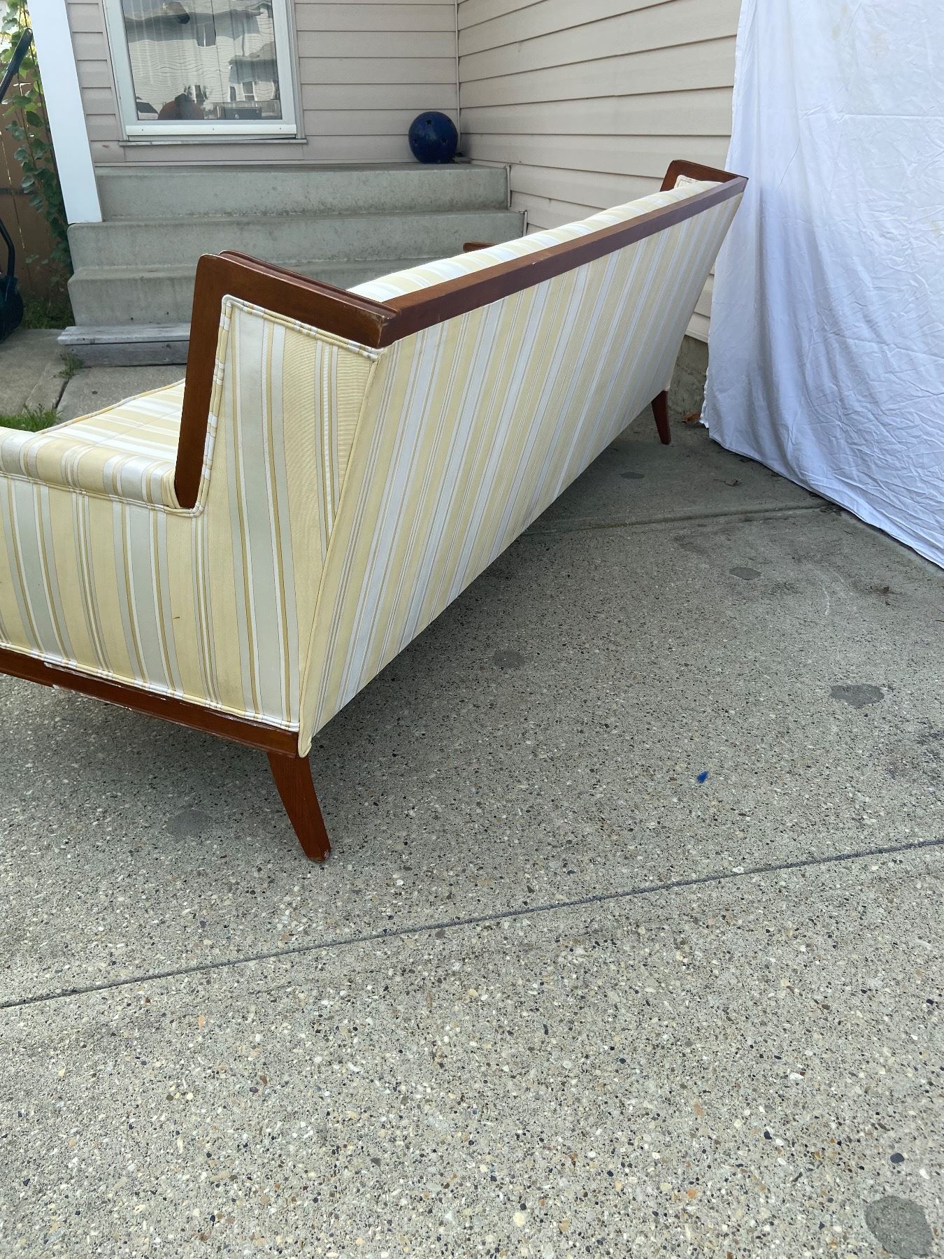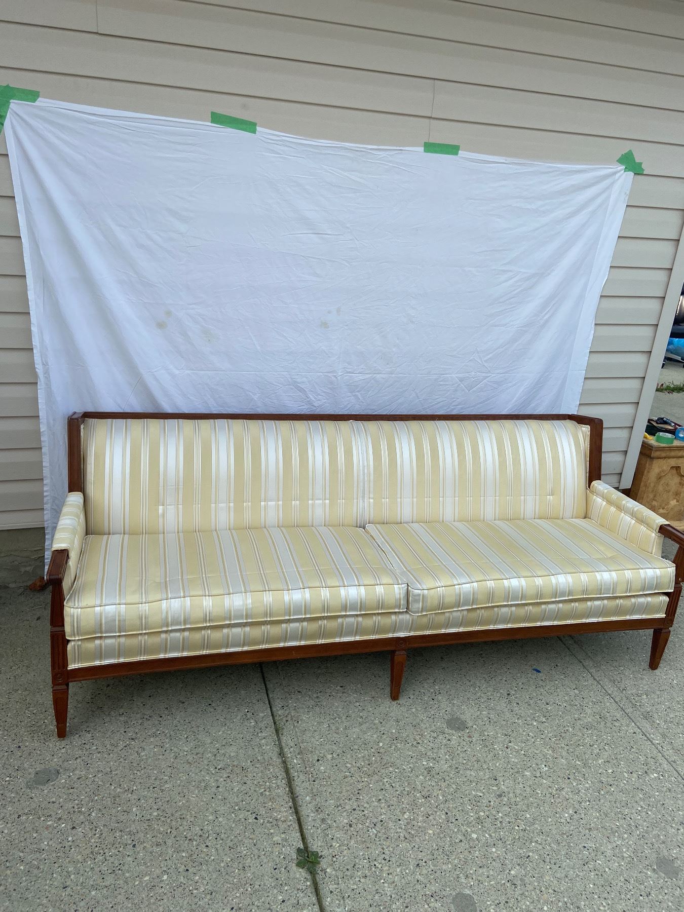Has scuffs and chips, stains on arms, 84"L x 32"W x 32"H