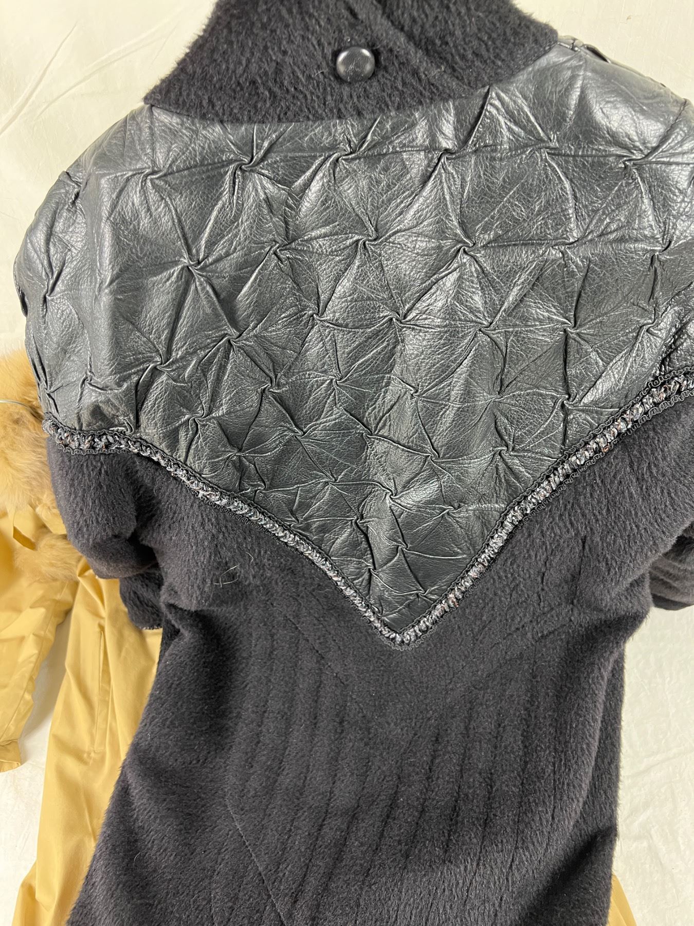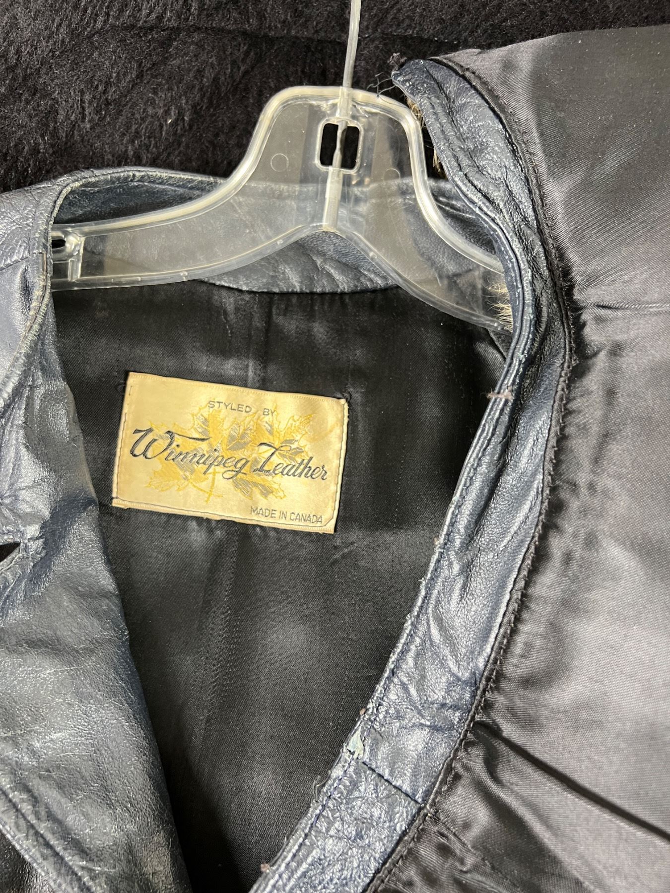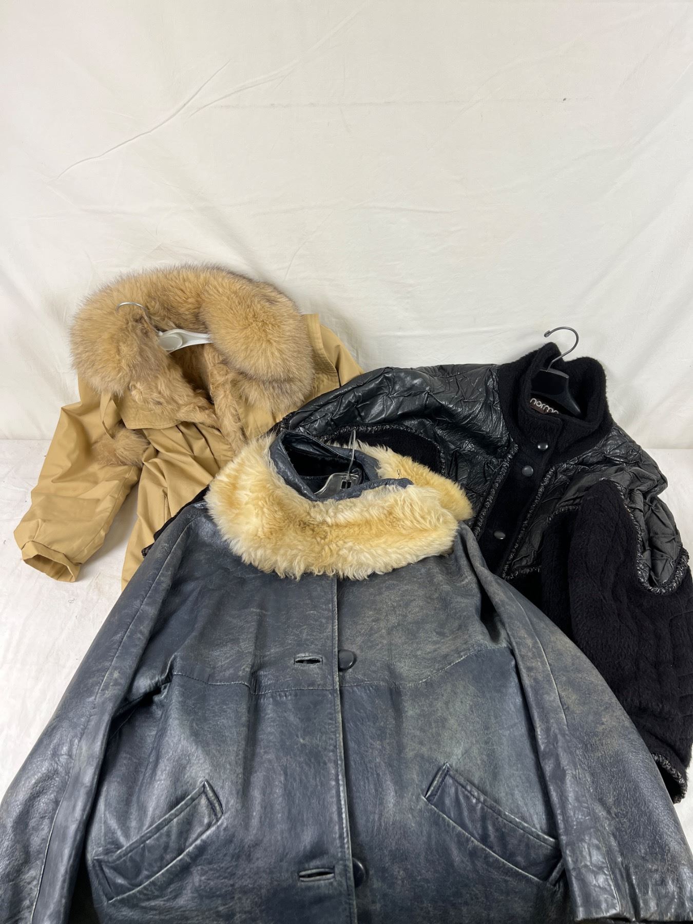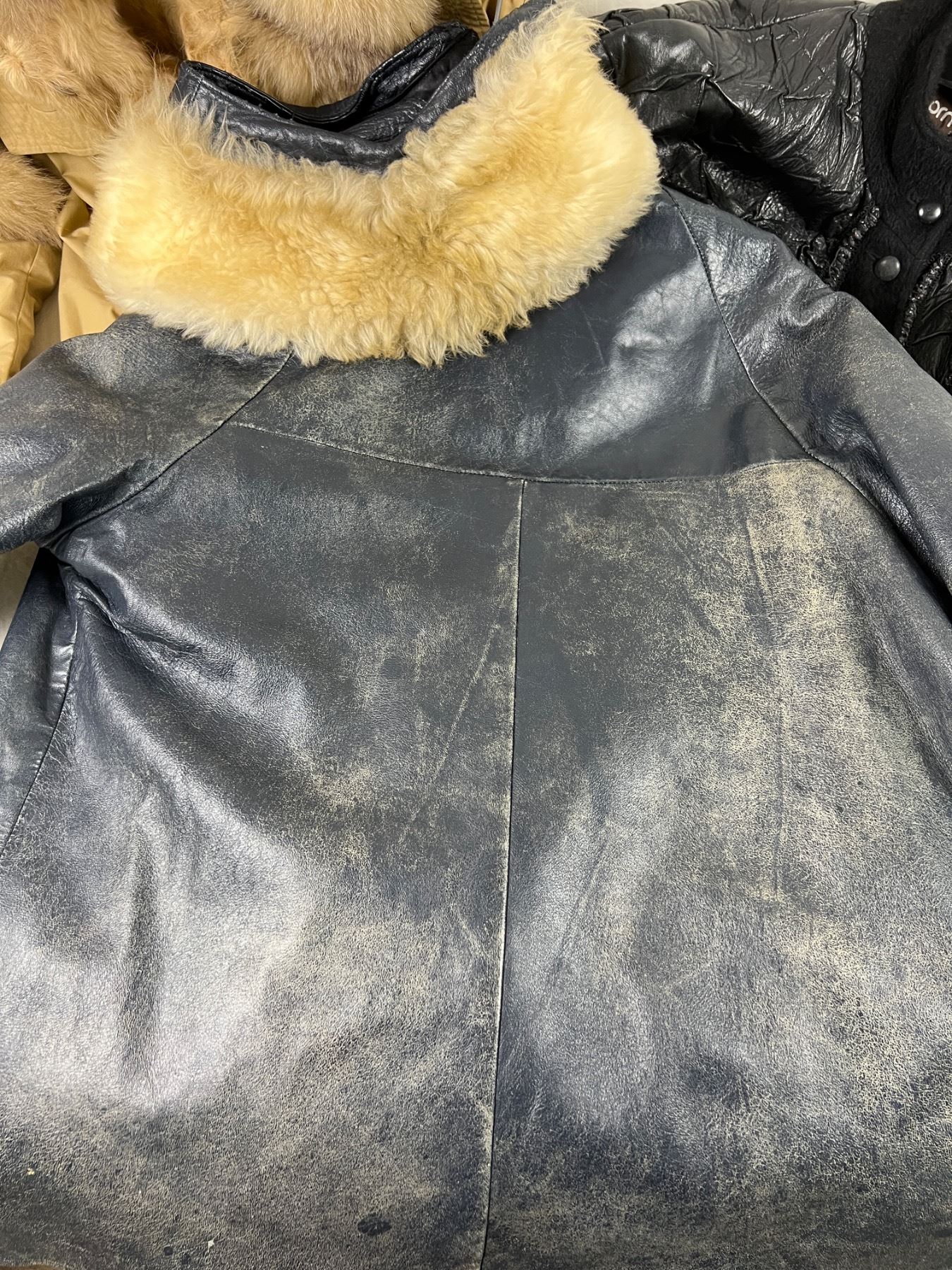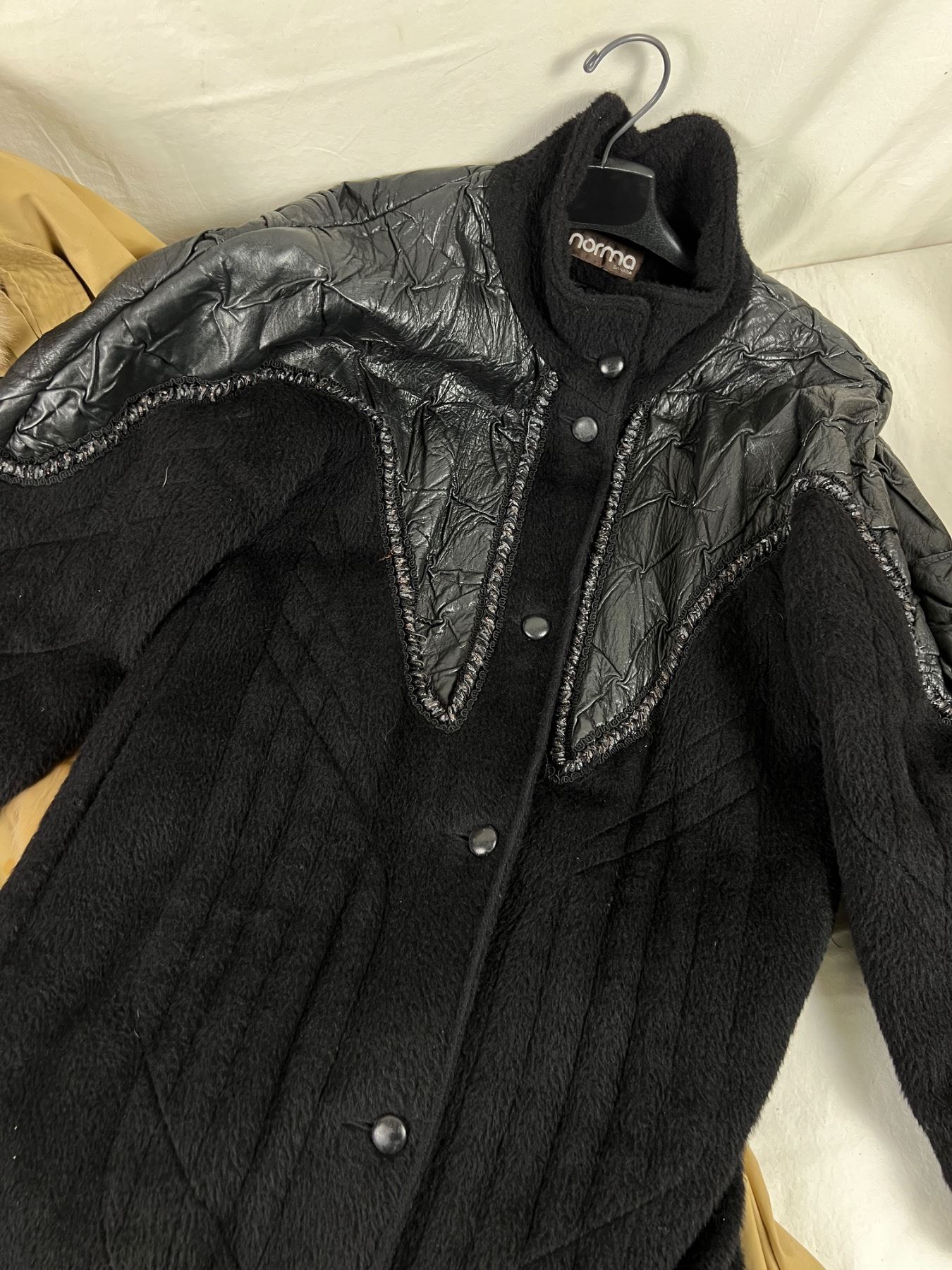 Approximate sizes small. Leather coat has fading of colour on front and back. Stains to pocket of Nino coat