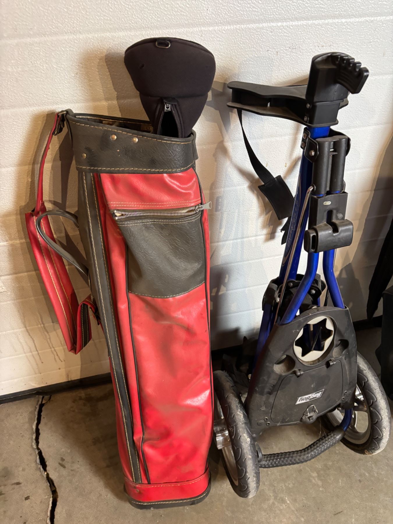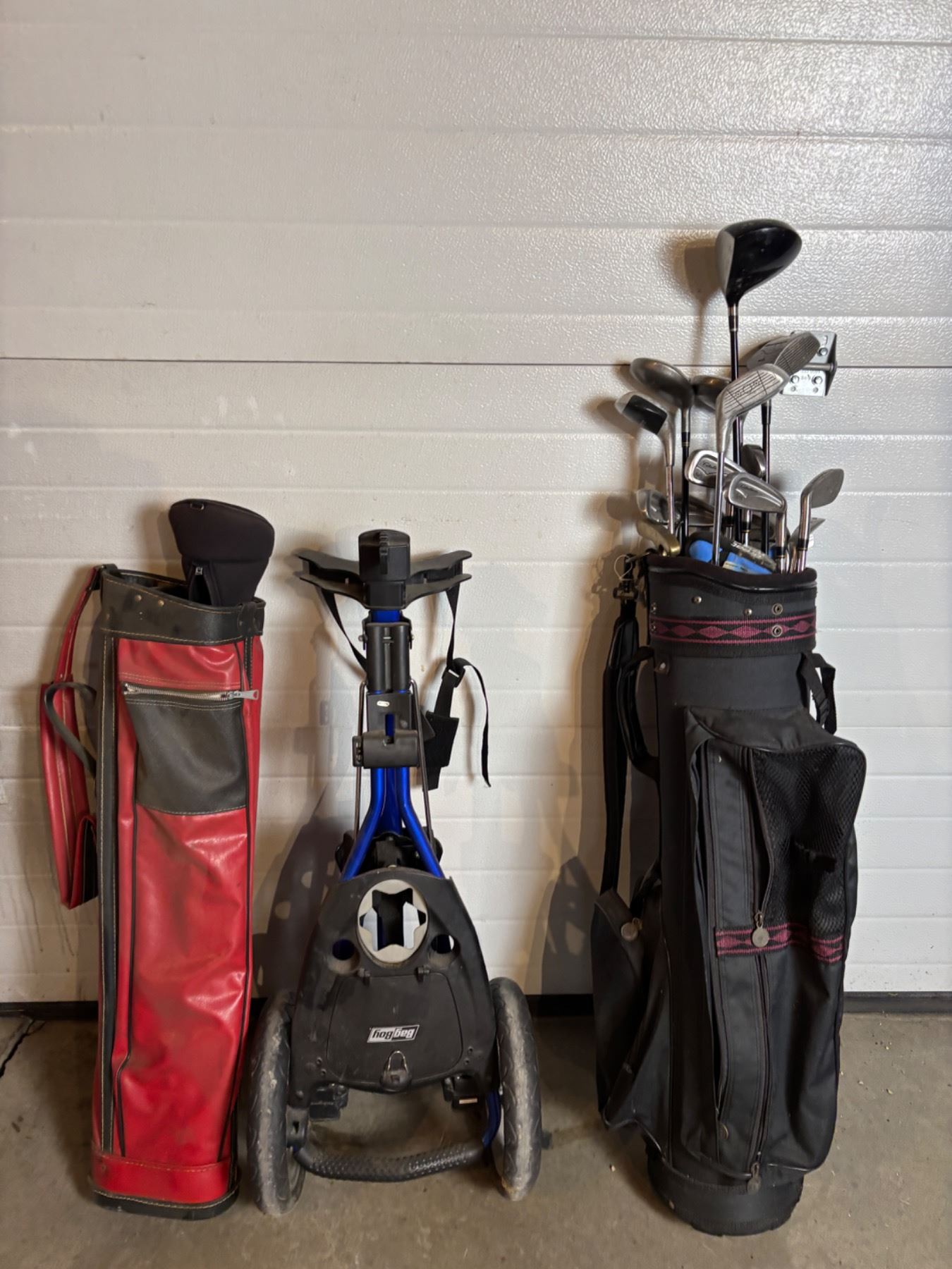 Includes a Bag Boy, Various right handed golf clubs including Wilson, and more