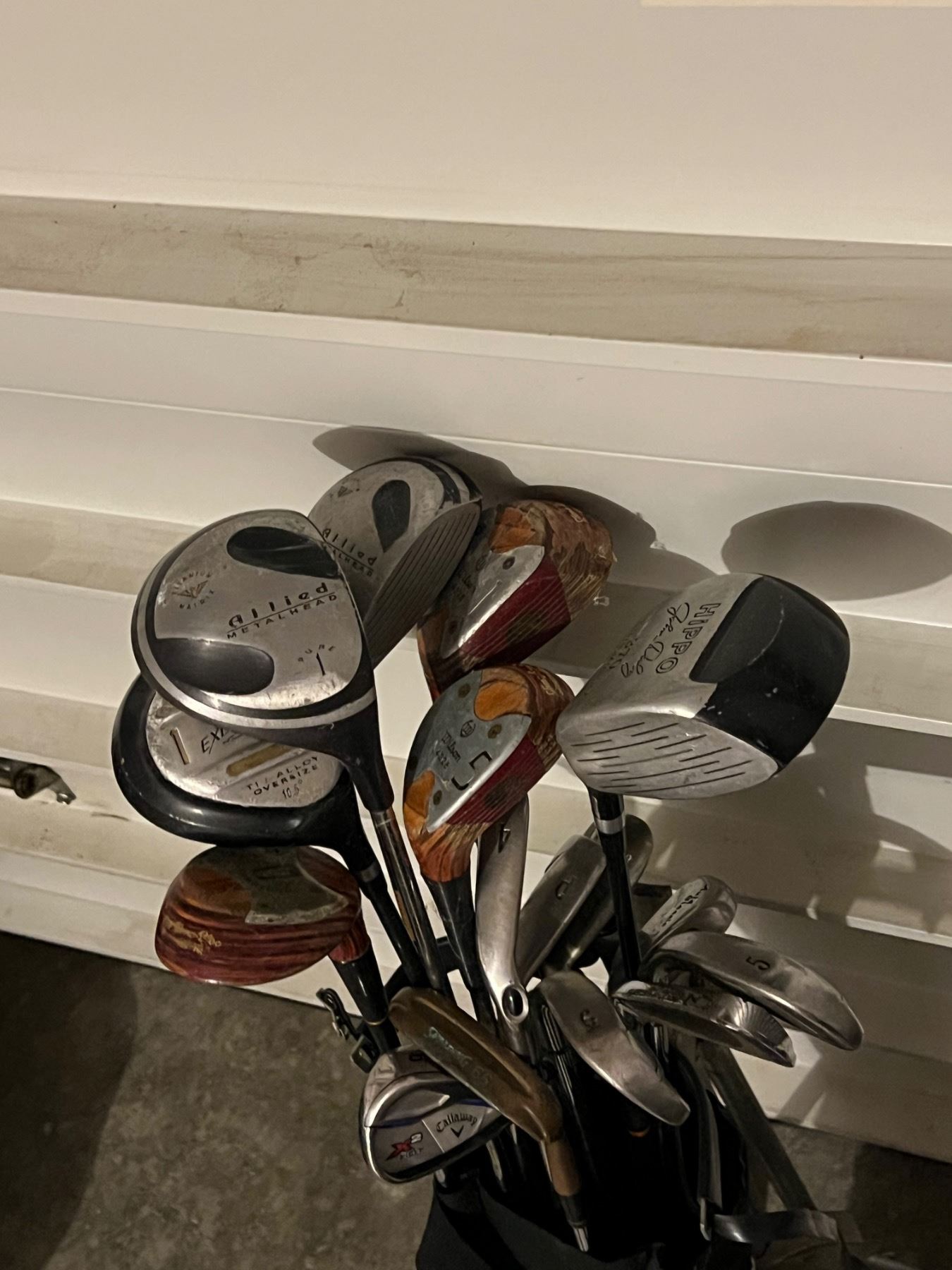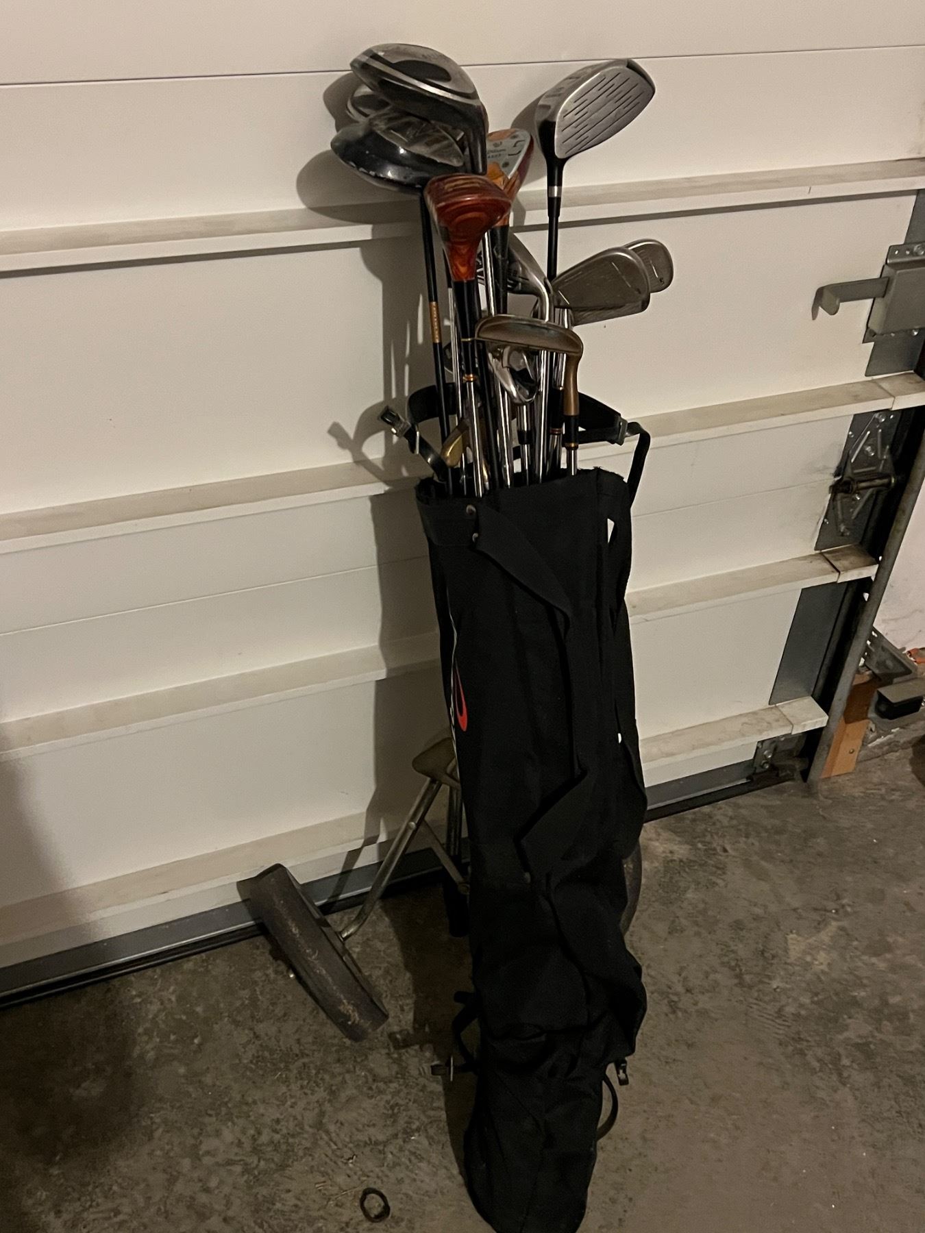 Includes soft shell golf bag and pull behind cart.