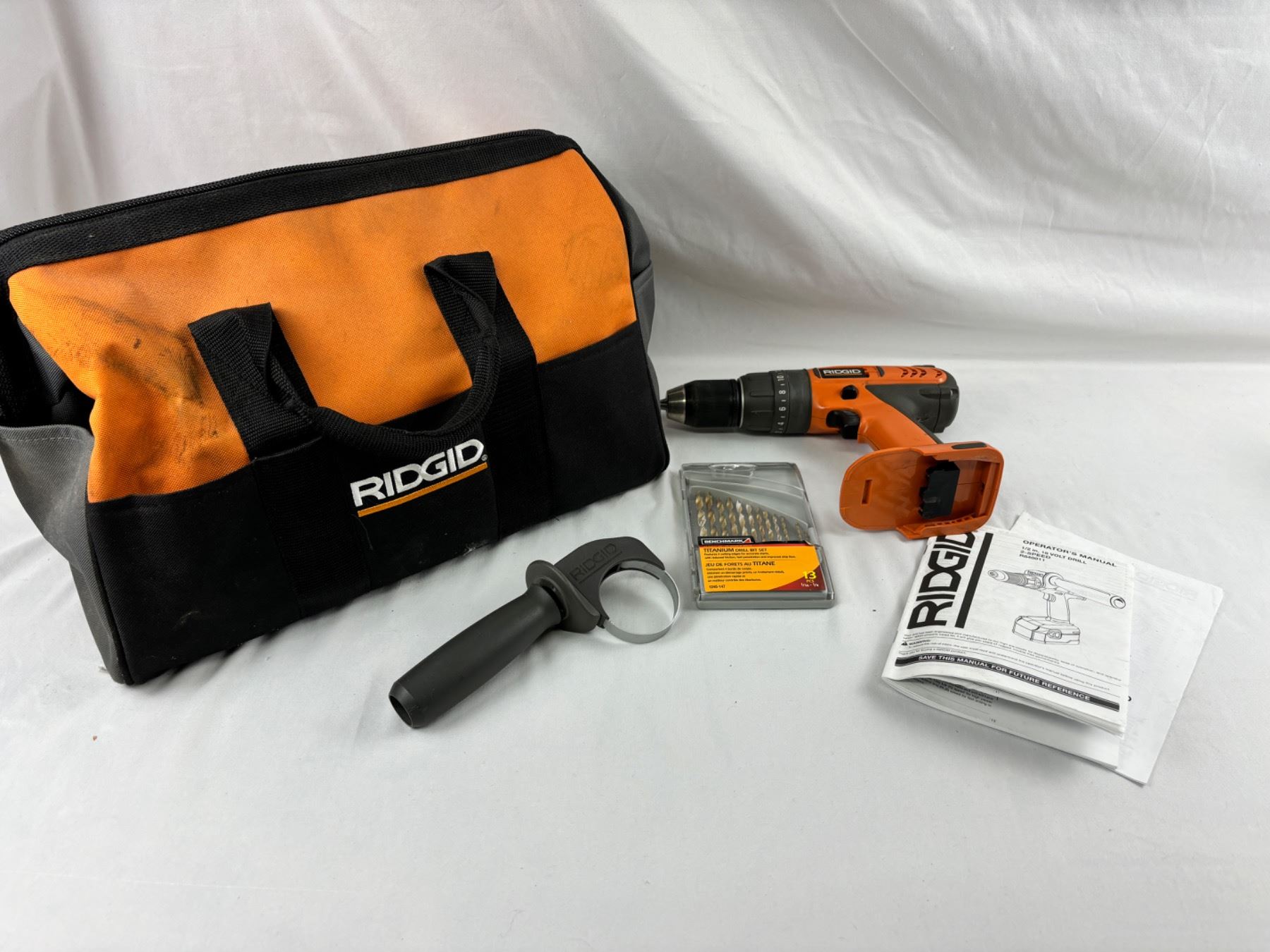 Includes, Rigid 1/2in 18v 2-Speed Drill (no battery), Benchmark Titanium Drill Bit Set, Rigid tool bag