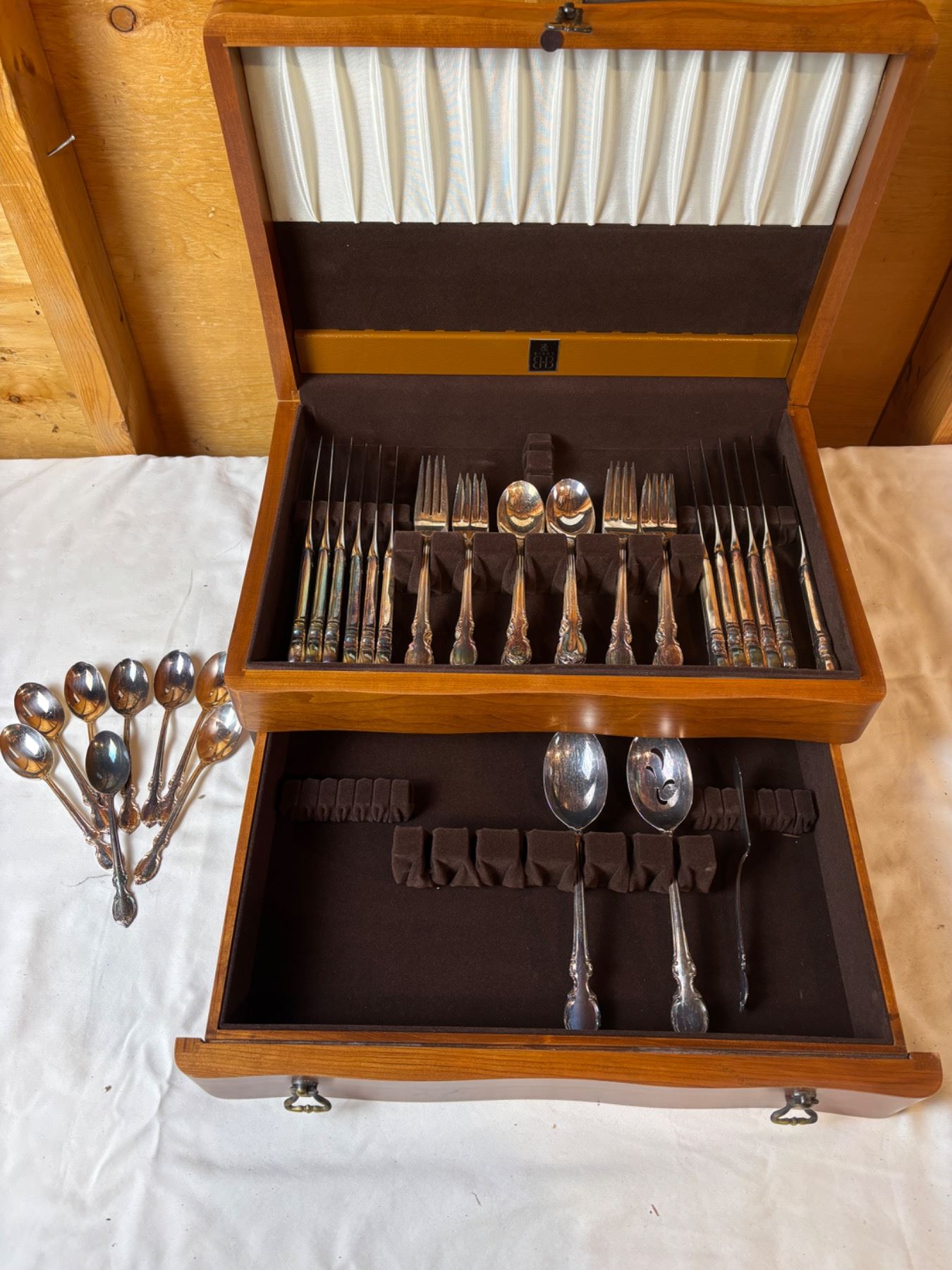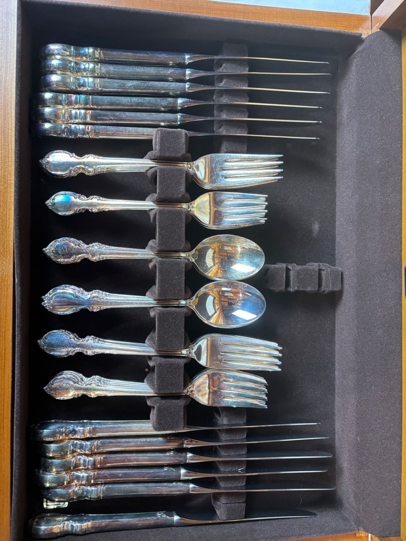 Includes Various pieces of Rogers Bros IS cutlery, some are "Reflections", in a Birks cutlery box