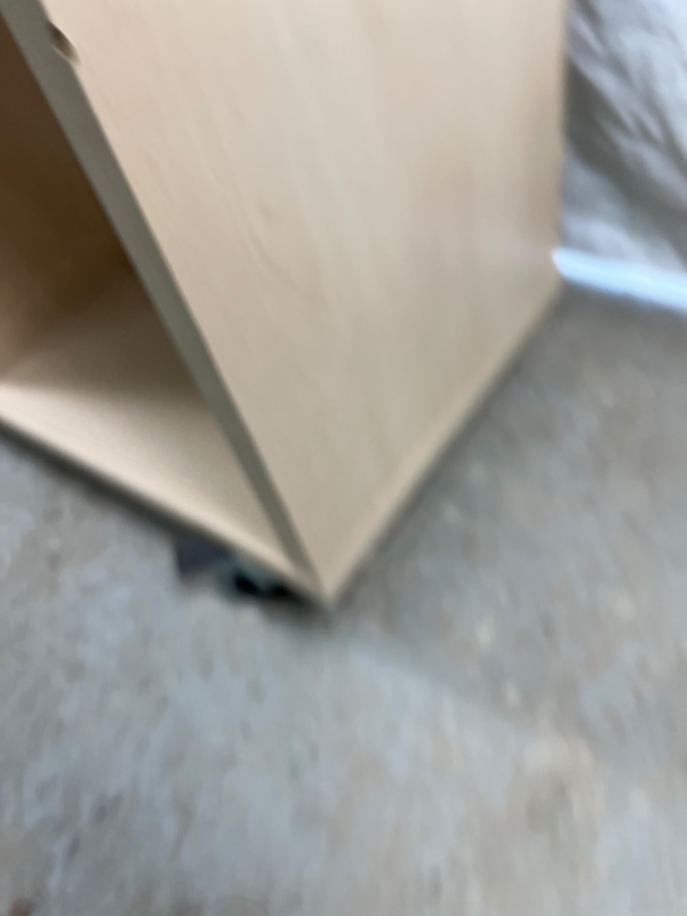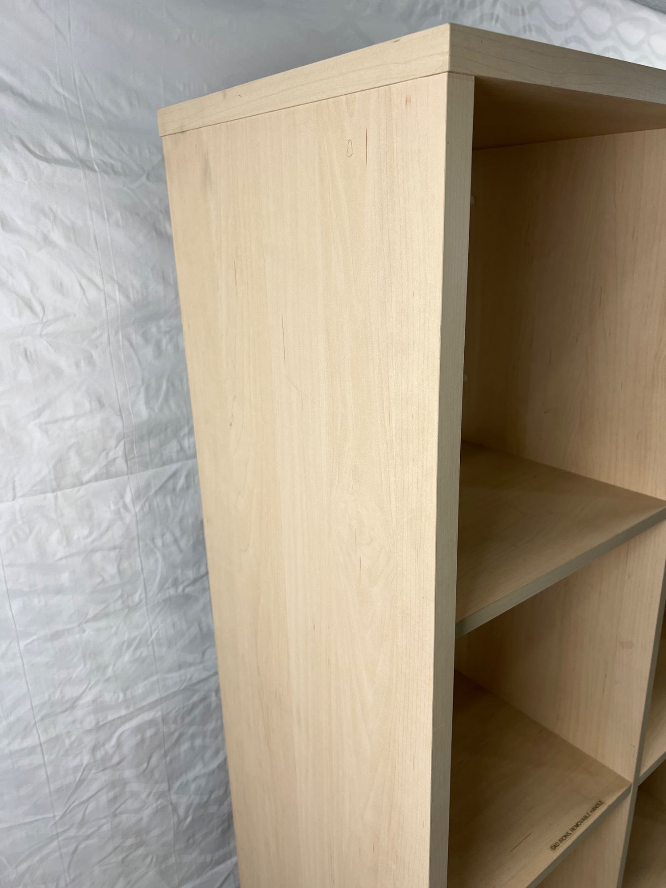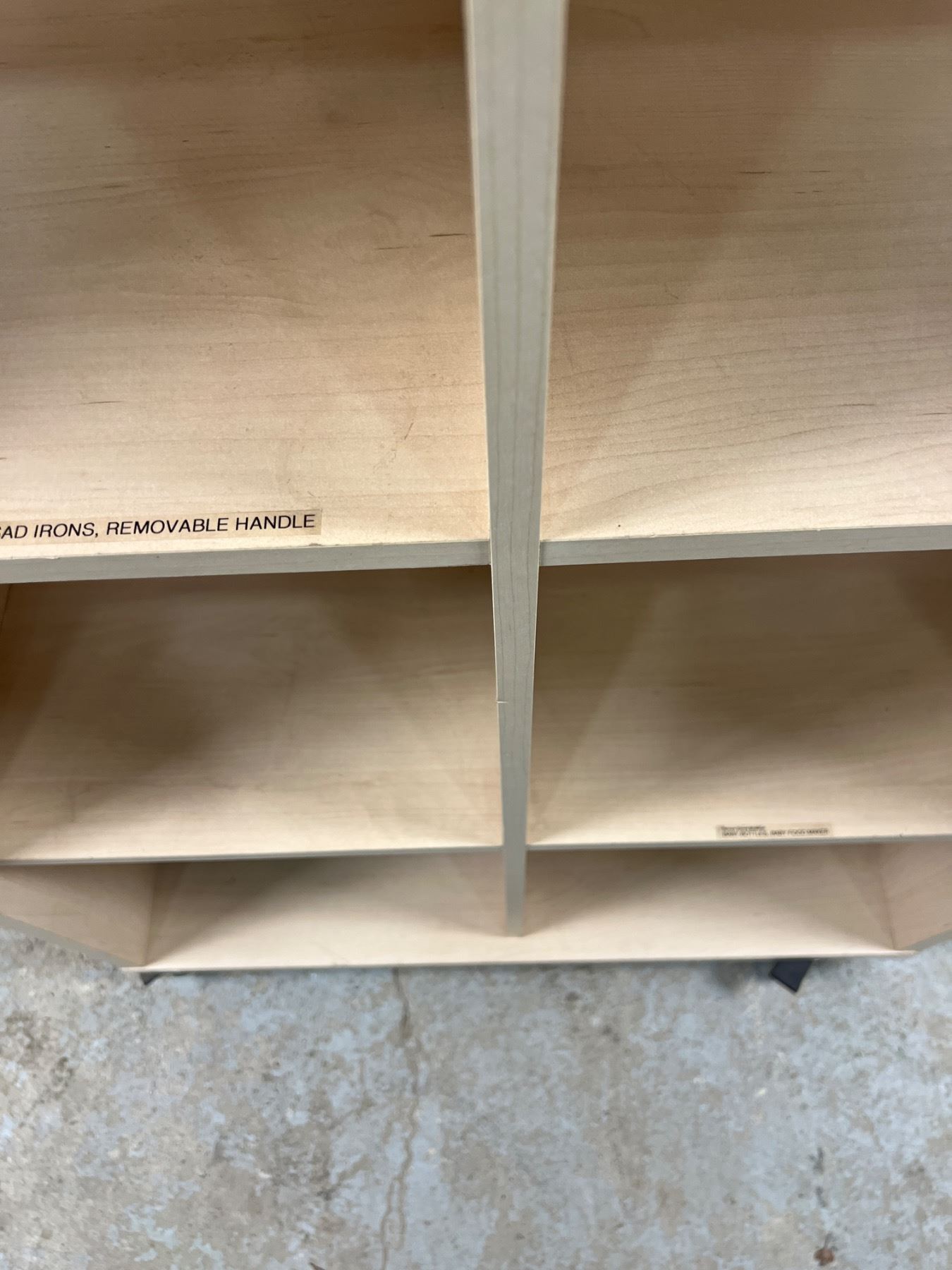 Two shelfs have stickers, on wheels, 65.5"H x 31.5"W x 13.5"D