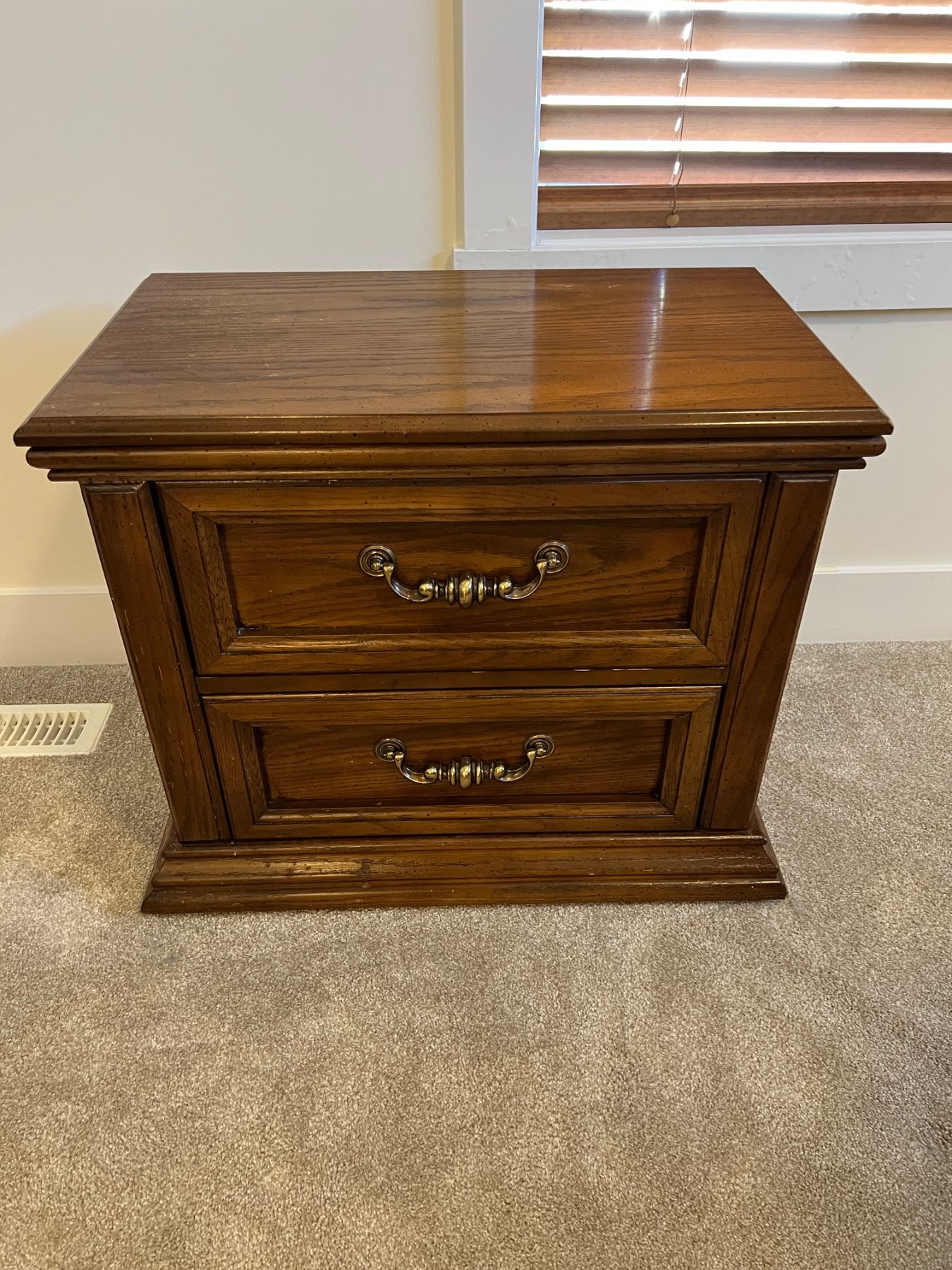 Has scuffing and wear, two drawers, 26"L x 15"W x 22"H
