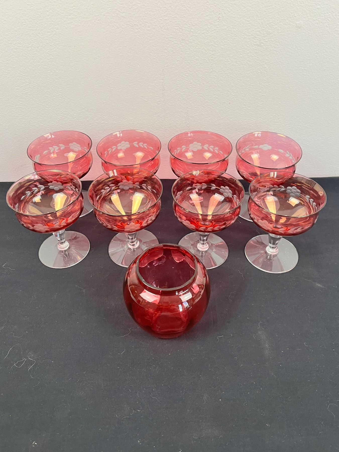 8 Glasses (1one has small Chip) & Vase