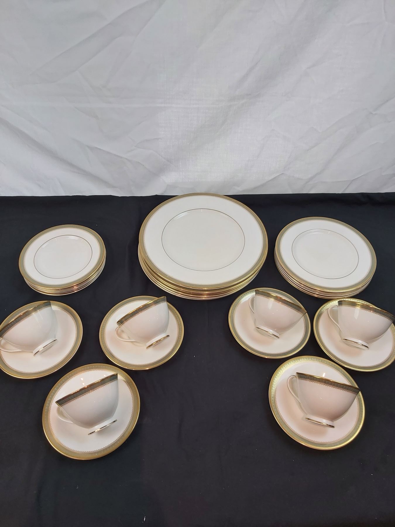Includes, 6 cups, 6 saucers, 6 Sm plates, 6 Md plates, 6 Lg plates