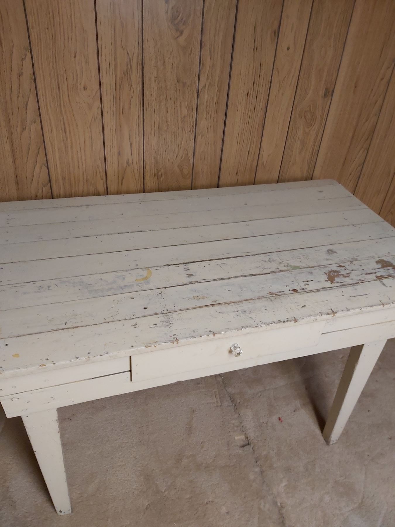 48"L x 25.5"W x 30"H, one drawer, has wear and tear