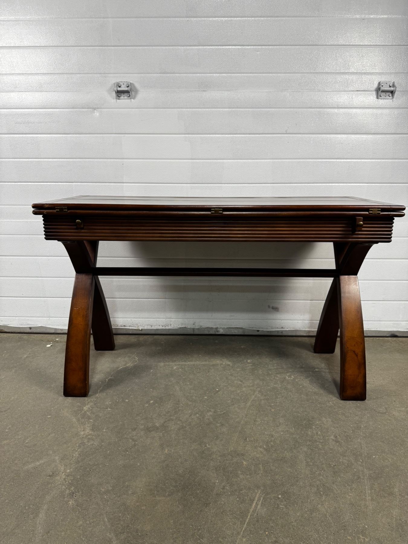 Some wear in corners as seen in pictures, 44" long by 50" wide by 29" tall. When folded has width of 20".