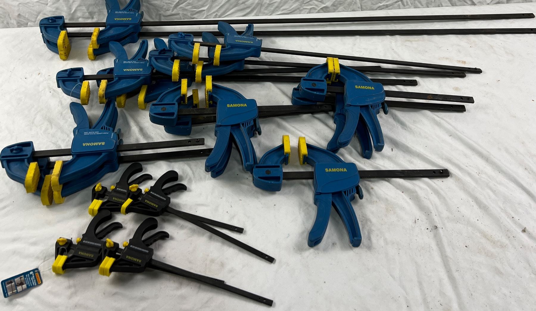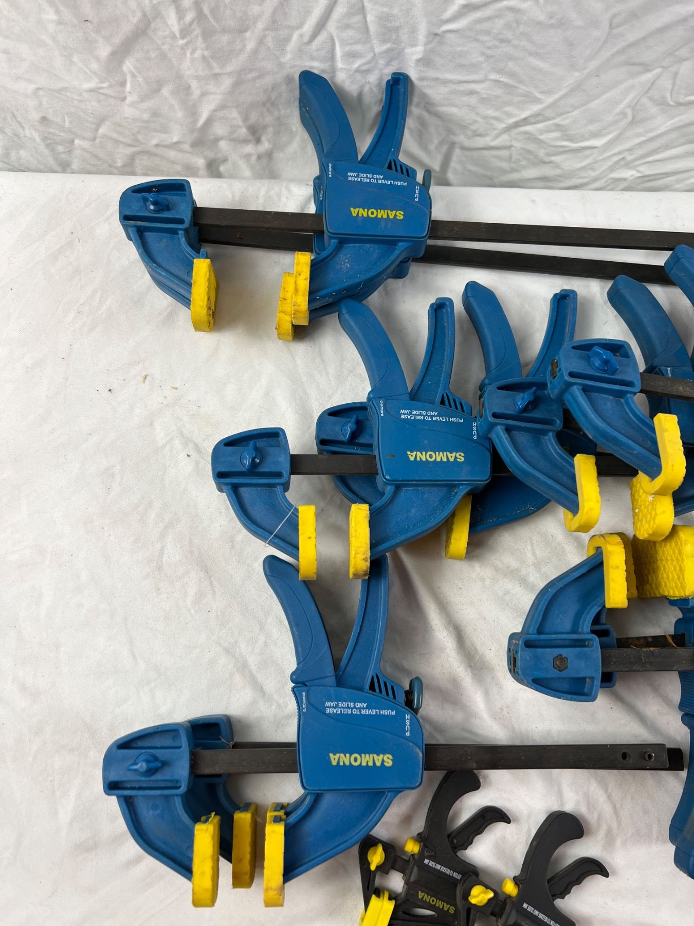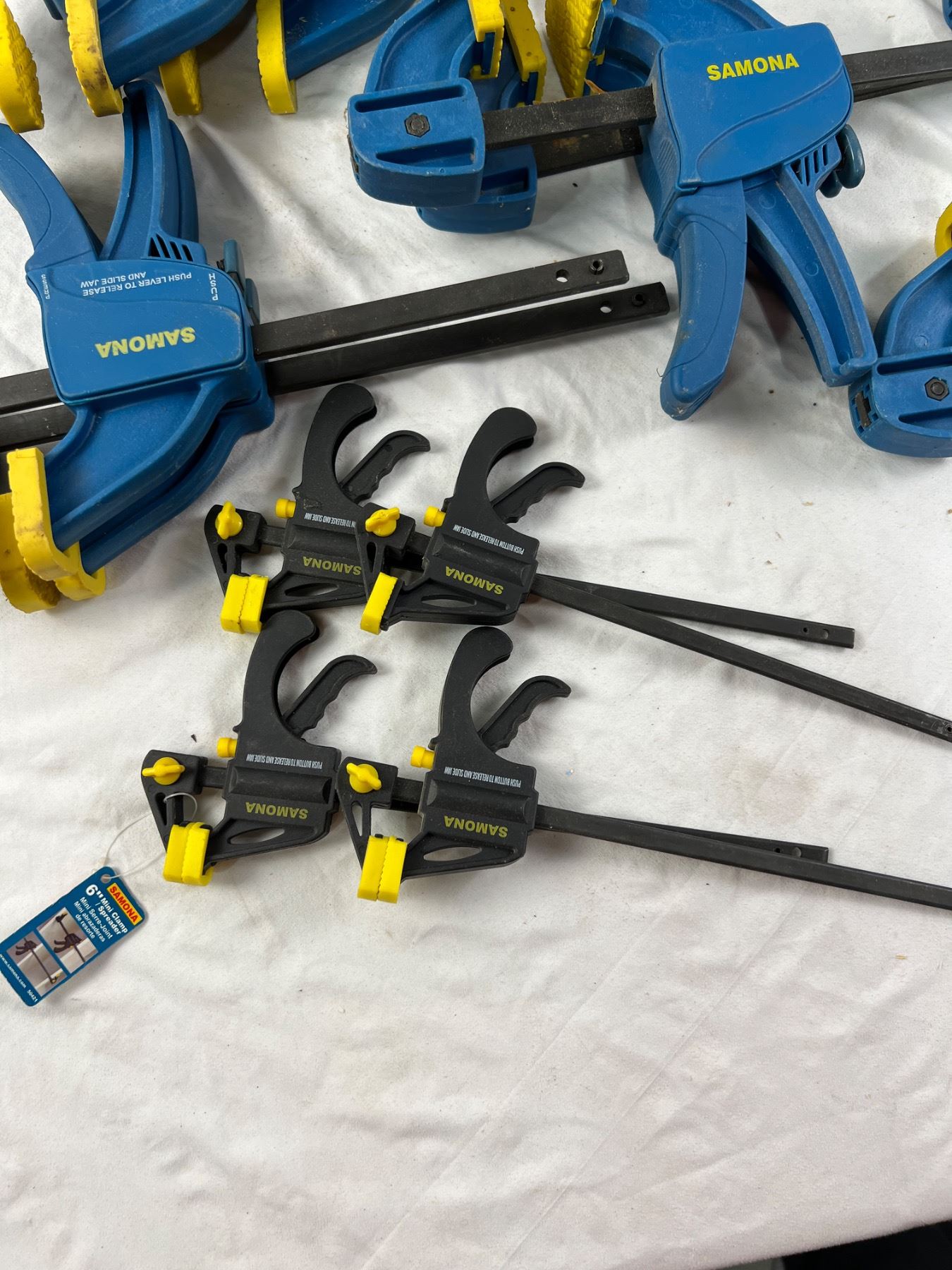 Longest clamps are 42" and shortest are 6". Some wear and tear.