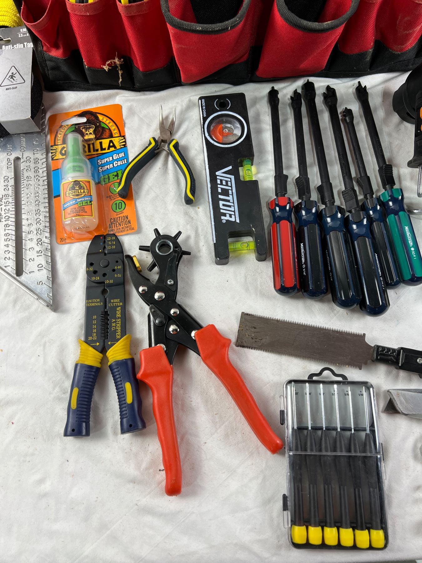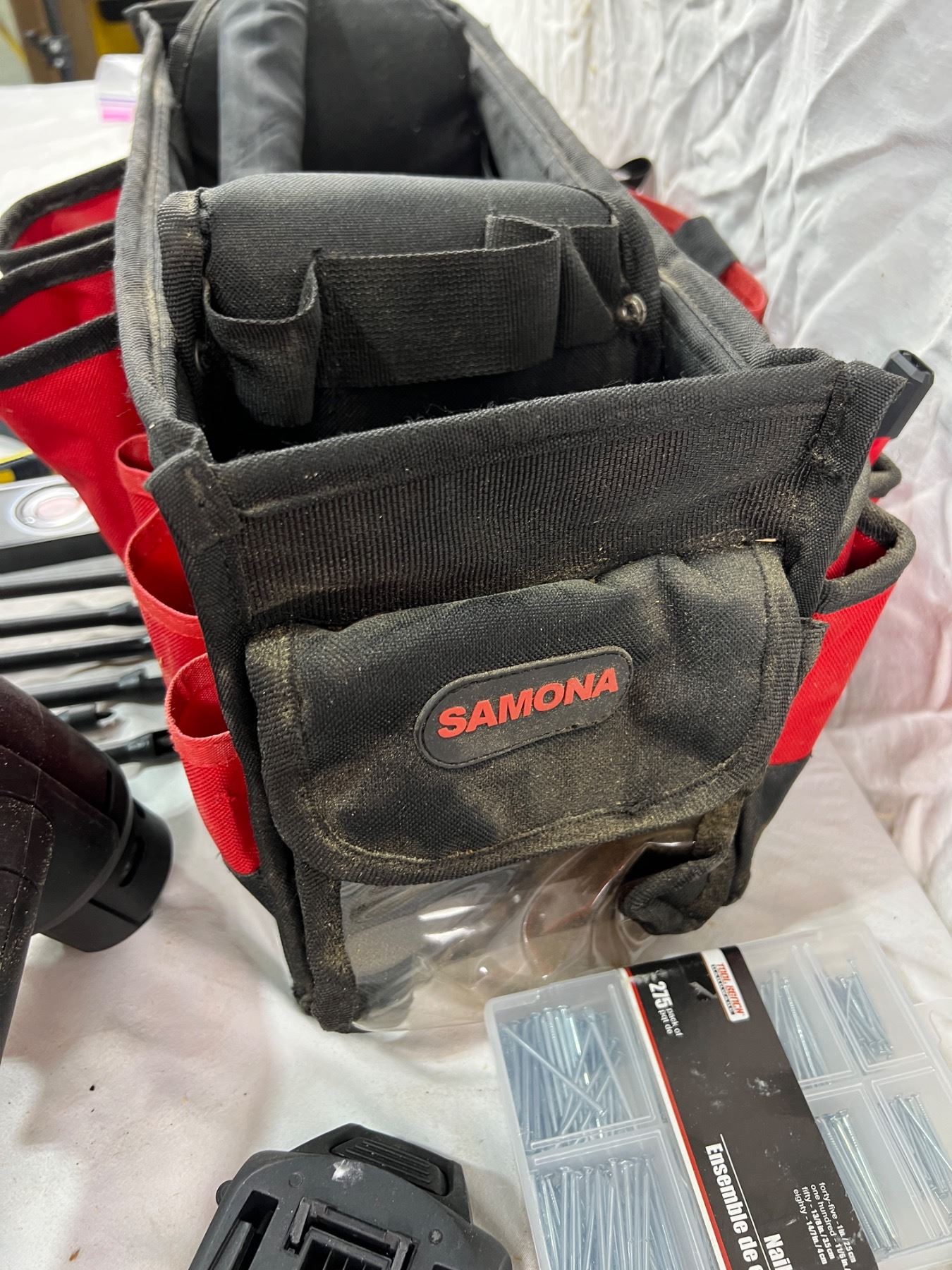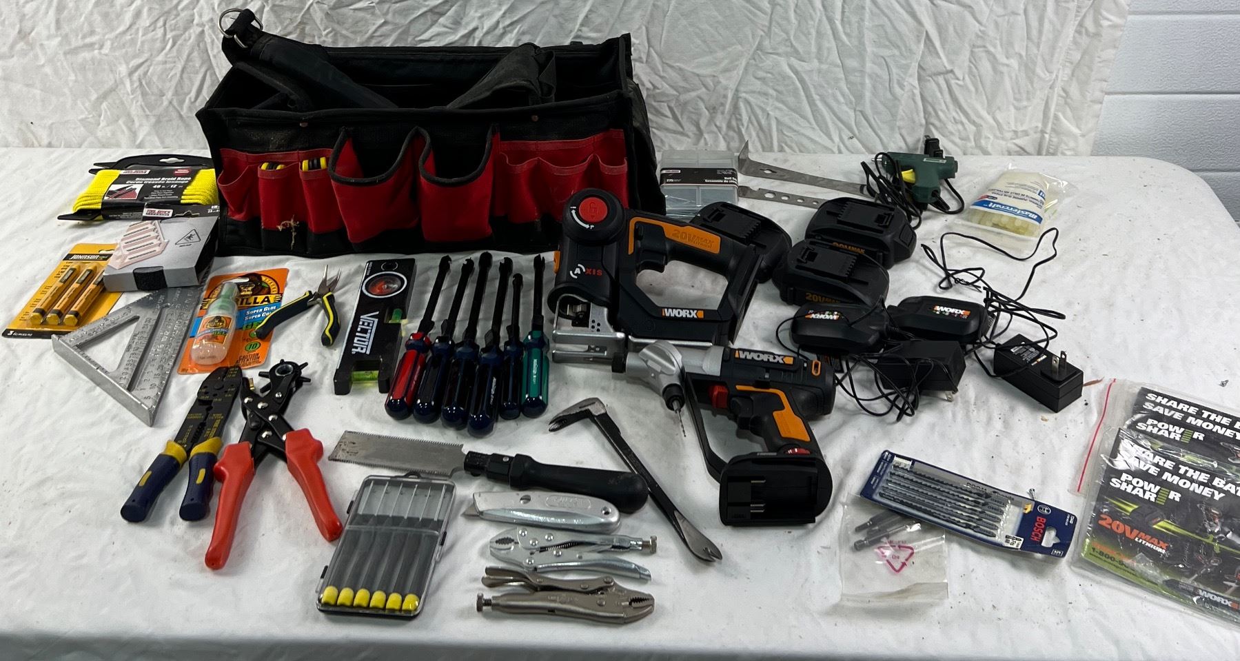 Includes Works power tools and batteries, all power on and work. Variety of tools! Some dust and dirt stains to toolbar