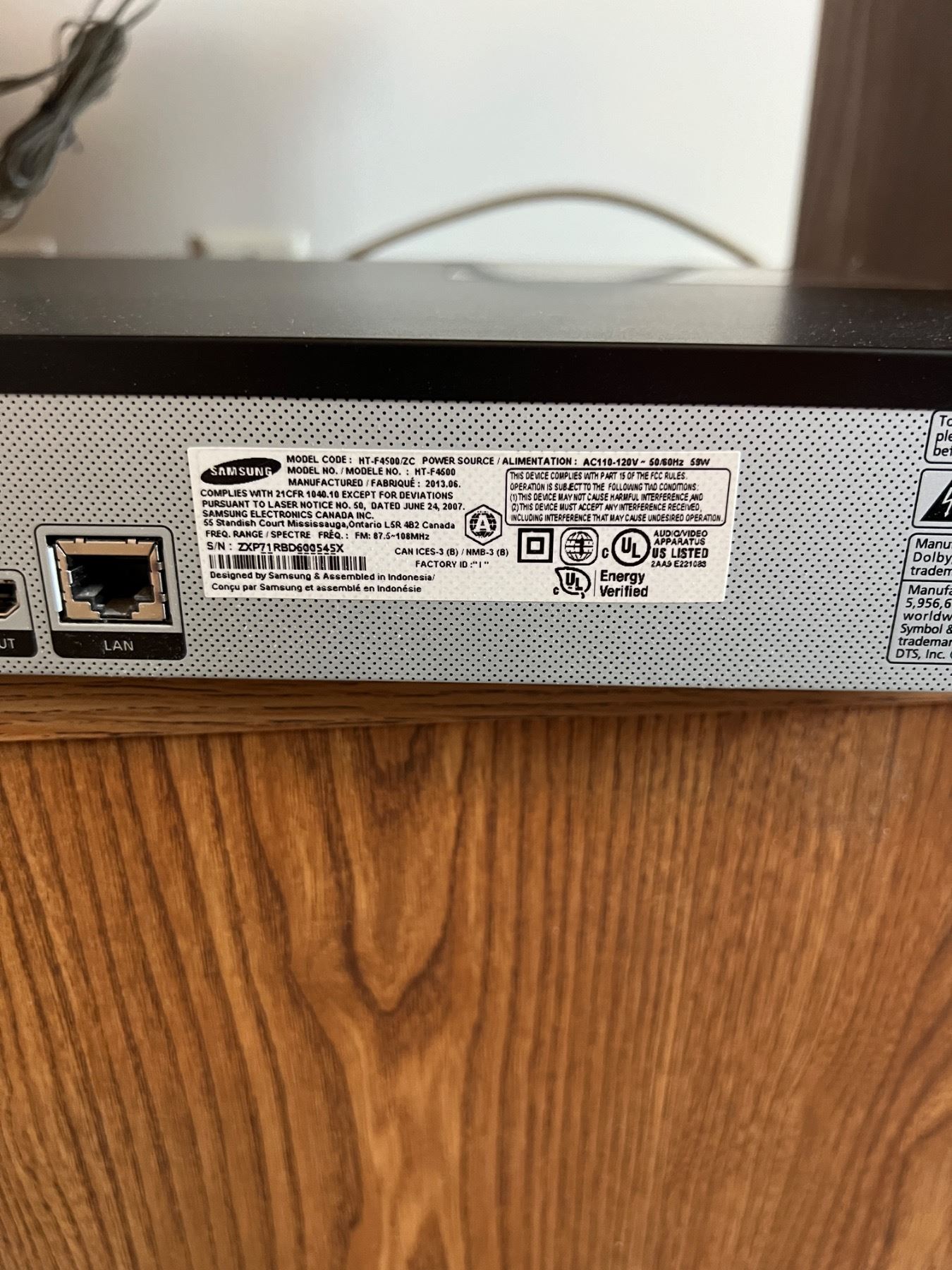 Includes, Blu-Ray Player No. HT-F4500/ZC (turns on & with remote), Subwoofer Speaker System PS-FW1-W,