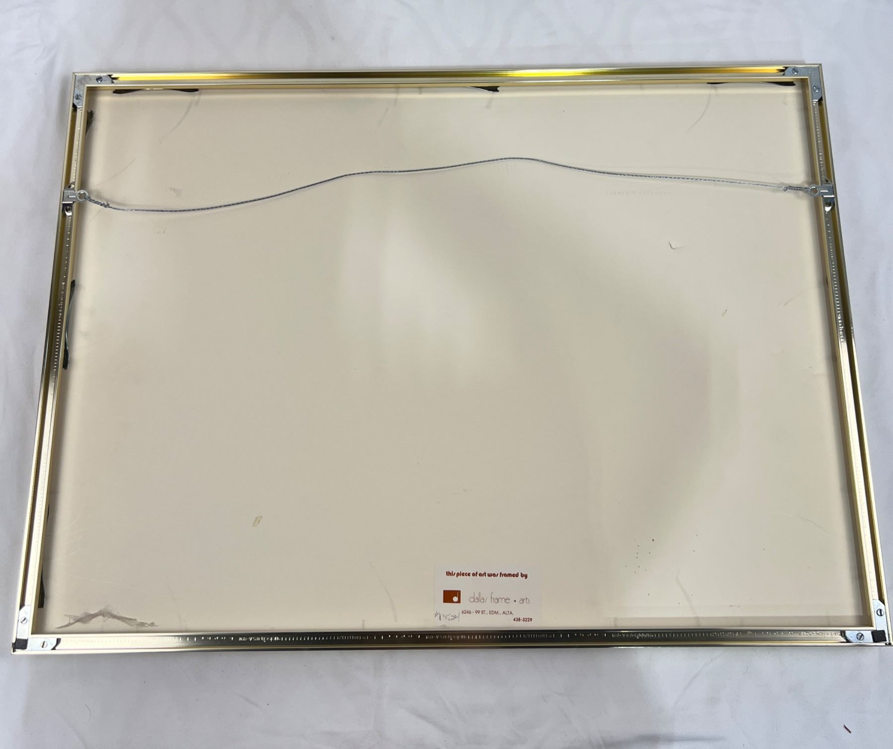 Approximately 28.5" by 21". Wear to frame and some damage to paper on rear.