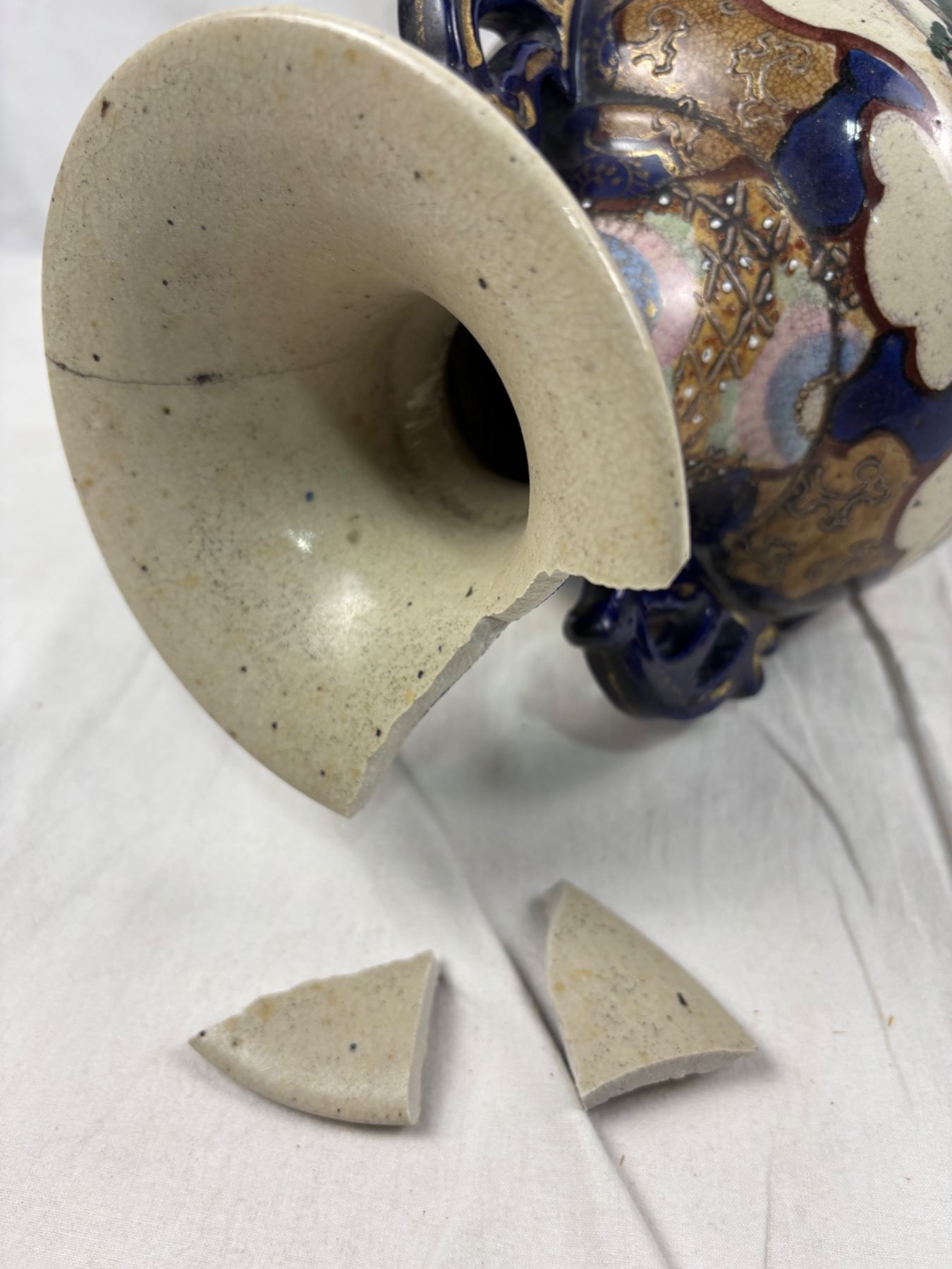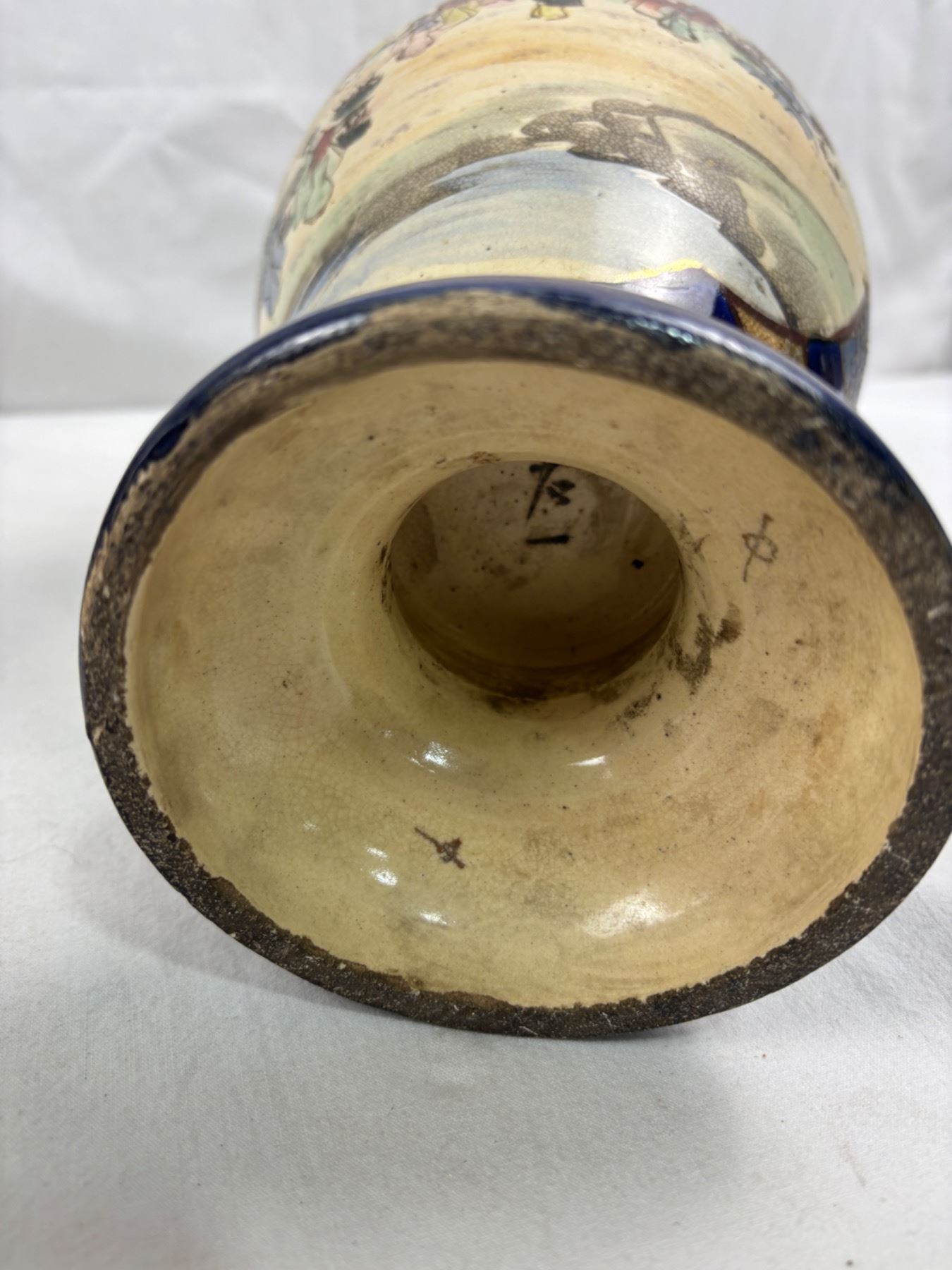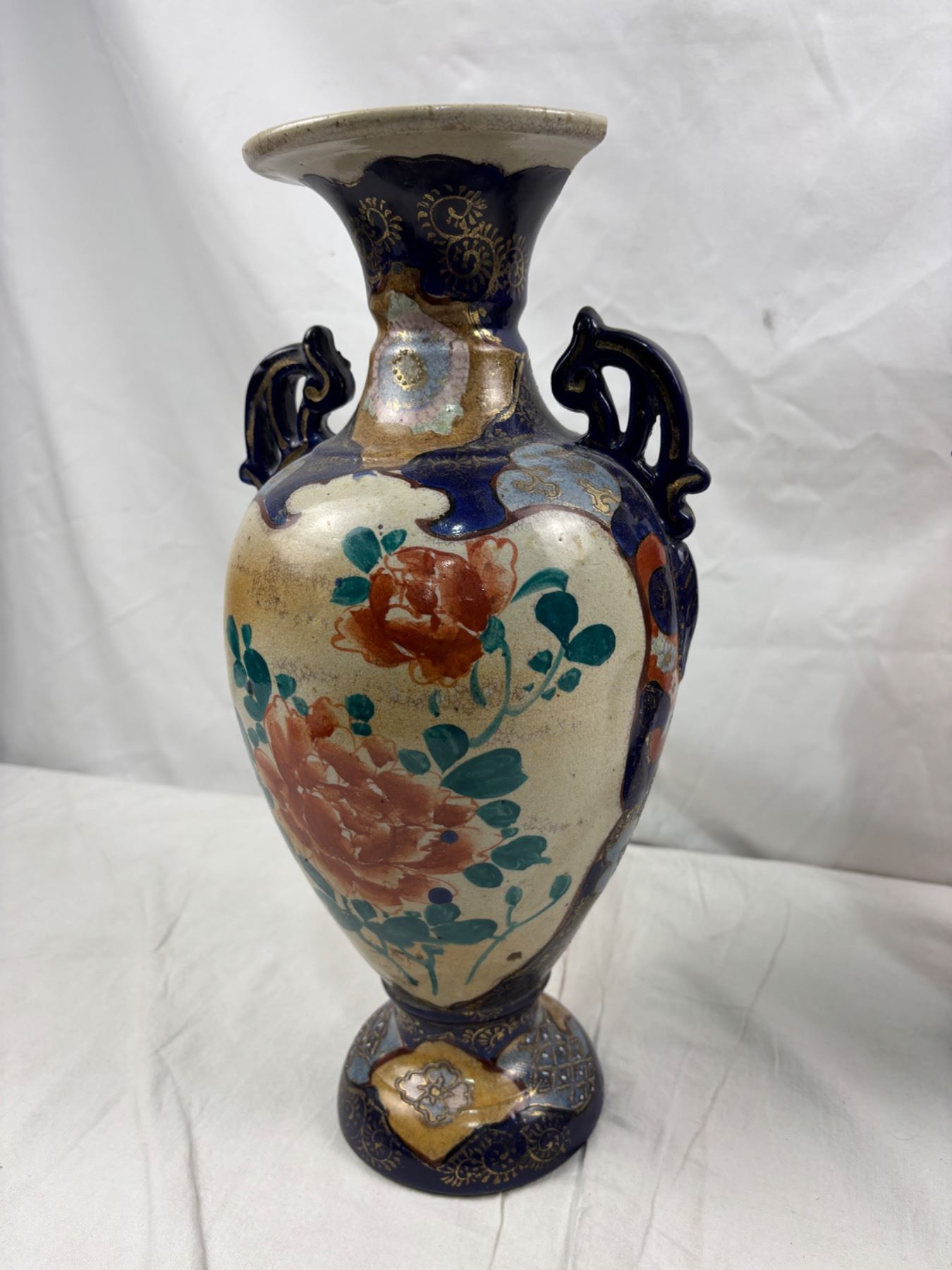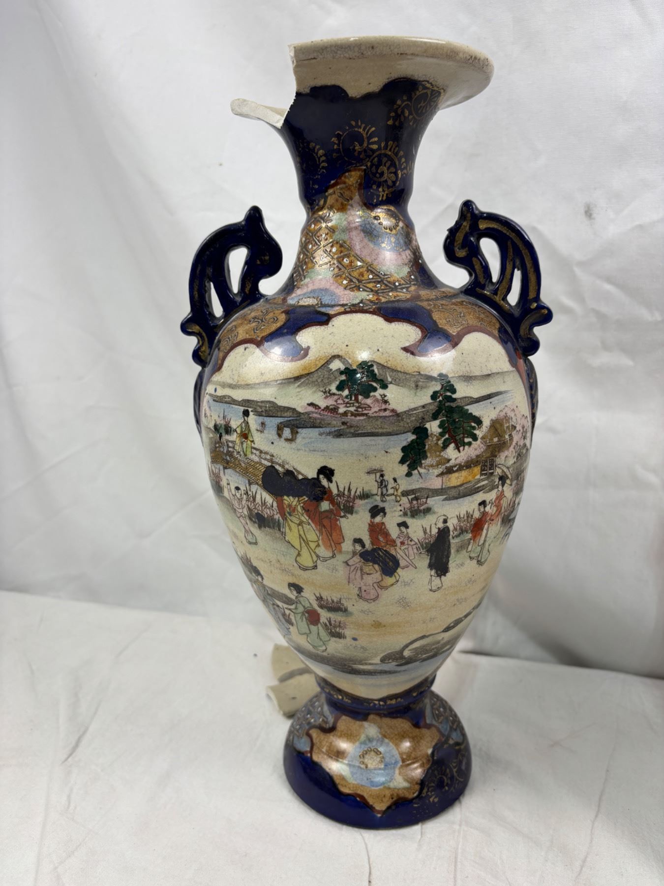 One of the rims has a piece chipped off (can be re-glued), each vase is 16"H