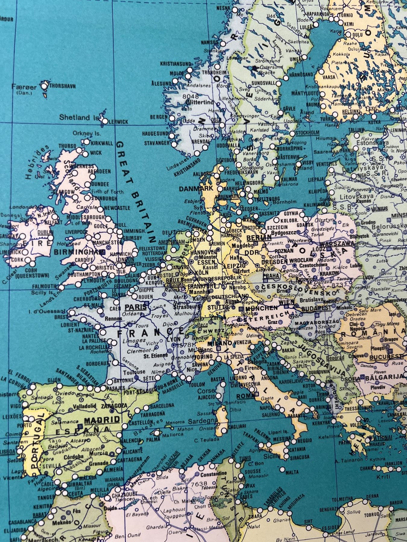 Has some water stains on the bottom right corner, Printed in Switzerland, 50.5"L x 34"W