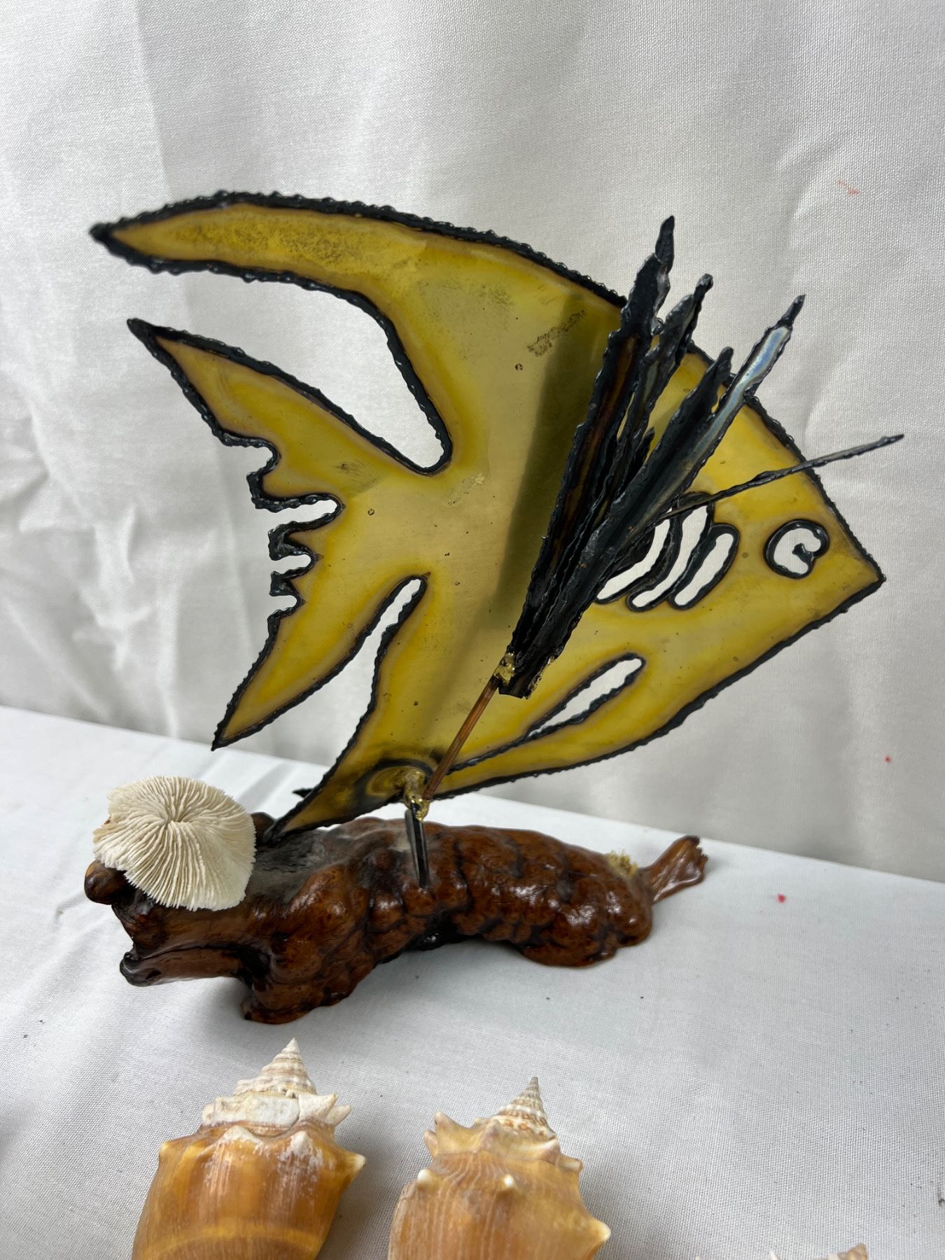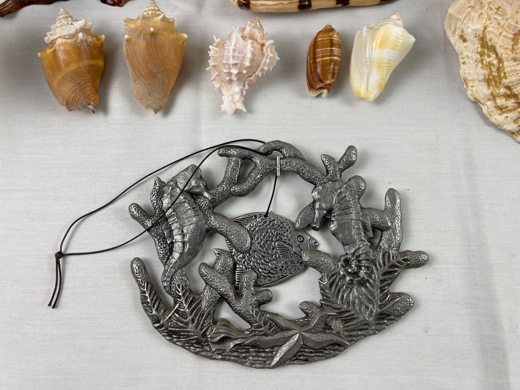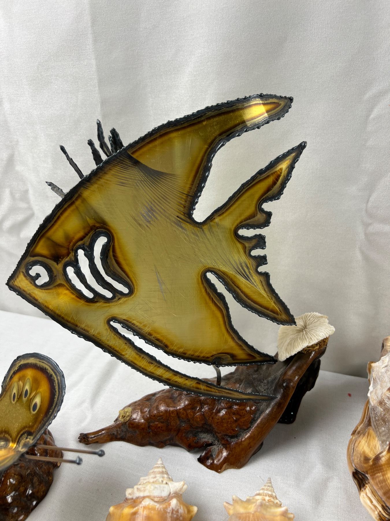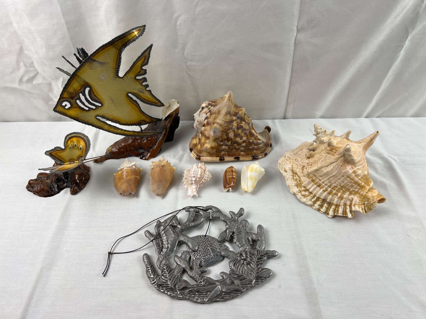 The two conch shells are aproximately 7"L x 7"W x 5"H, some chips on the shells