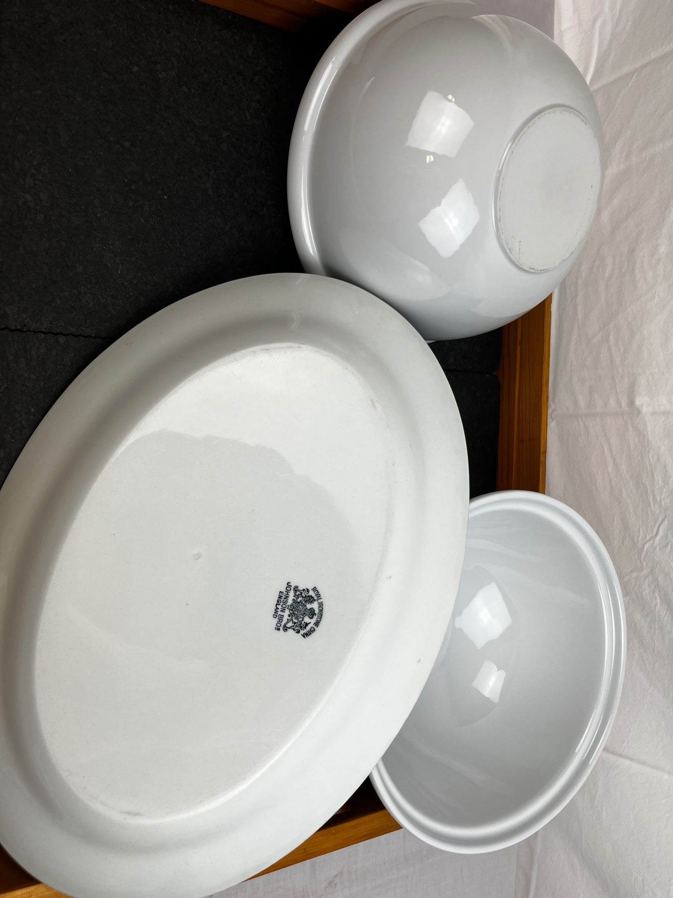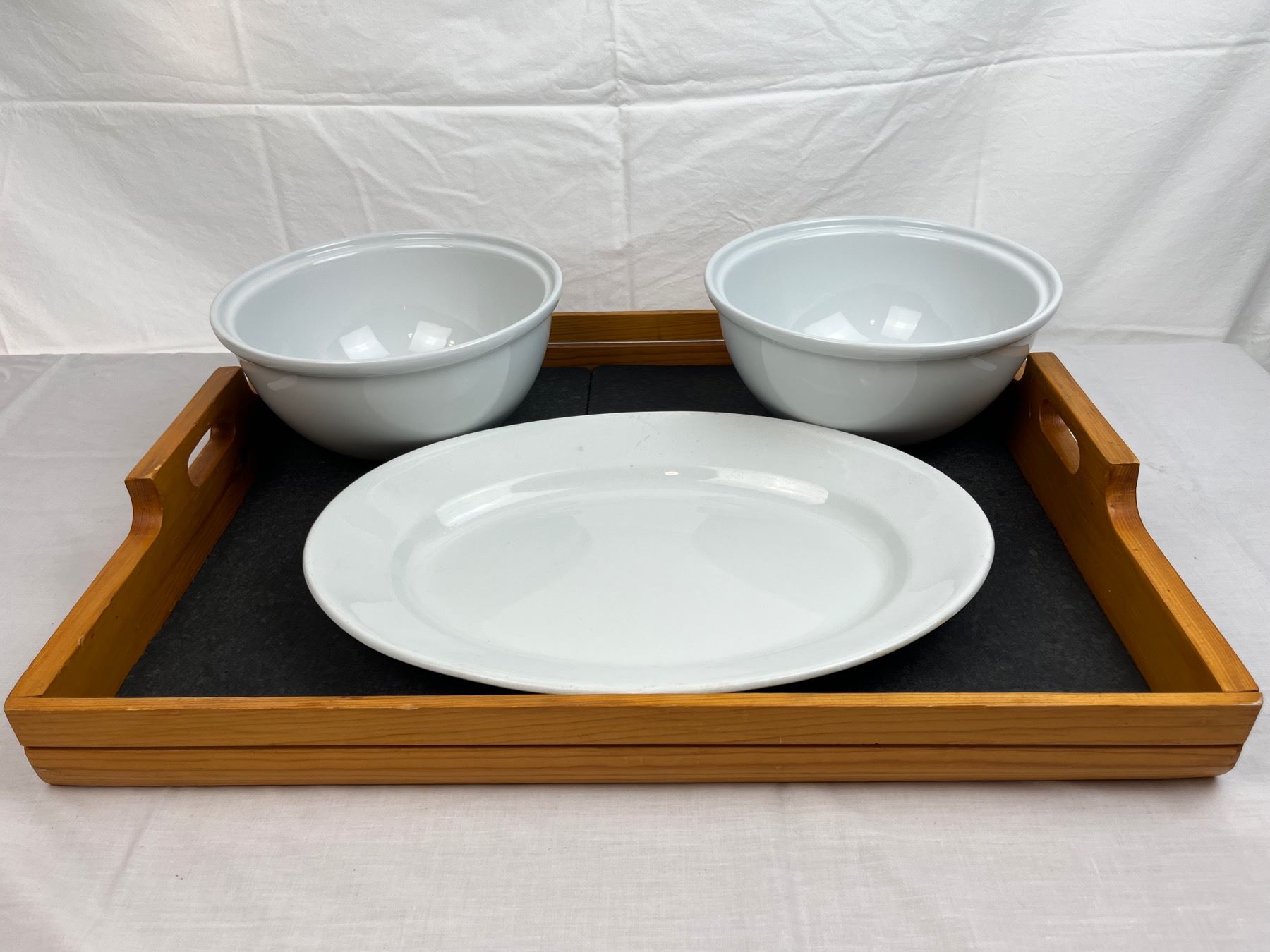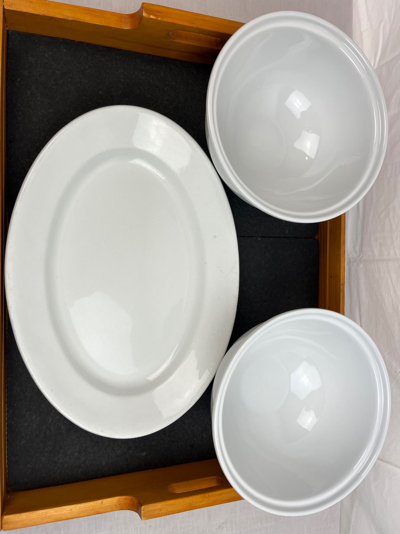 Wooden Serving tray 2' long x 183/4" wide - 2 serving bowls - Royal Ironstone China Serving Platter