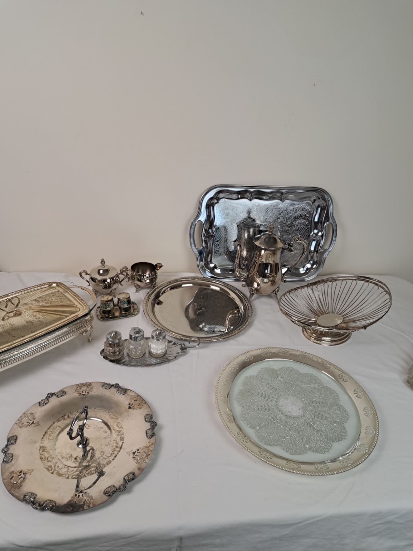 Includes teapot, cream and sugar, salt and pepper, fruit basket and more