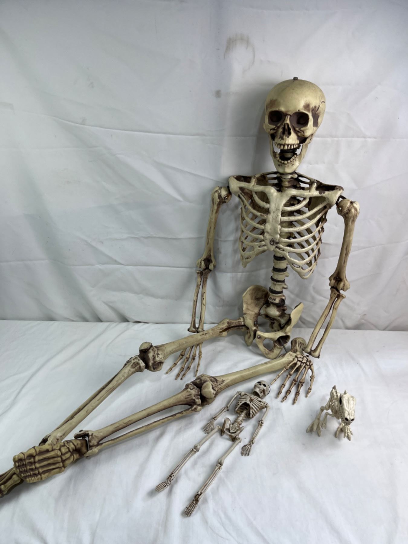 Includes, 1 Large (5') and 1 Small (16") Skeleton, 1 Dinosaur Skeleton (6")