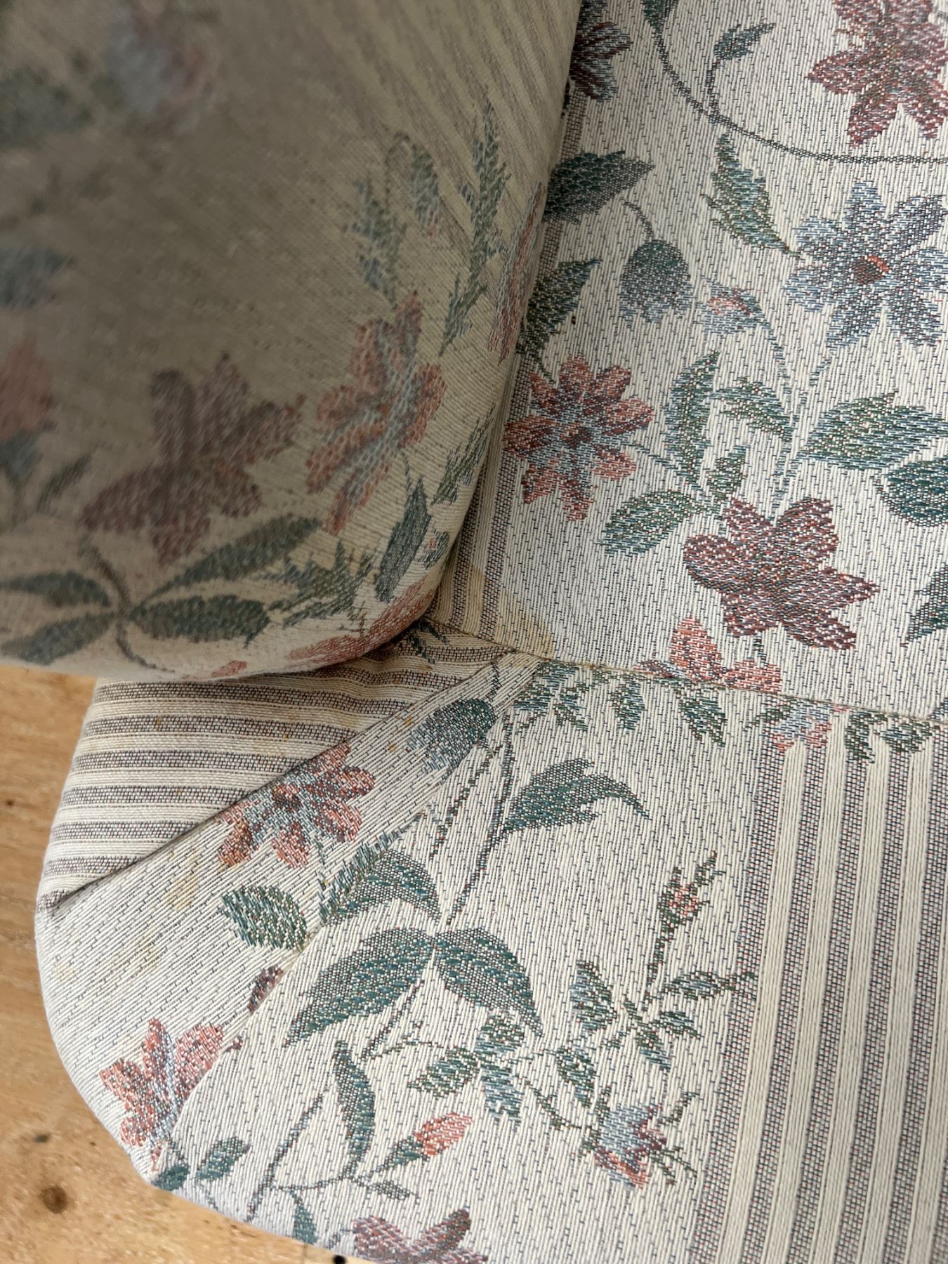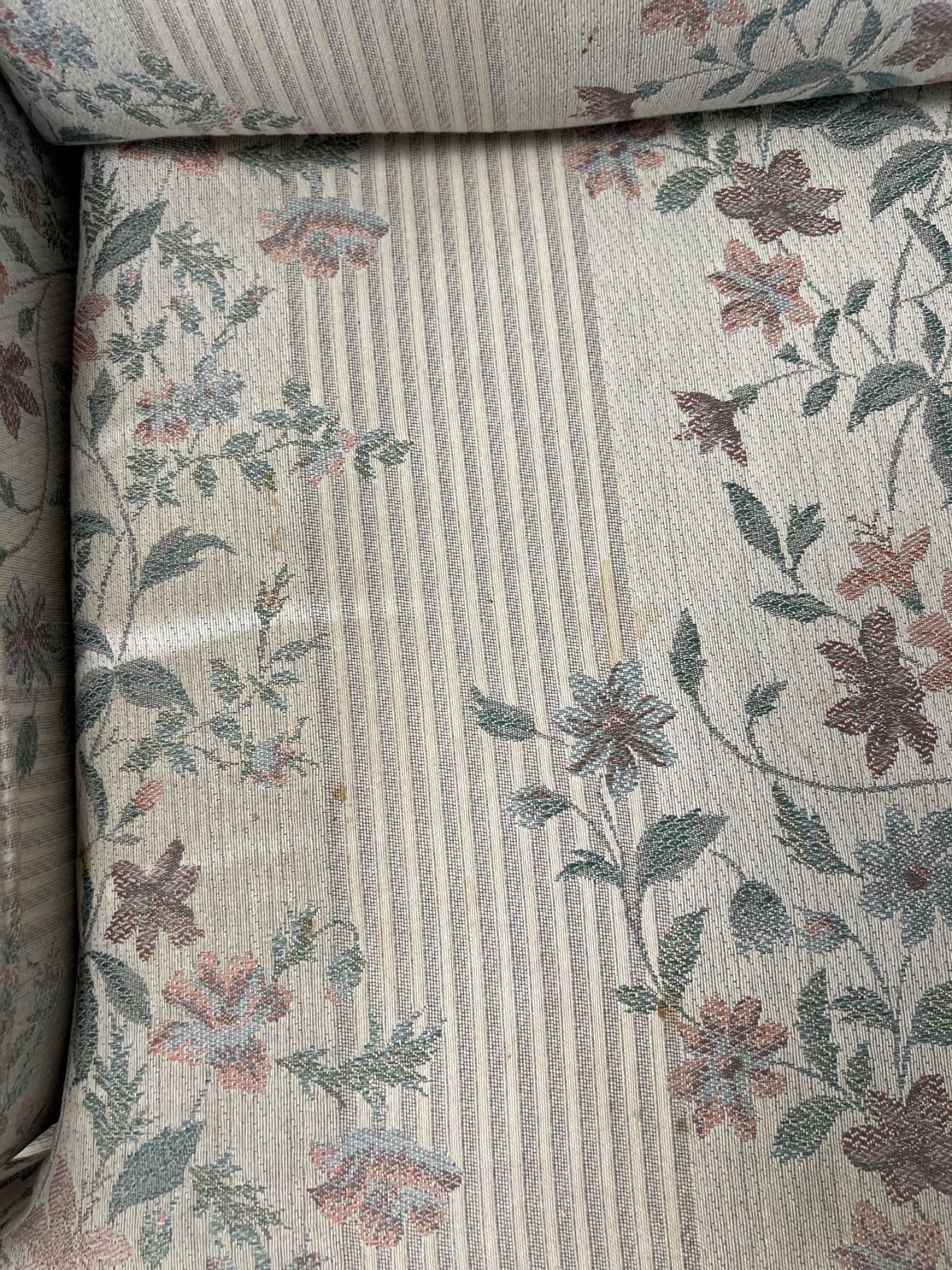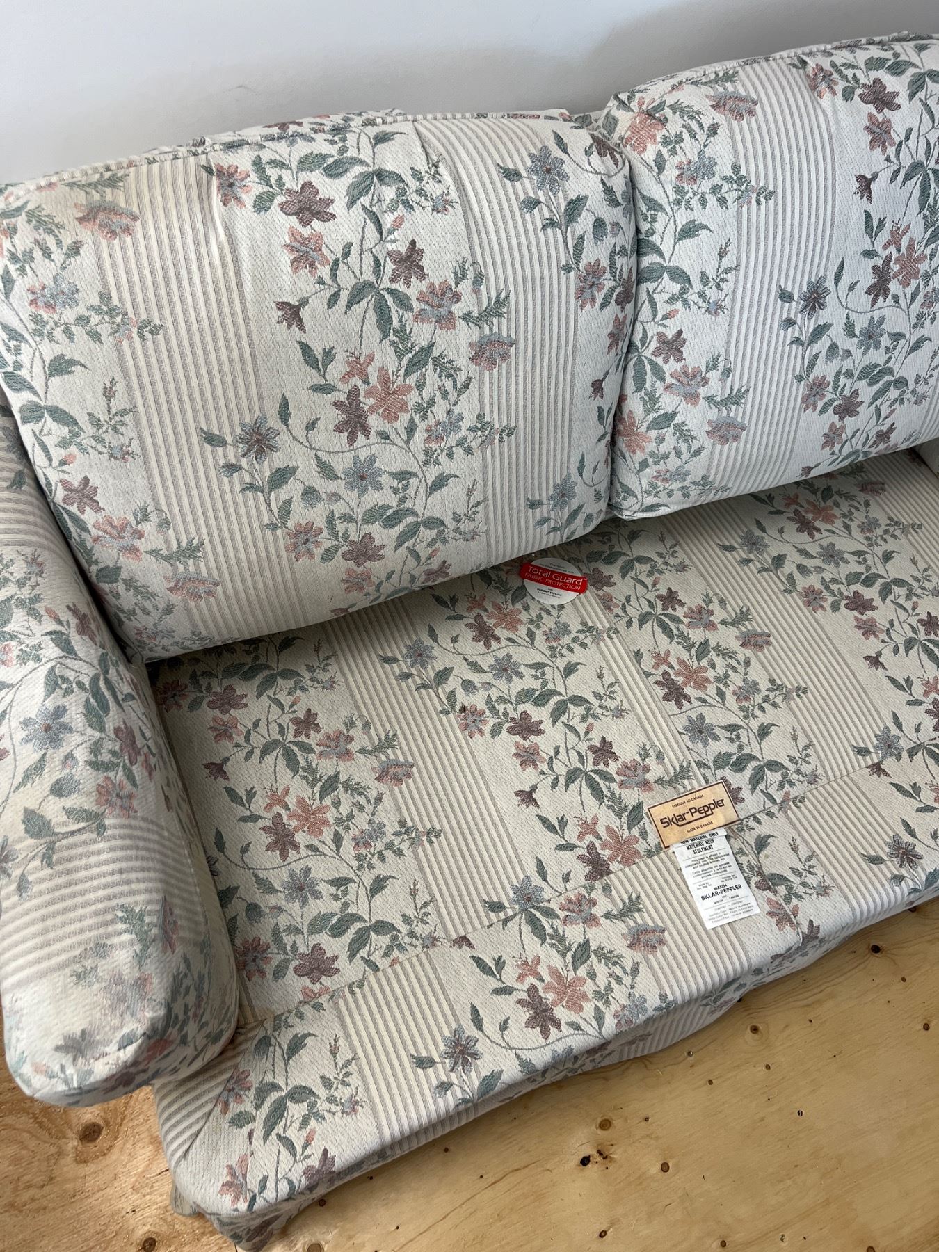 Measures 54" wide and 34" tall and deep. Some staining and discolouration mainly to one cushion/side.