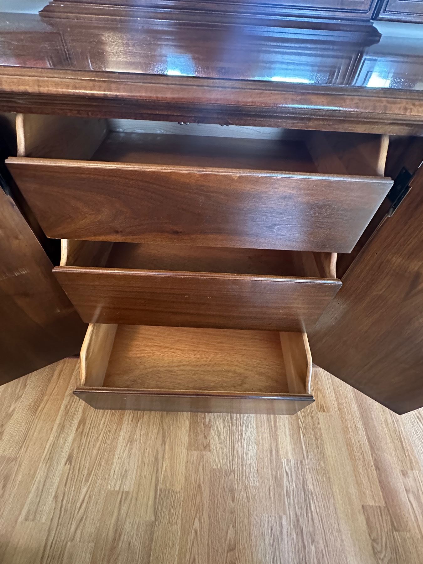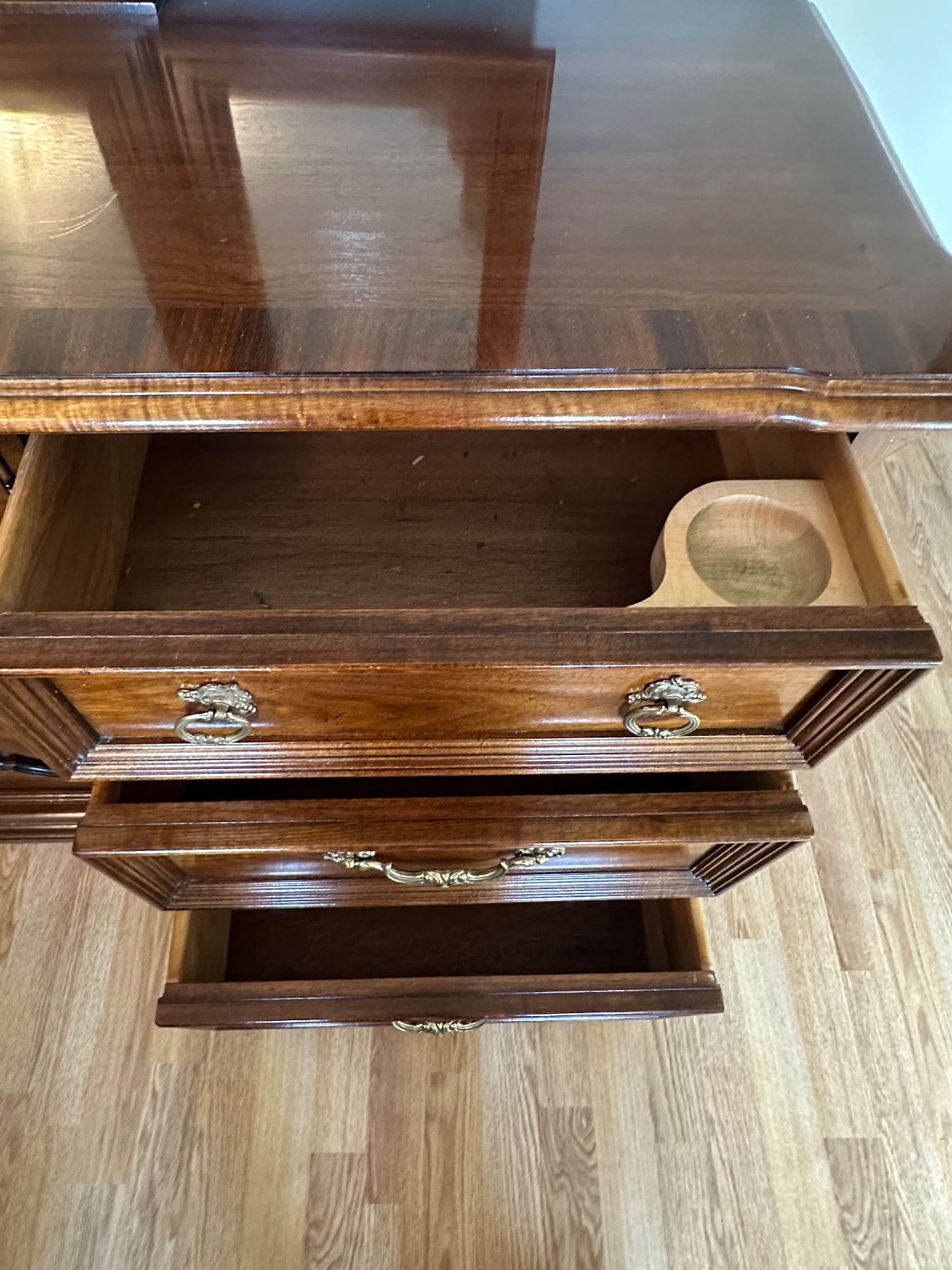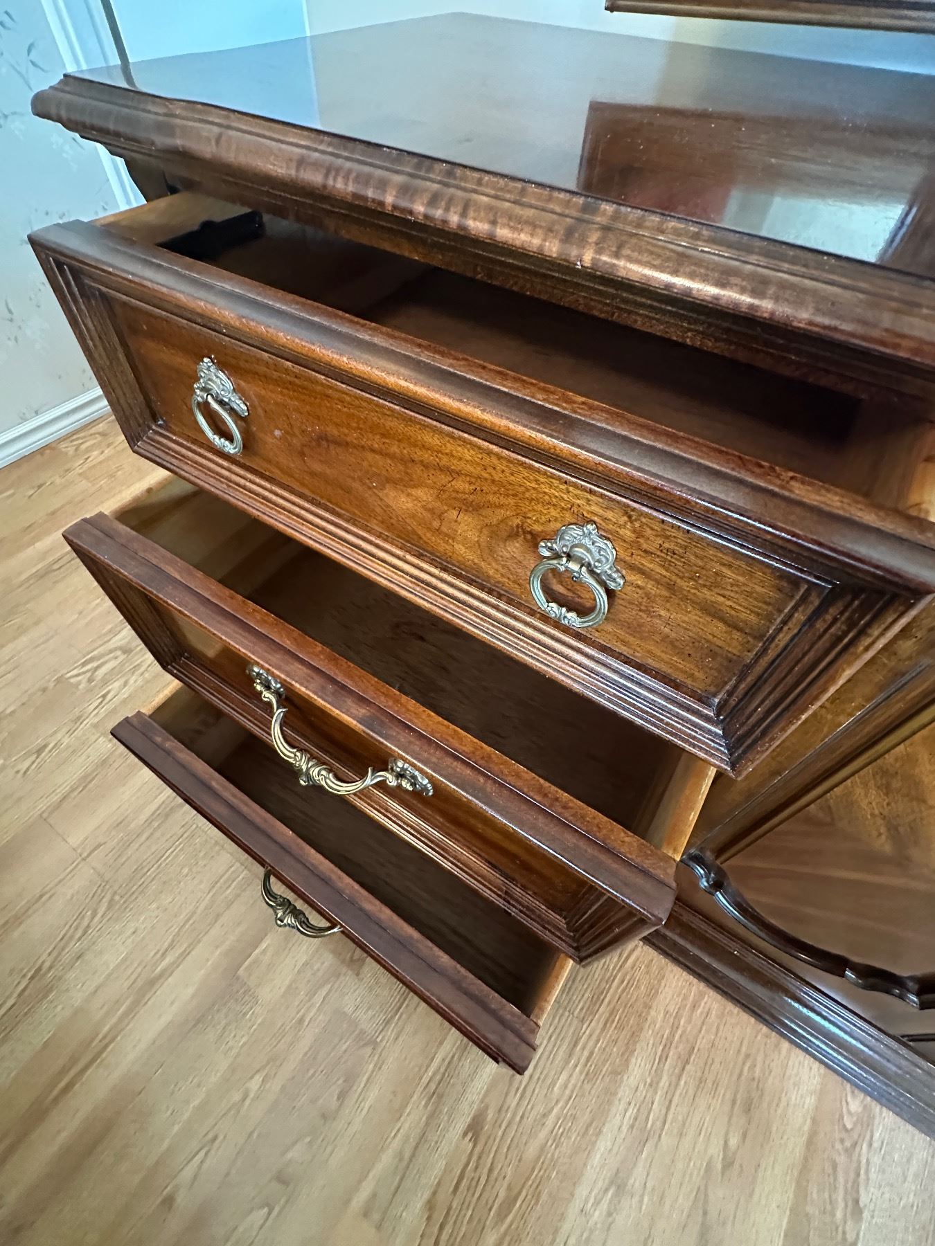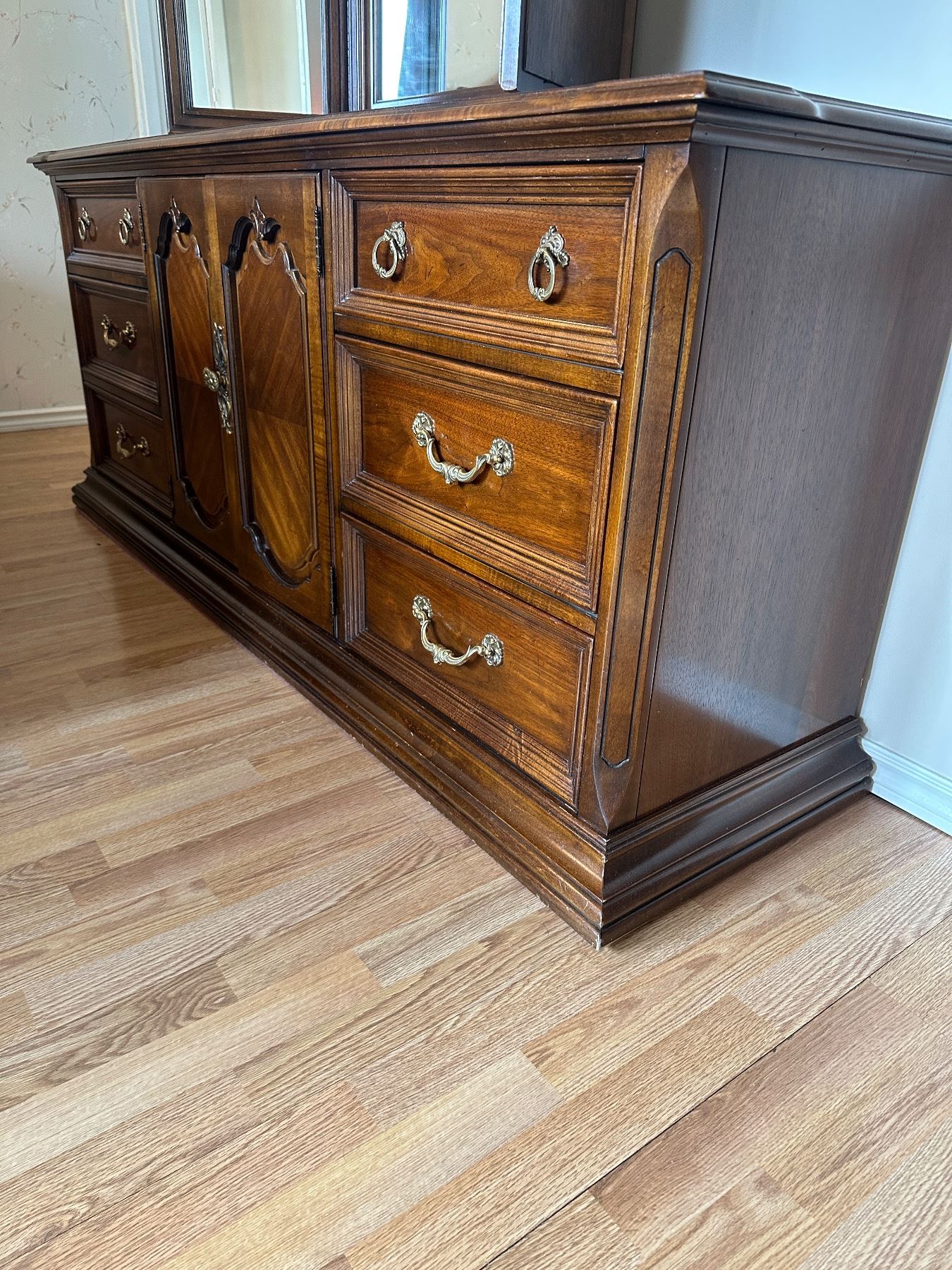 Made in Canada wooden dresser 71" wide x 19" deep x 30.5" tall. Tri-fold mirror when fully extended 53.5" wide x 1" Depp x 46.5" tall