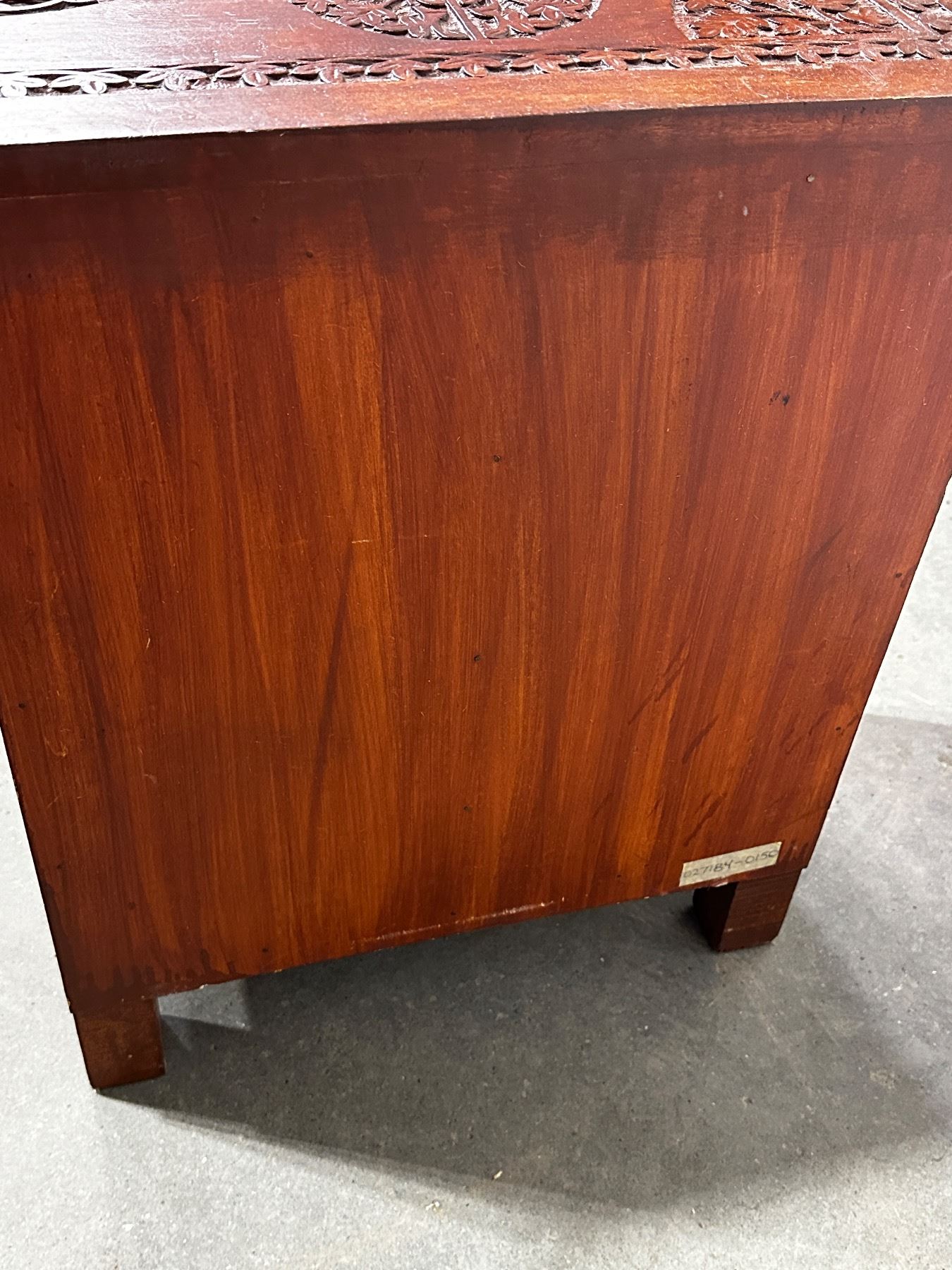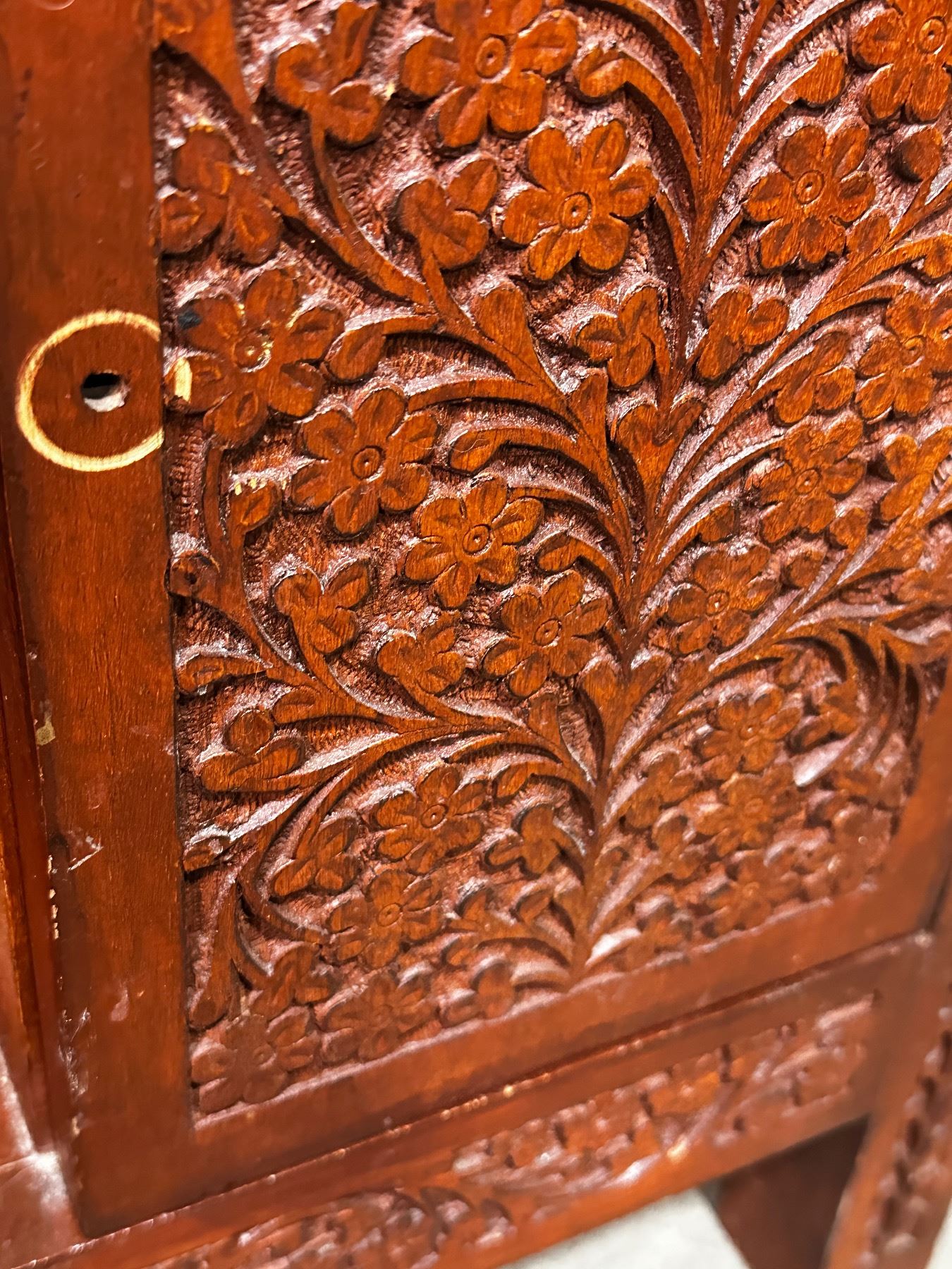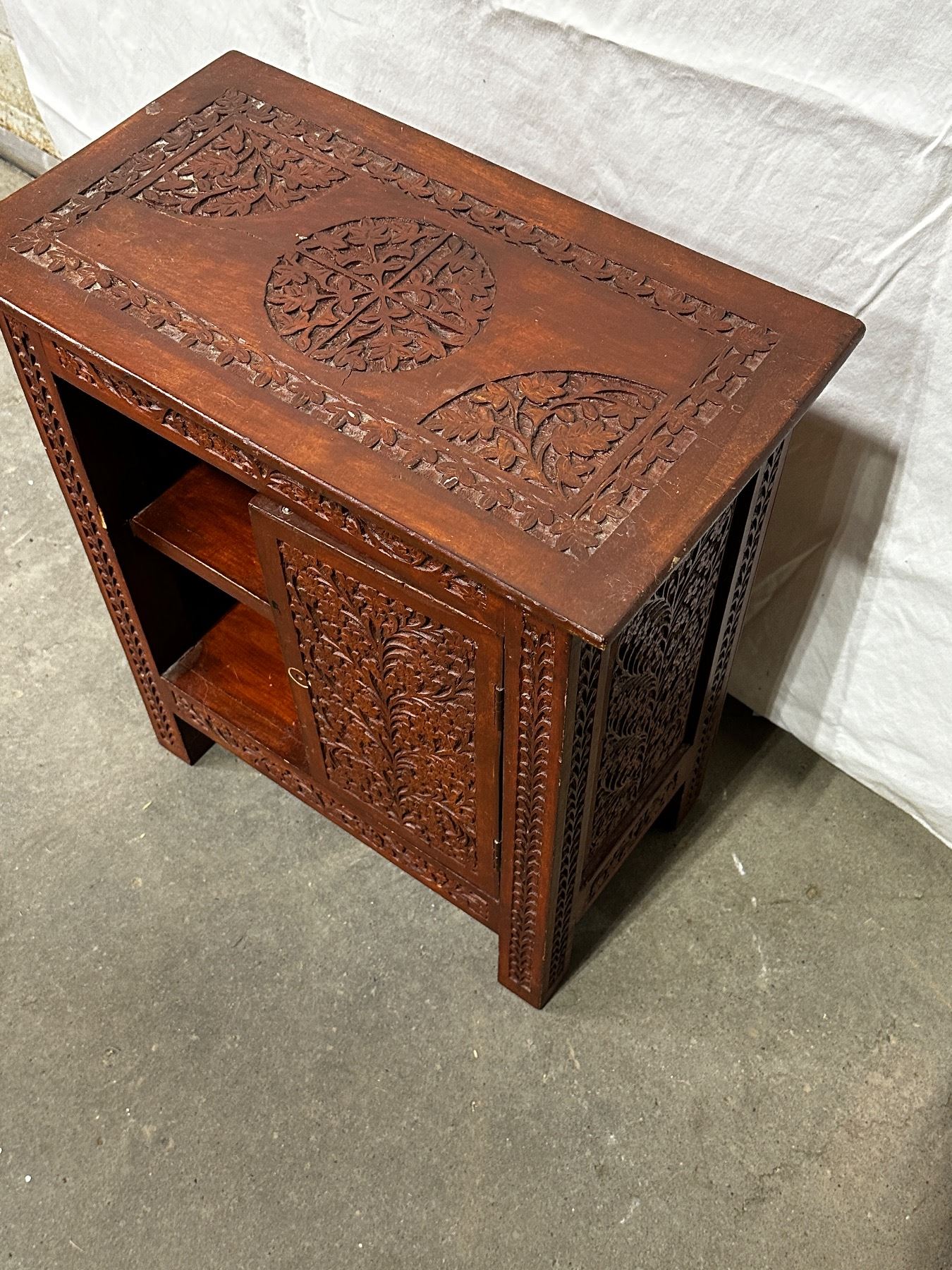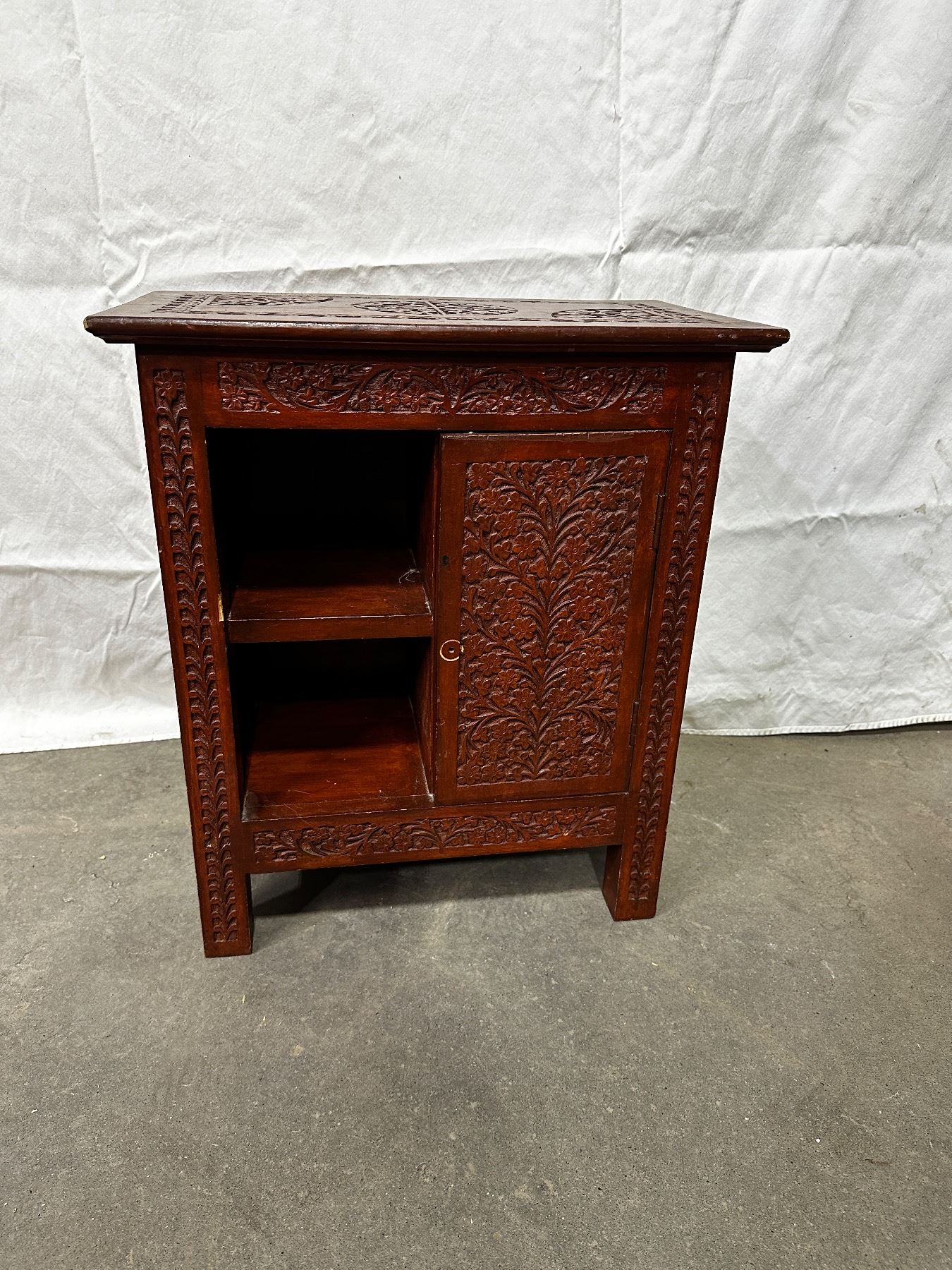 Has cracks in wood, scuffs, scratches. 24" tall x 11.5" deep x 21" wide