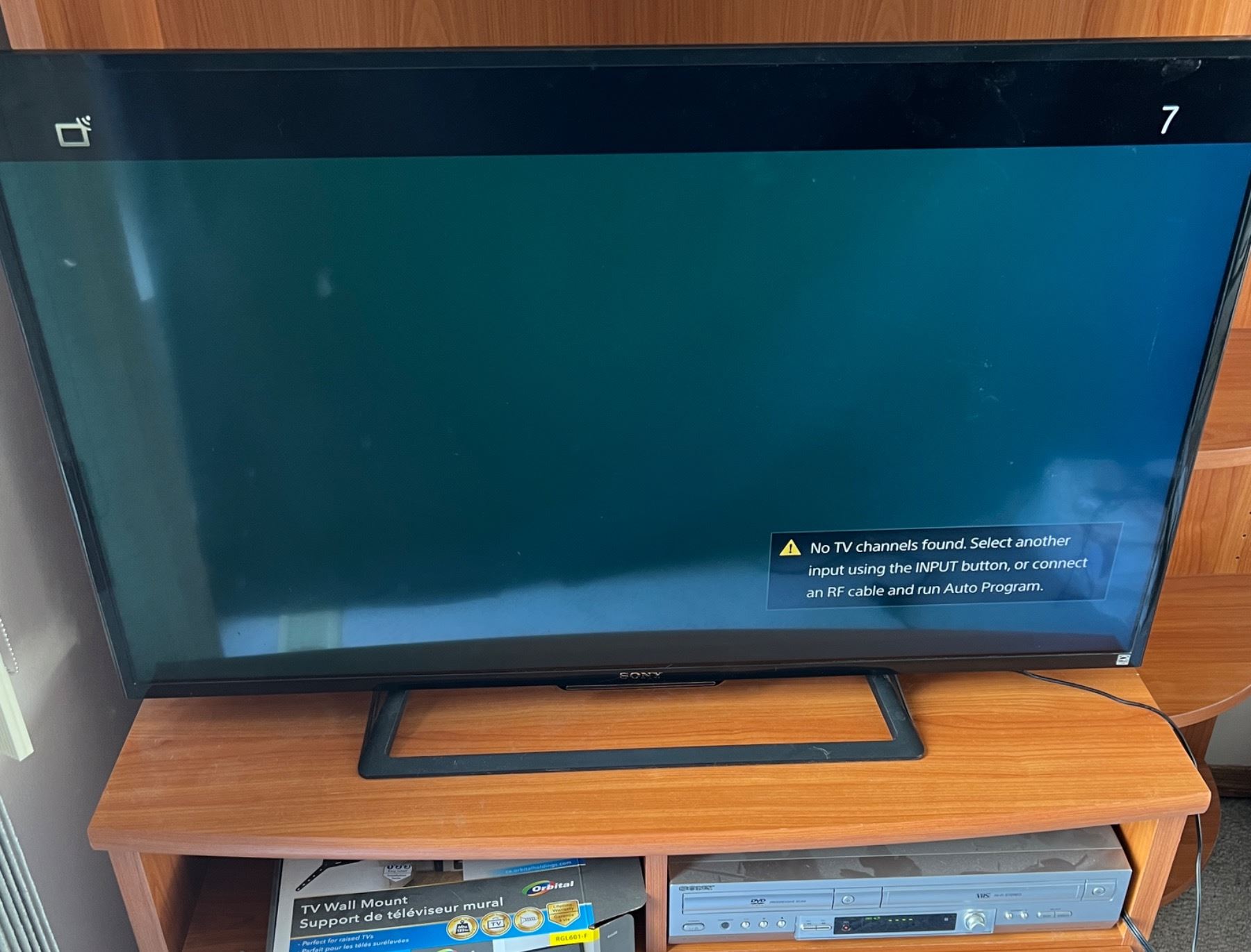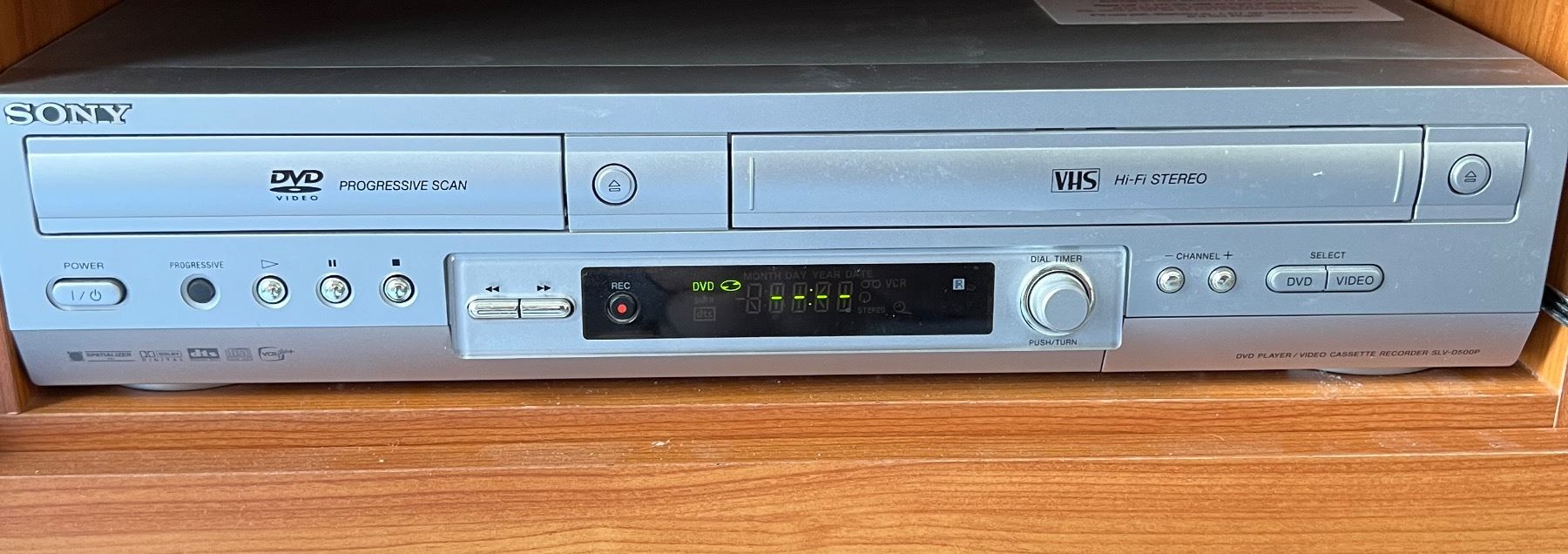 One remote, turns on, includes a TV wall mount, Sony DVD Player and Video Cassette Recorder SLV-D500P turns on,