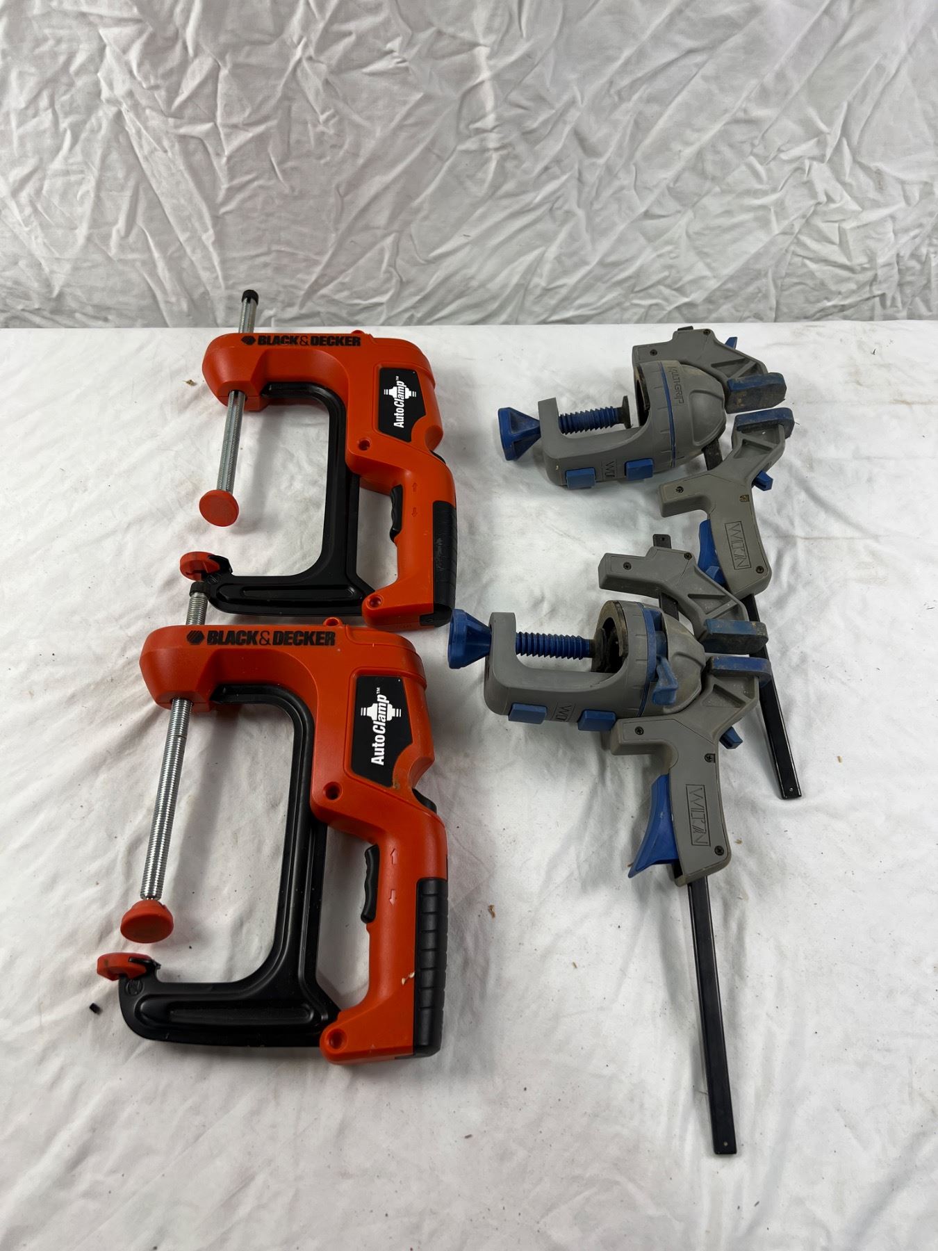 Black & Decker auto clamps require batteries but both work. Multi-grips work as well.