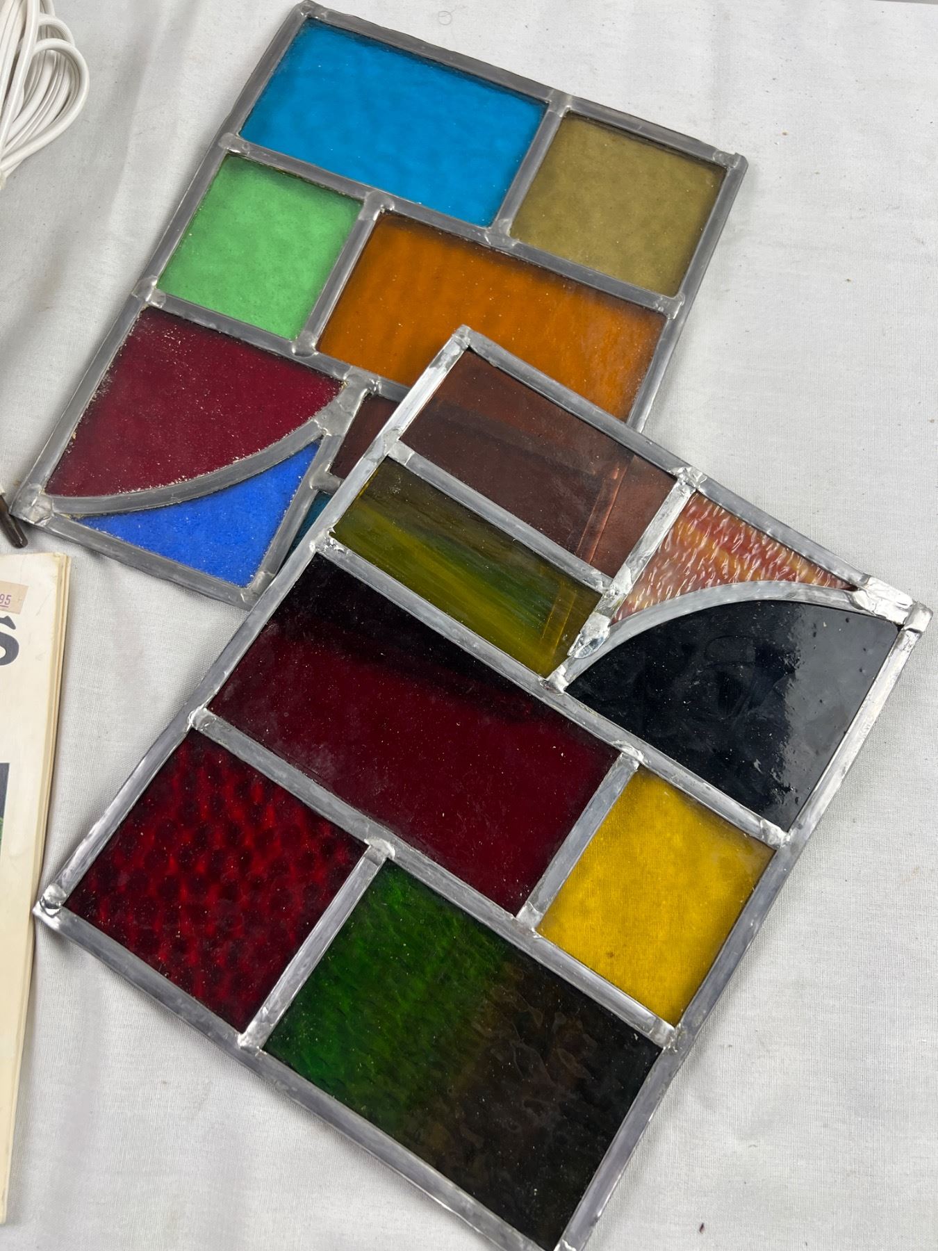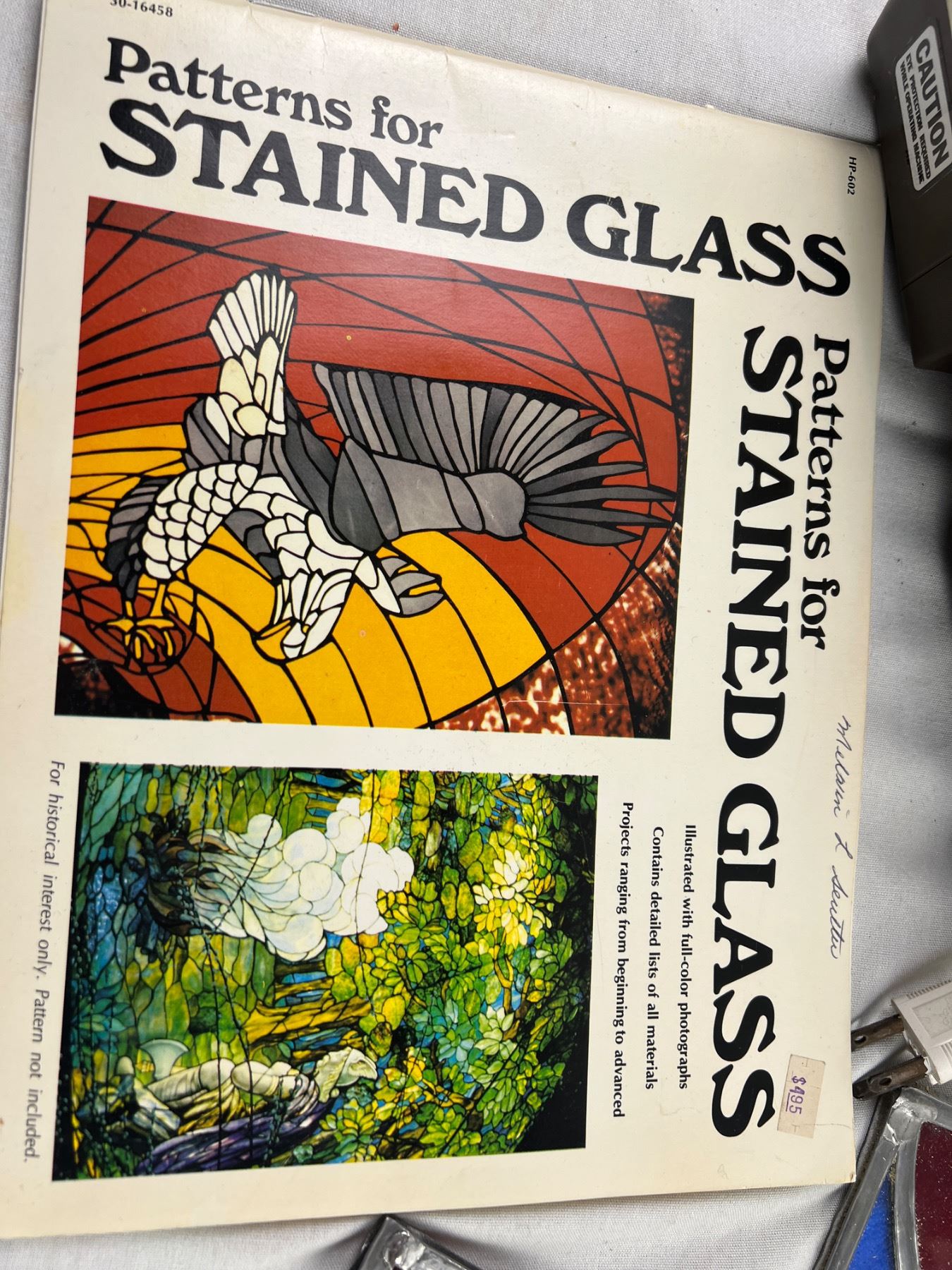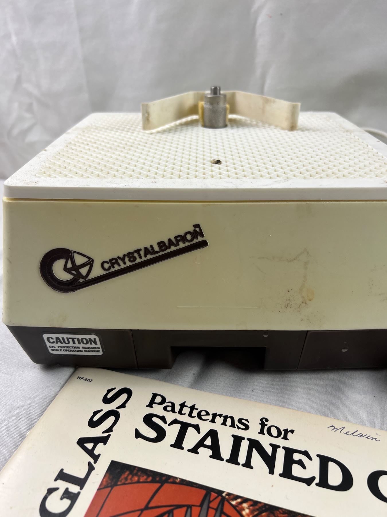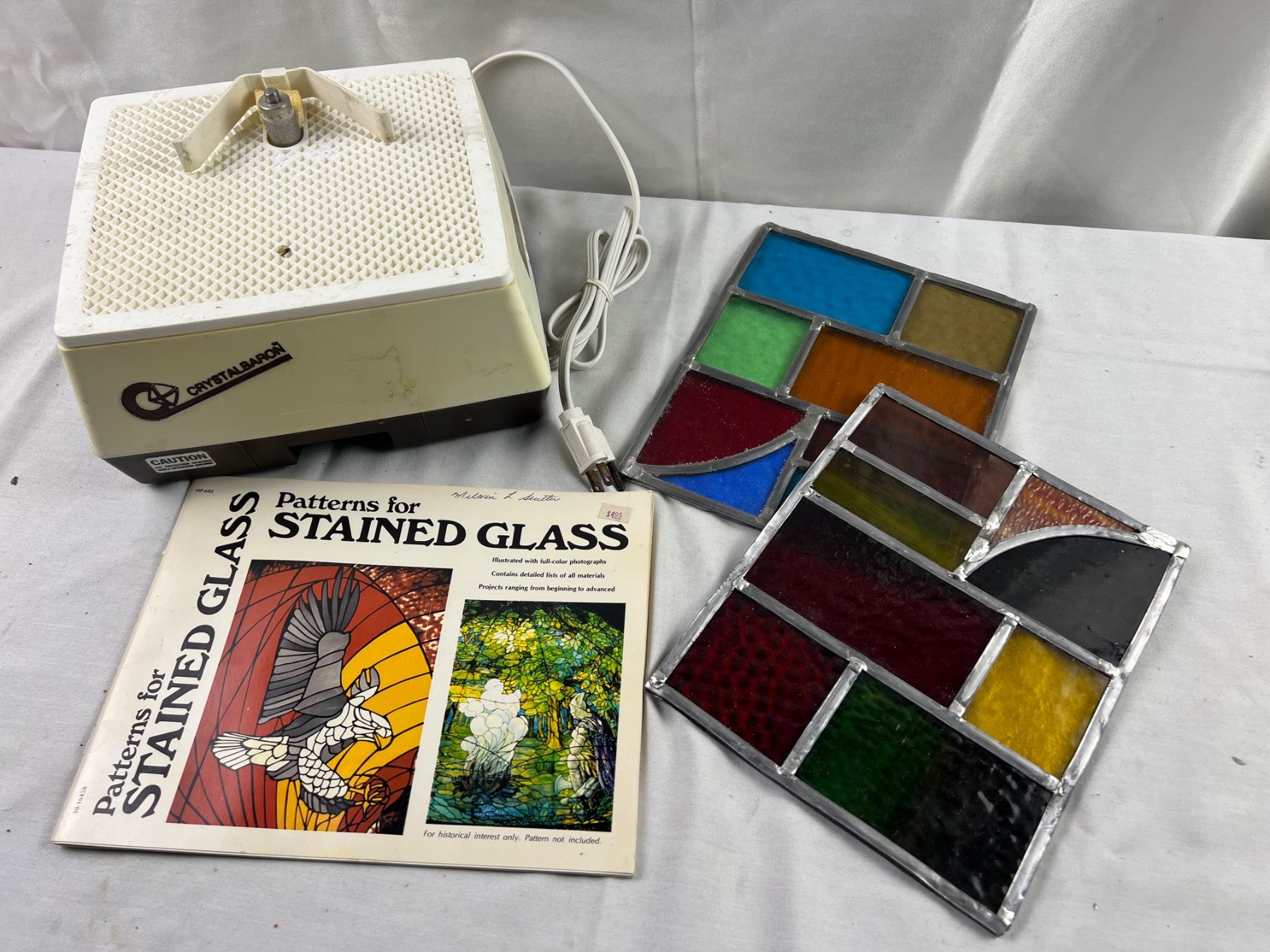 Includes a CrystalBaron (turns on), Pattern Book, two panes of stained glass 10x8"