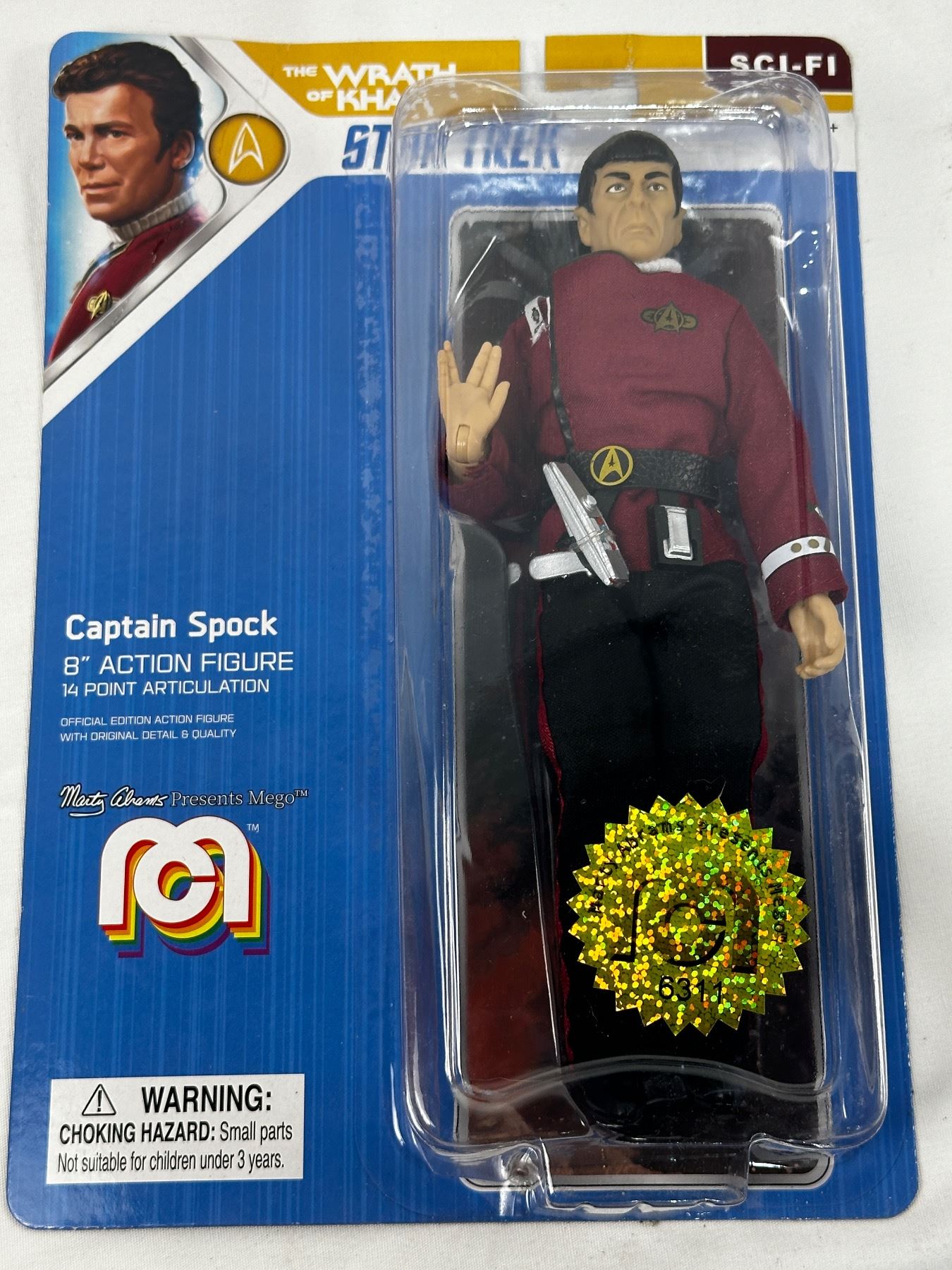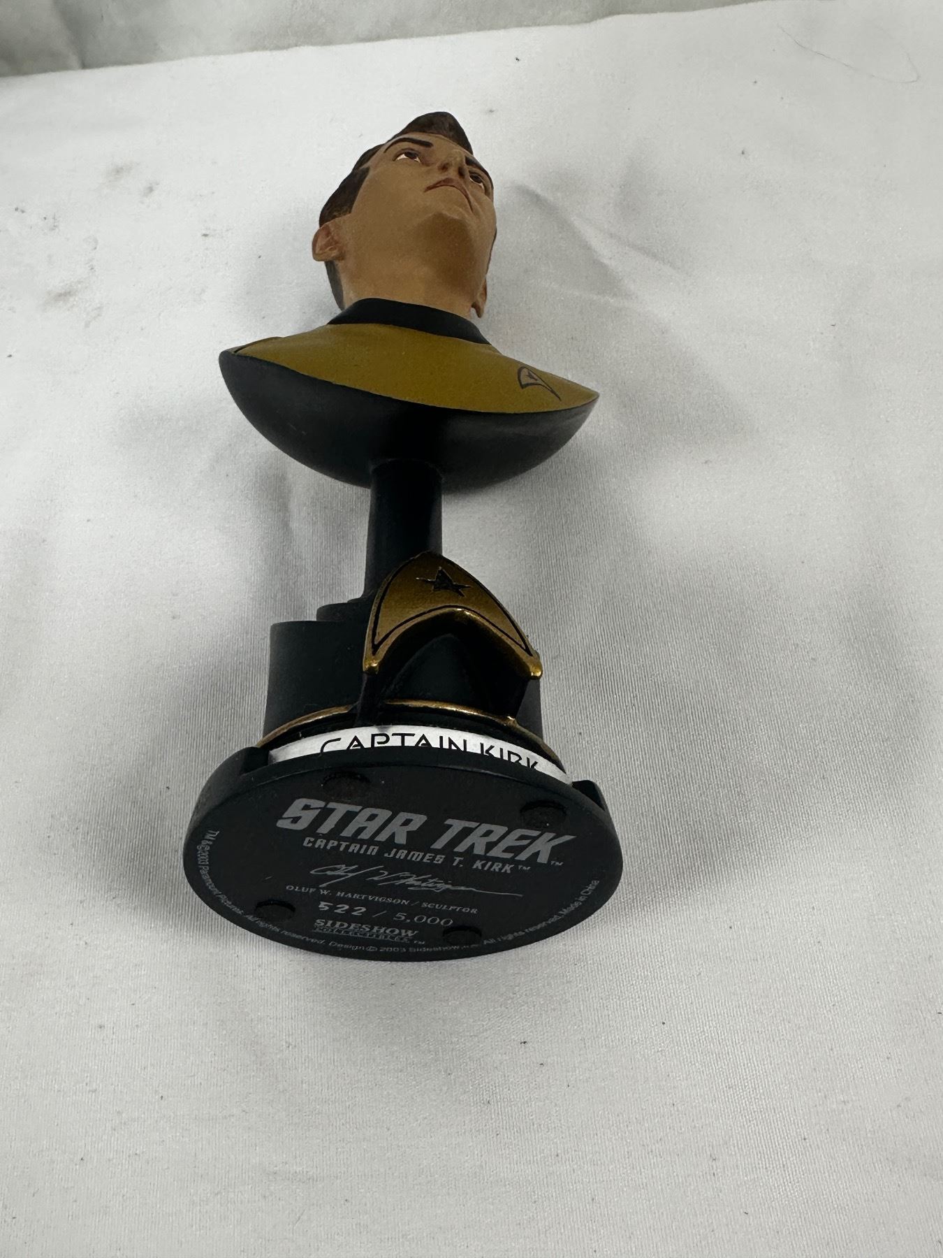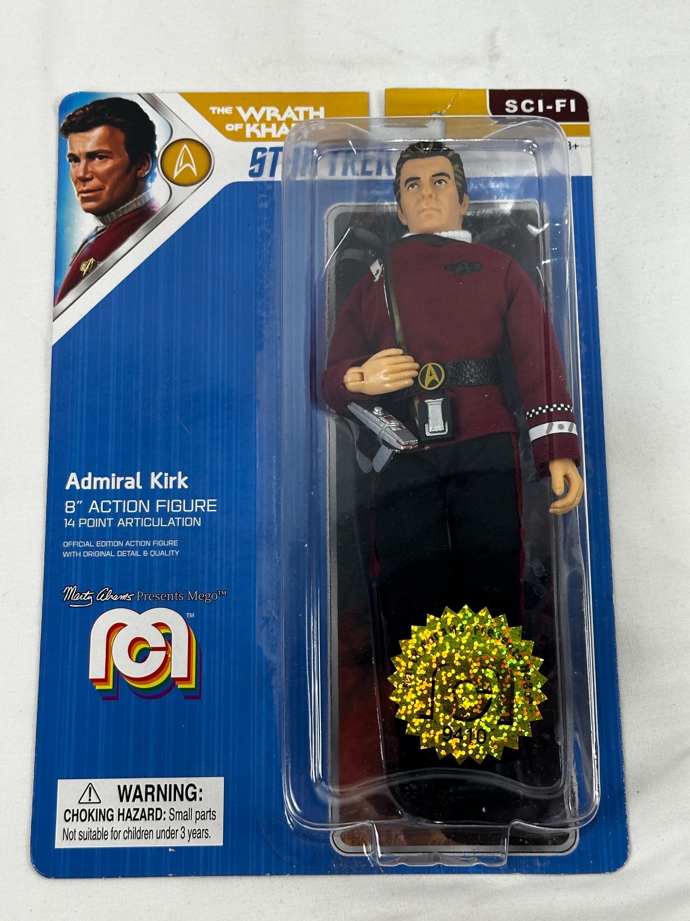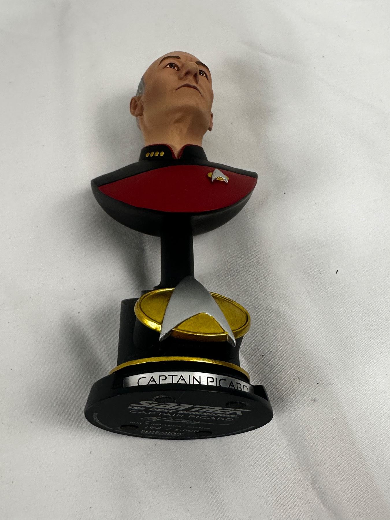 Includes The Star Trek 25th Anniversary Commemorative Collection KIRK Plate #2960H - Captain Picard and Captain Kirk Figurines each 7" tall - 3 8" action figures in boxes including Khan Noonien Singh, Admiral Kirk and Captain Spock.