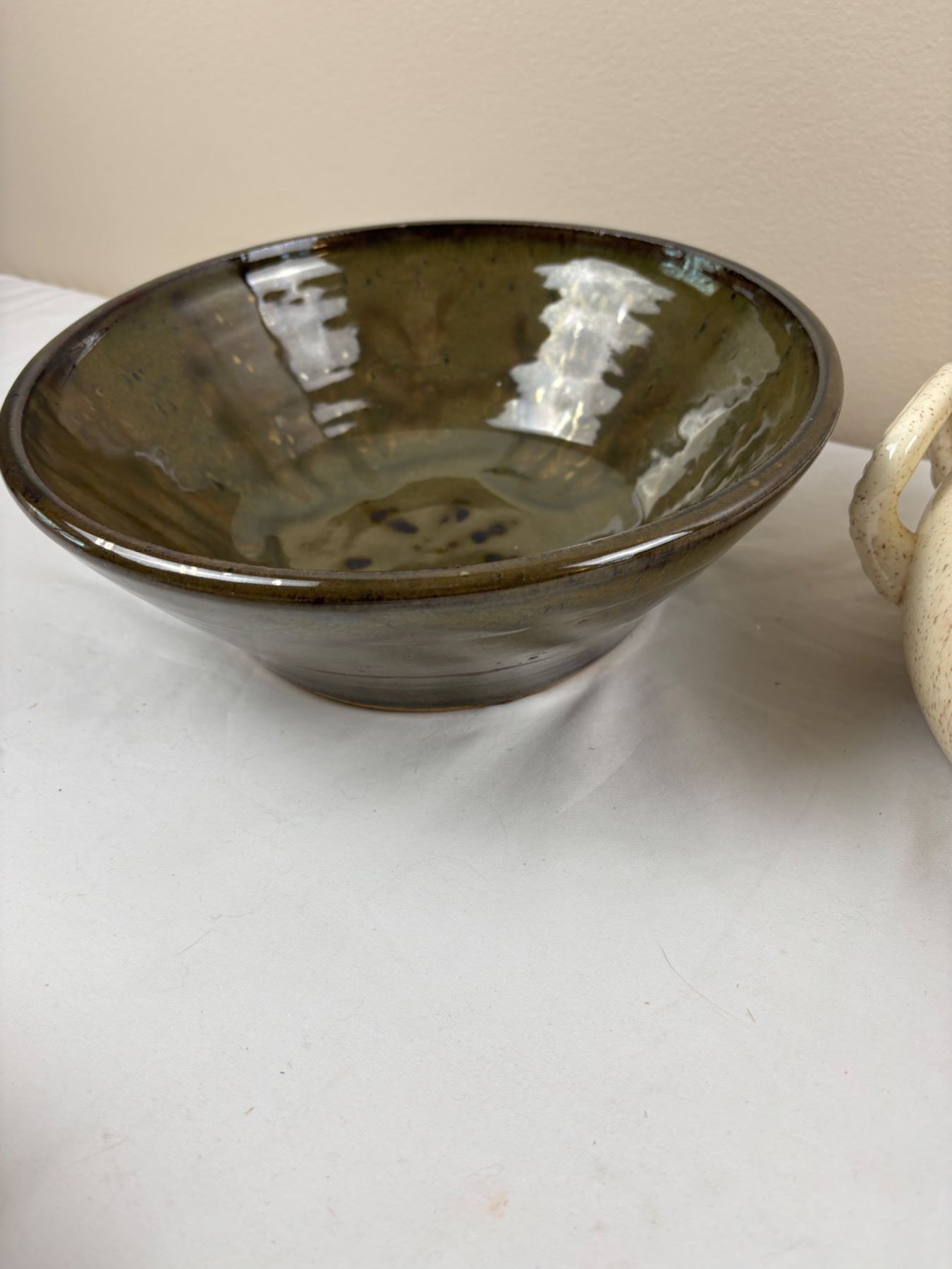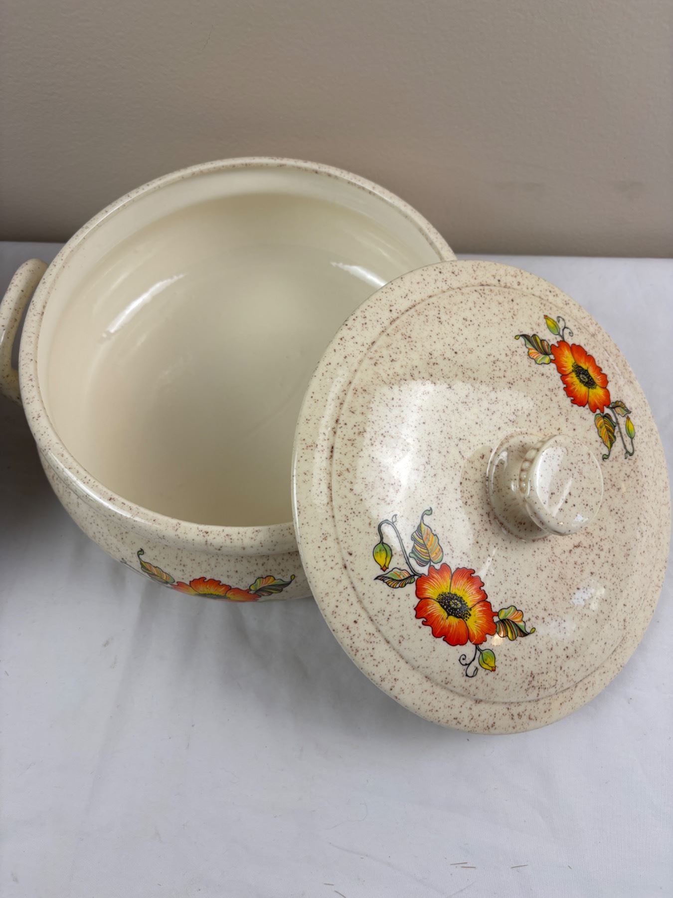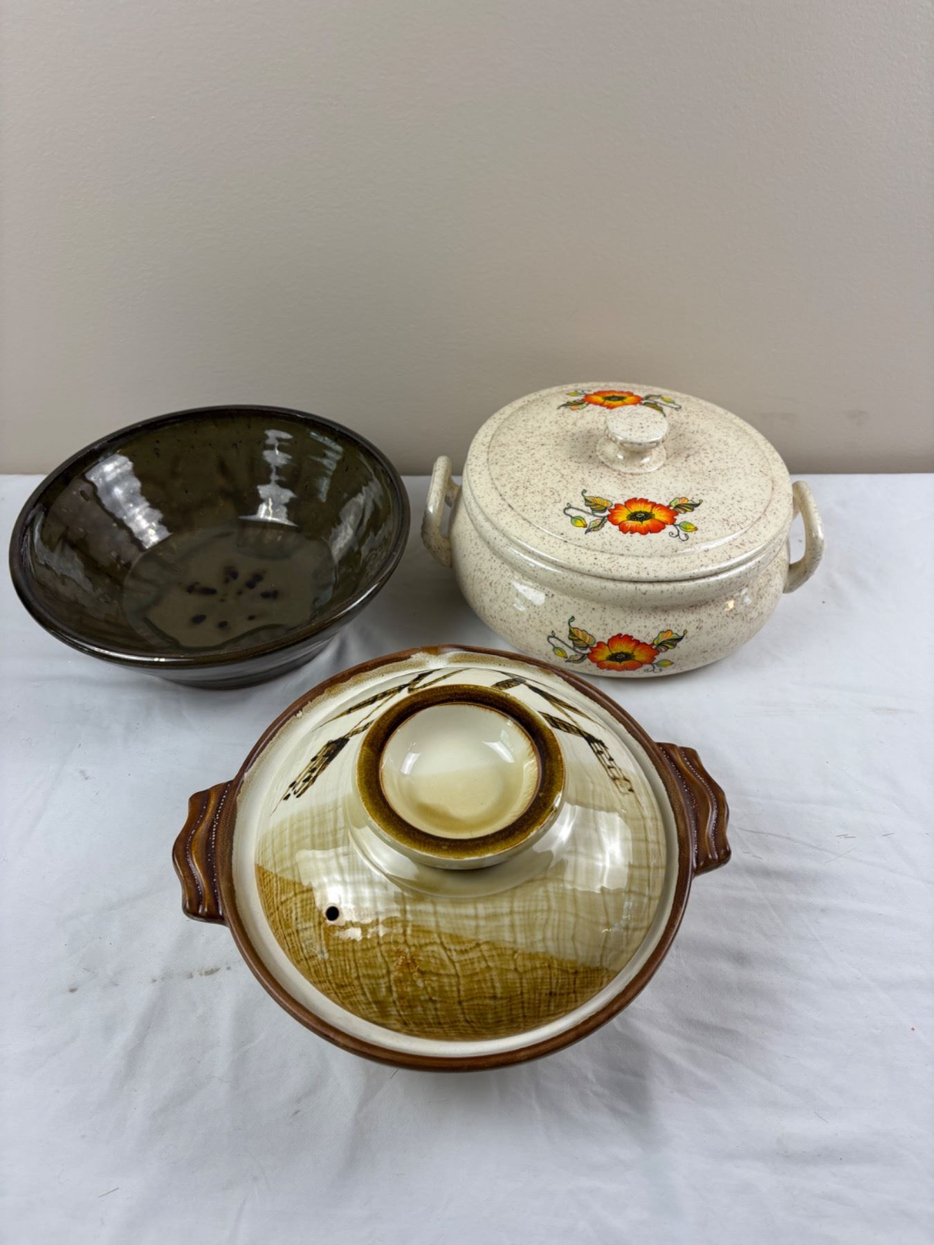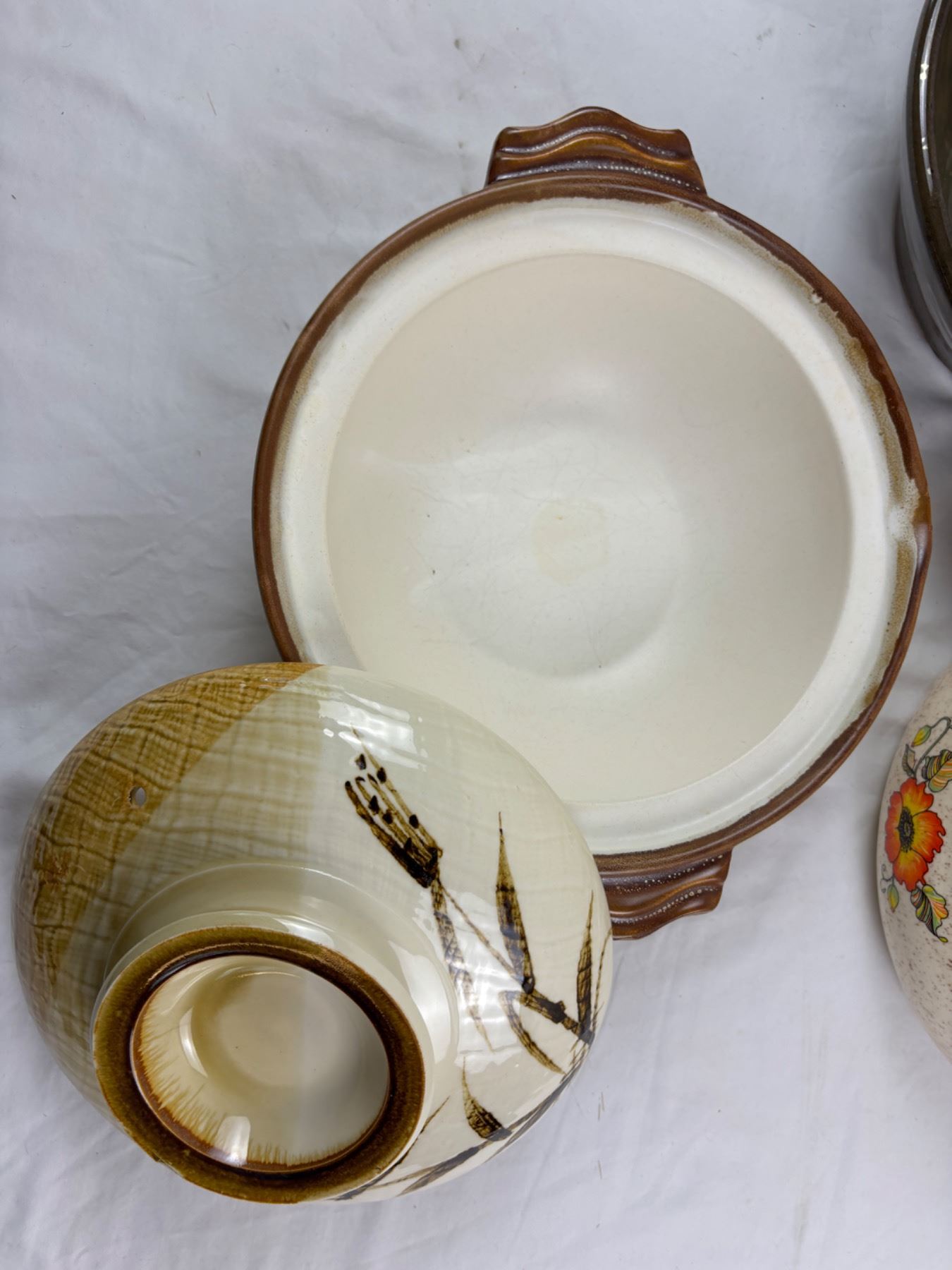 Includes, Floral Painted lidded pot signed "B.U" (12"diameter x 6"H)