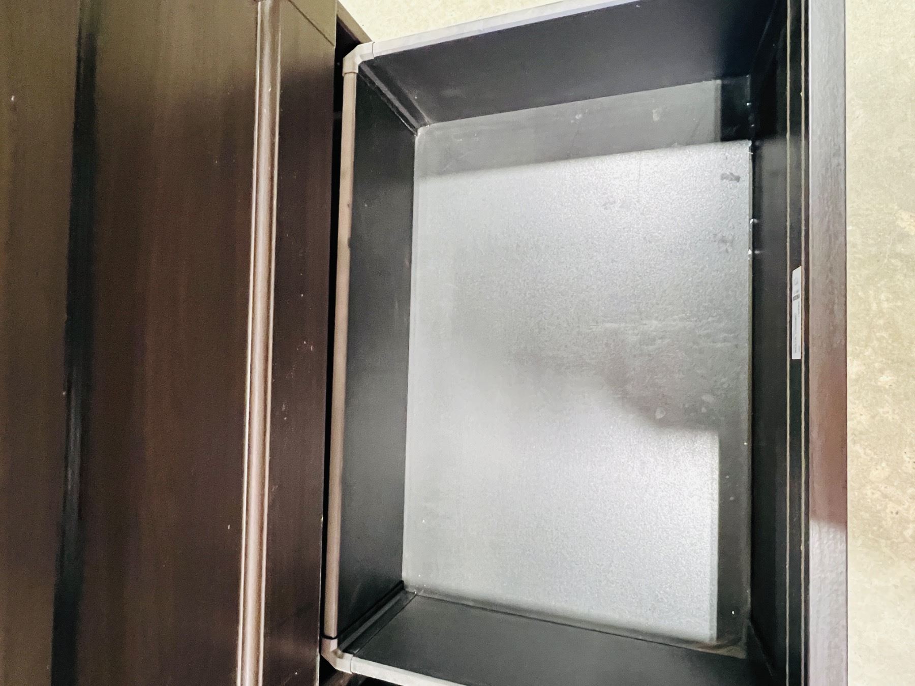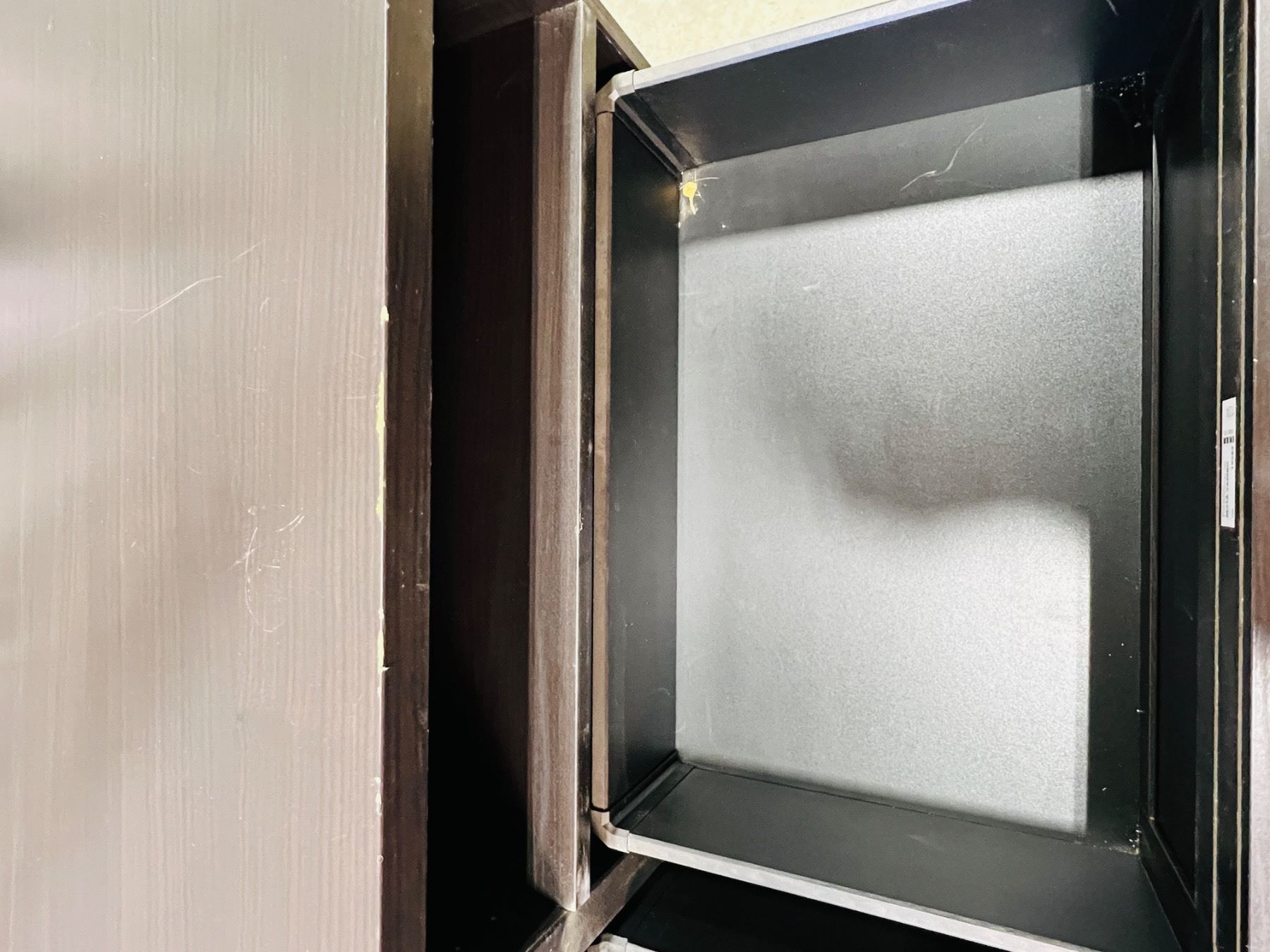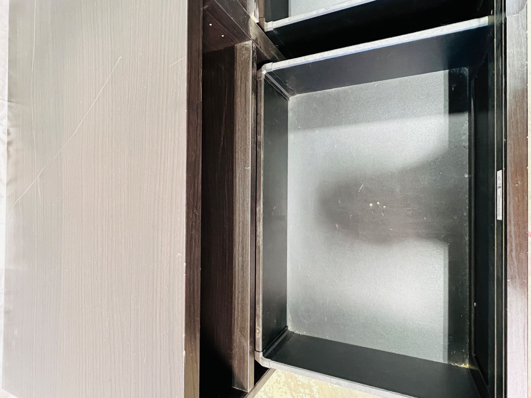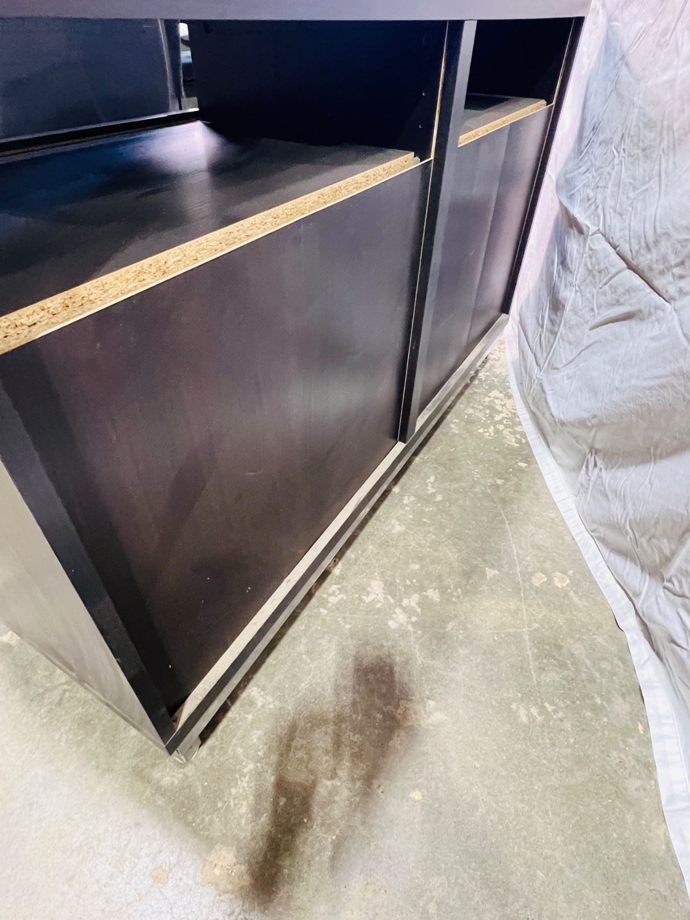 Measures 29"H 47x16", scratches and scuffs on top surface and edging, unstable stability