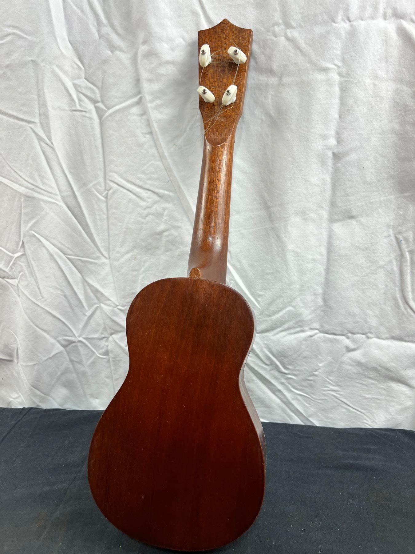 Largest guitar (Dana model # S-8) is missing one of its chord's and the tuning peg to tighten said cord down. Needs love. All pieces have wear and tear. Ukulele has a crack in the body.