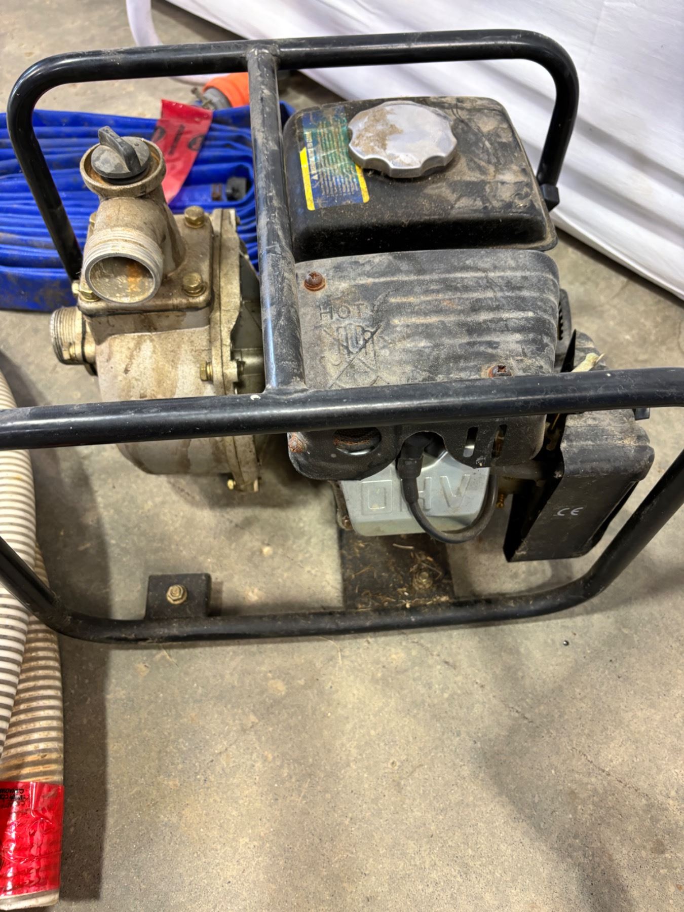Includes hoses, Powerfist 2.66HP/CV Water Pump (unknown working condition) stairs platform height 57" tall x 47" wide.