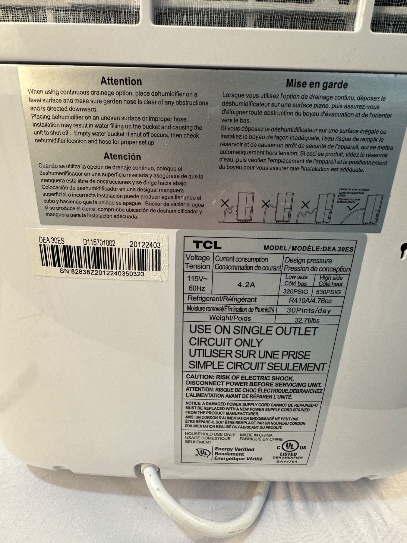 Turns on and fan starts - 20" tall x 14" wide x 12" deep