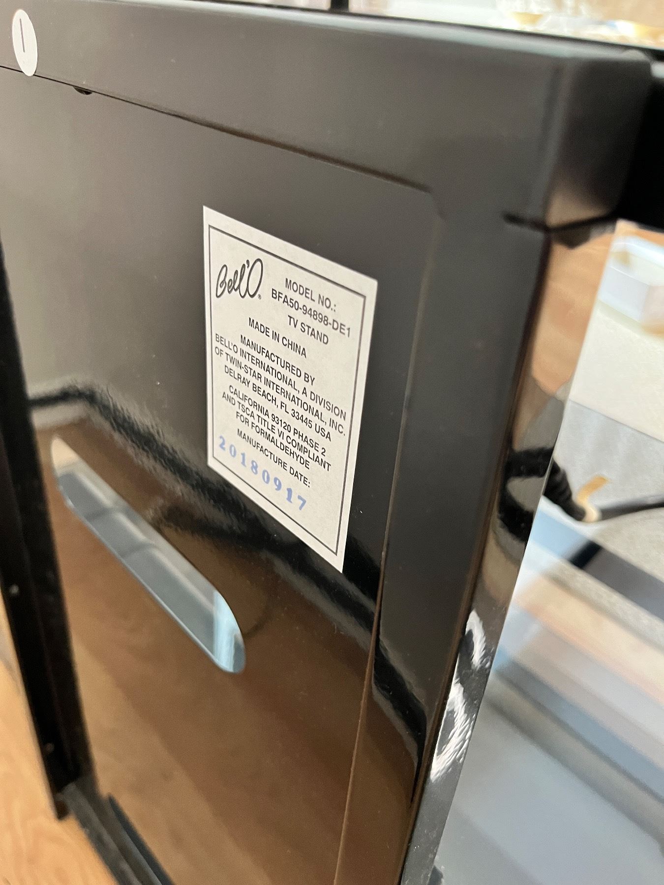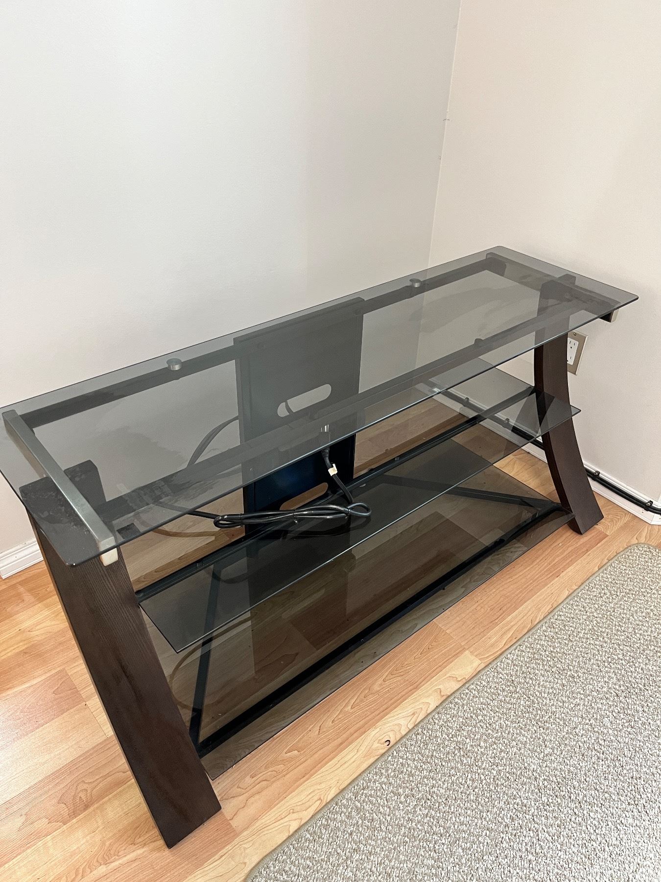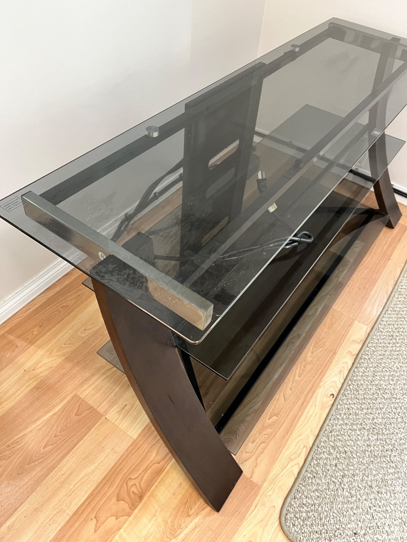 Bell'o TV Stand Model BFA50-94898-DE1, glass shelves 50" long x 18" wide x 23" high