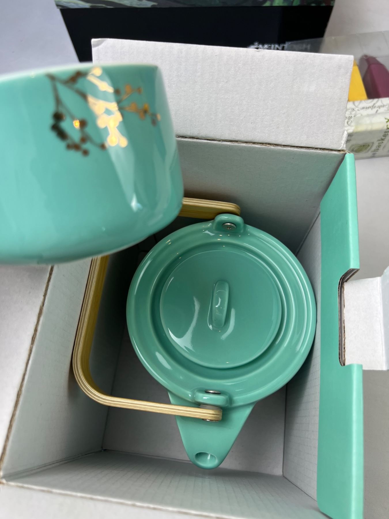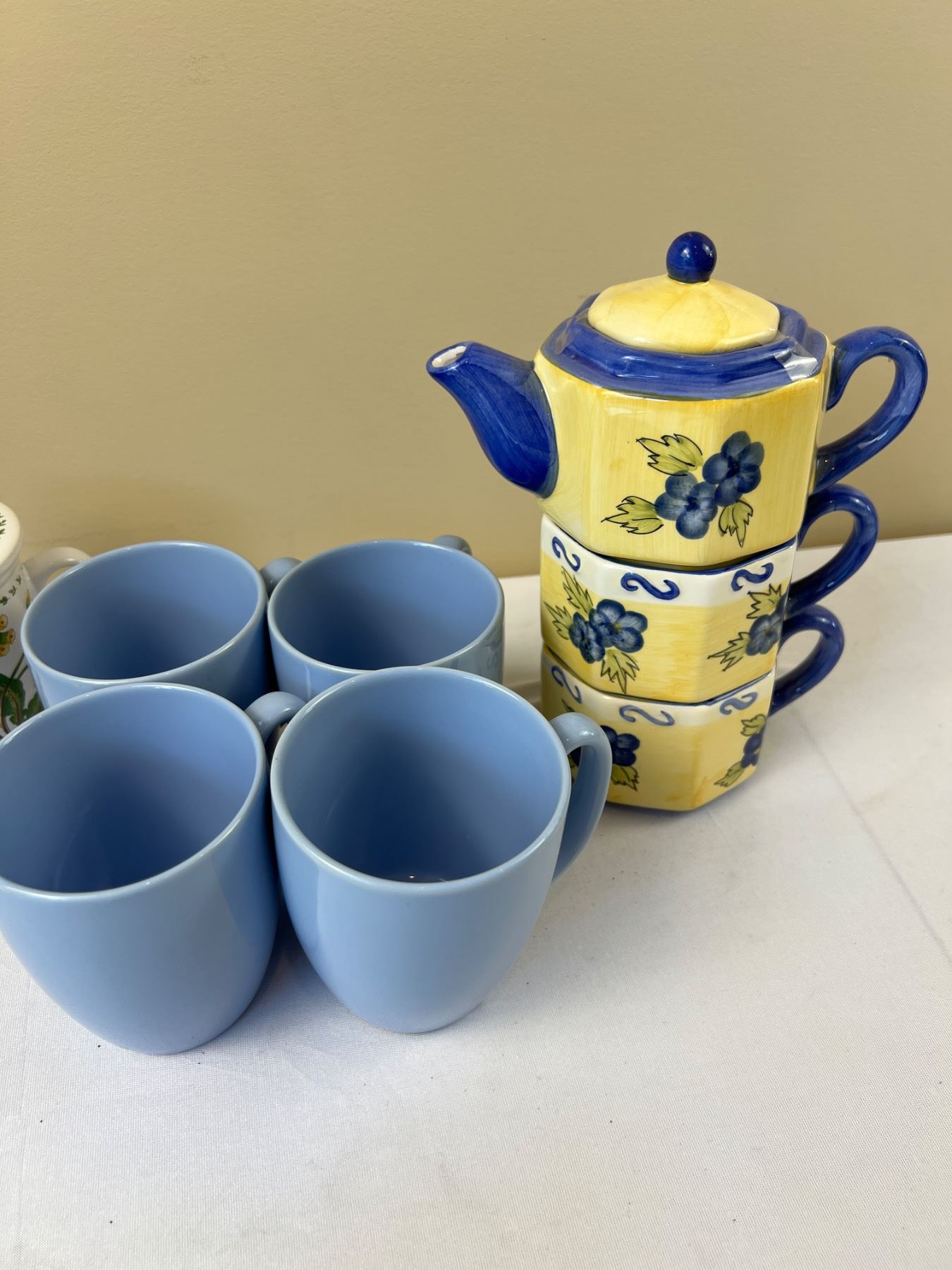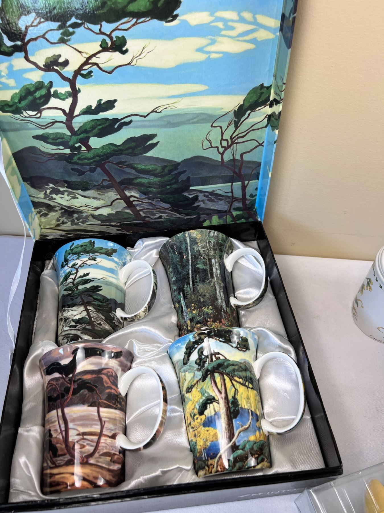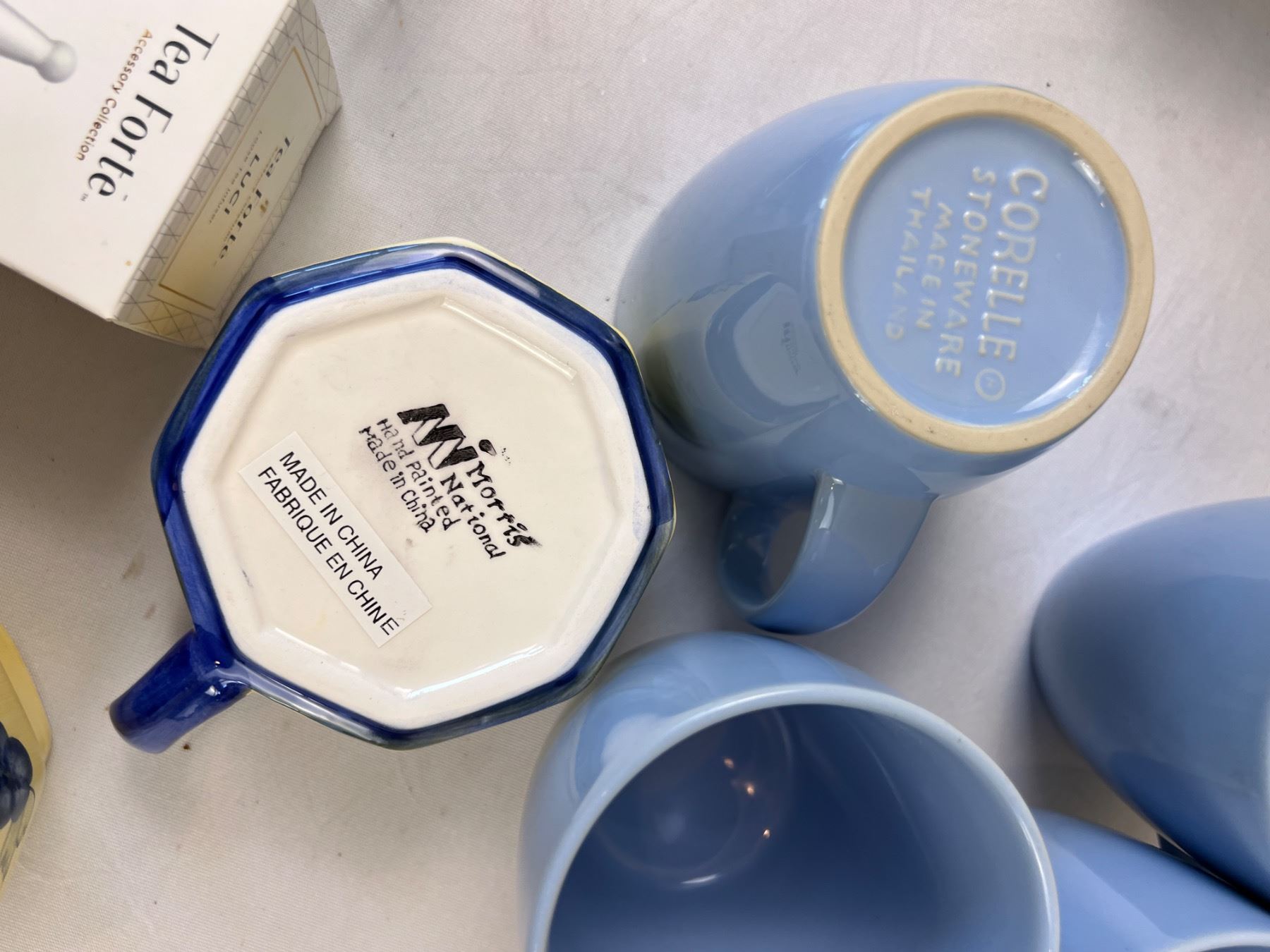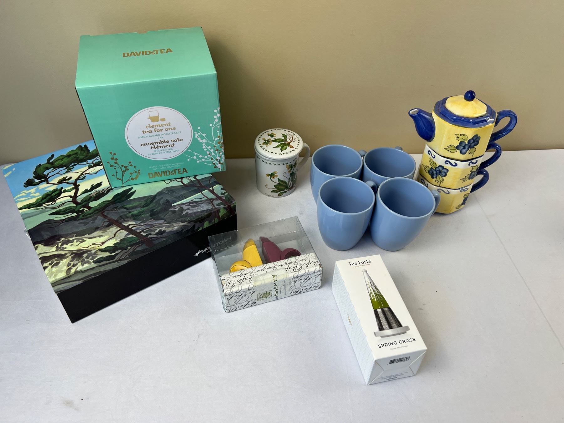 Includes a new set of Mcintosh mugs, Davids Tea Set, Corelle mugs, and more