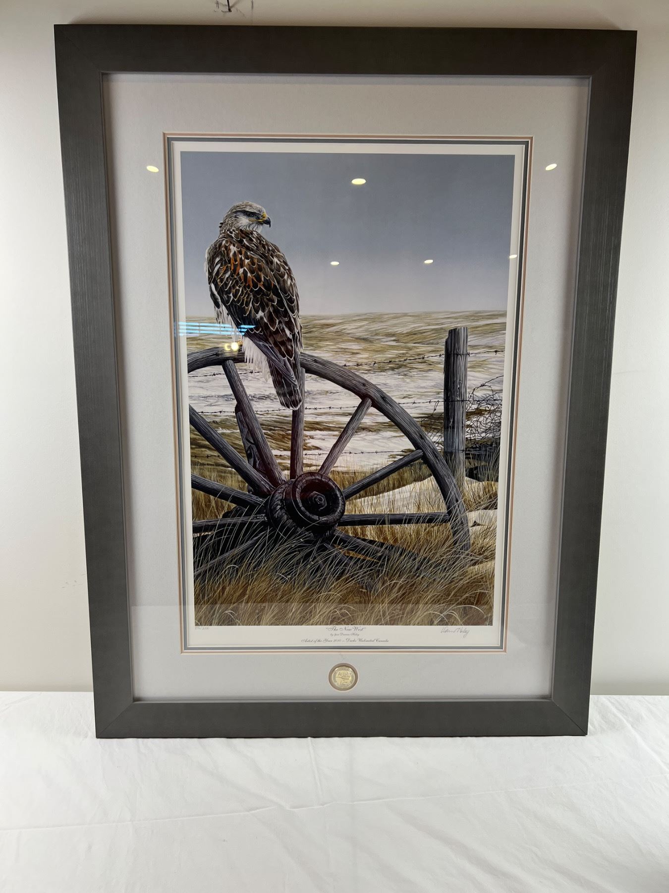 Measures 40" by 30". Print number shown in images, unknown material for medallion.