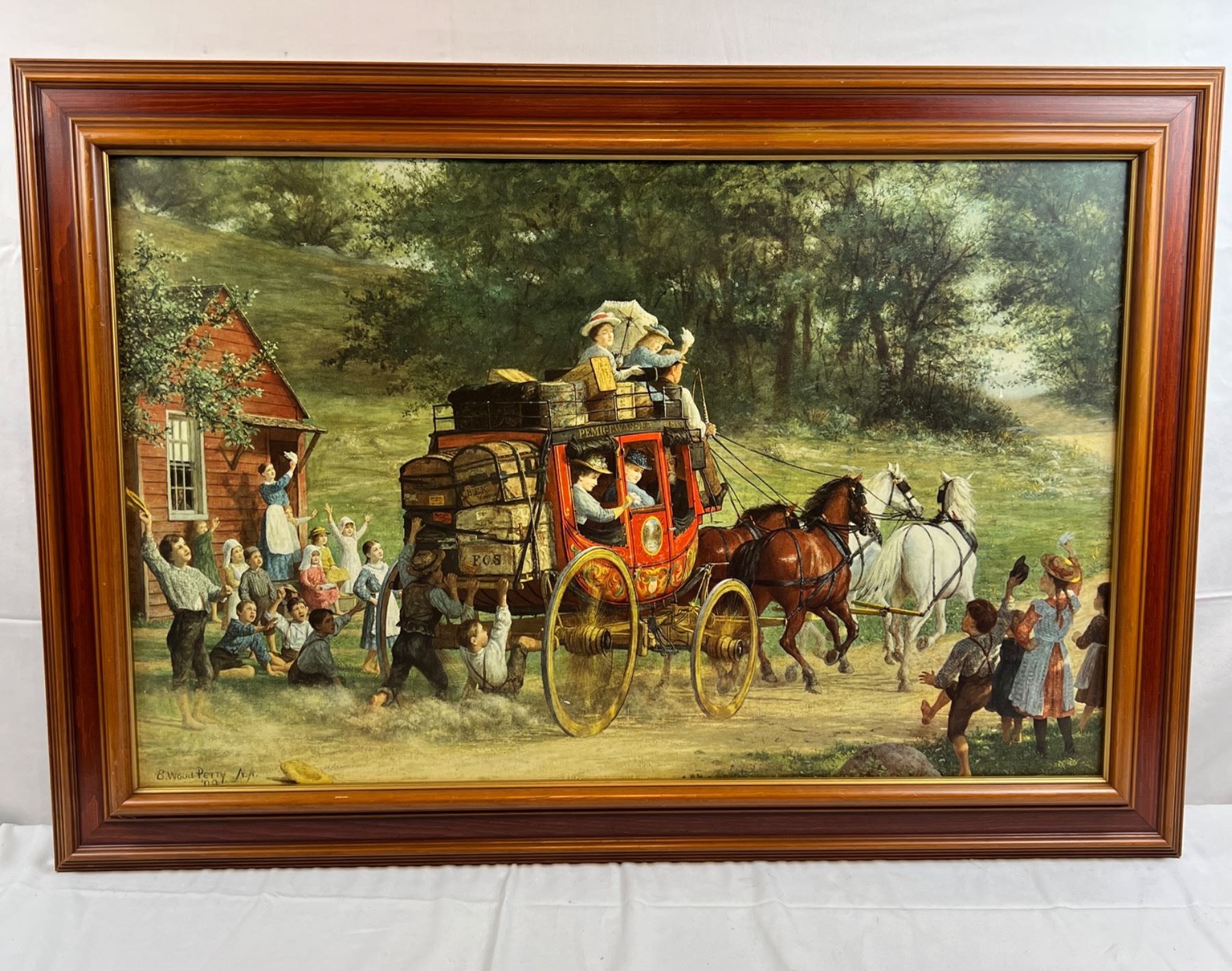 Signed by Enoch Wood Perry. Measures 41" wide and 29" tall. Some damage to paper on rear