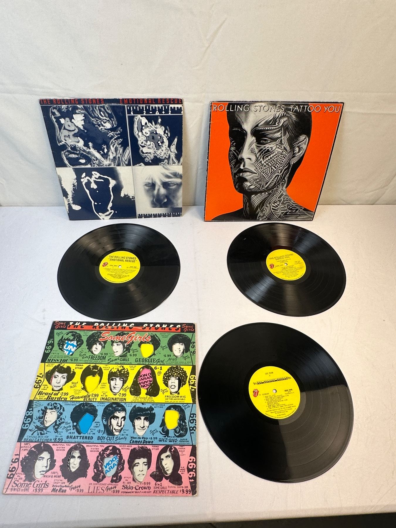 Some Girls - 1978, Tattoo You - 1981 (some pen on case) Emotional Rescue - 1980 , Records in good conditon cases have wear and tear .