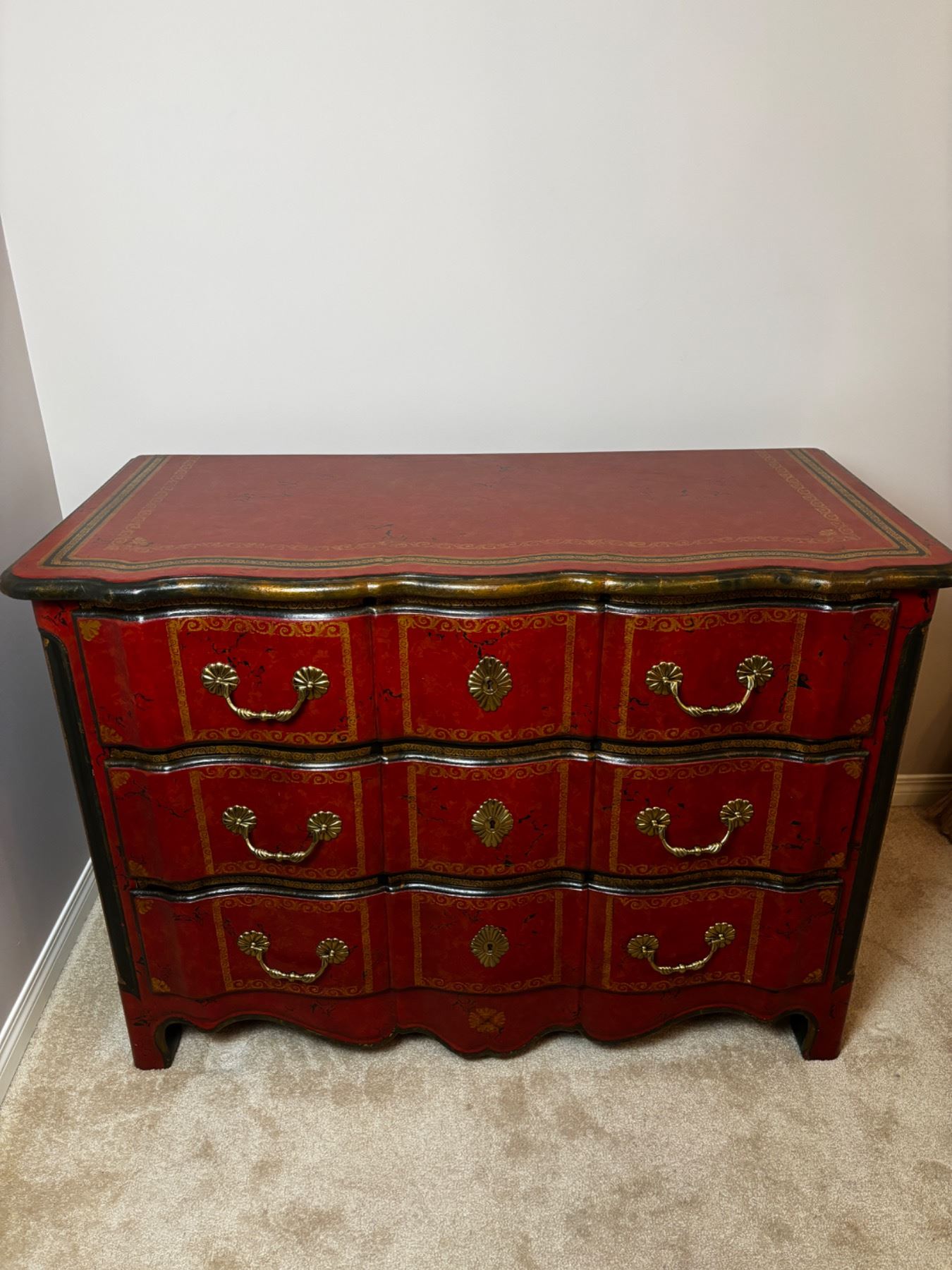 French Provincial style dresser. Faux key locks on drawer. Approximately 49" by 35" and 24".