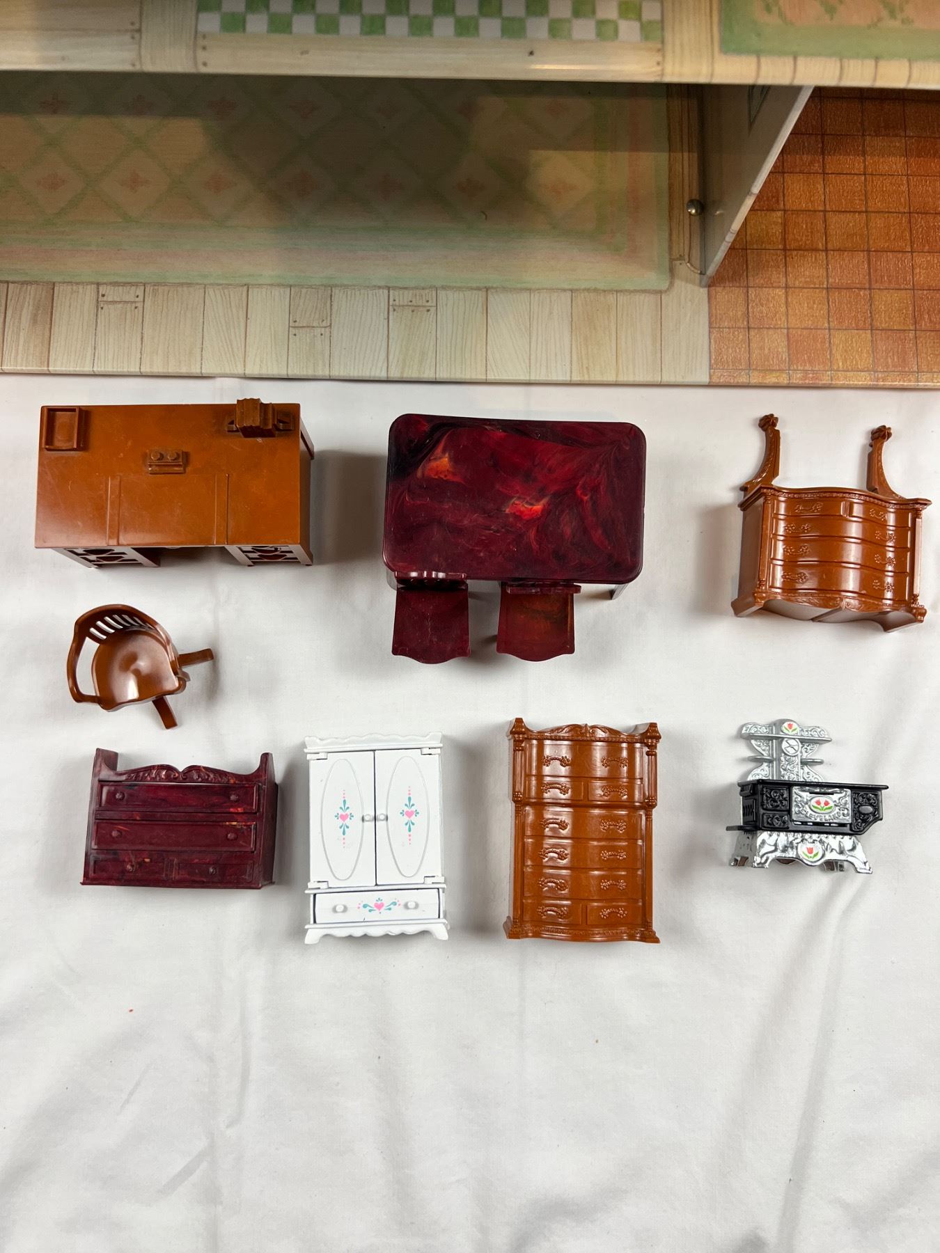 Includes some furniture for home. Measures 16" tall by 22" wide and 12" deep.