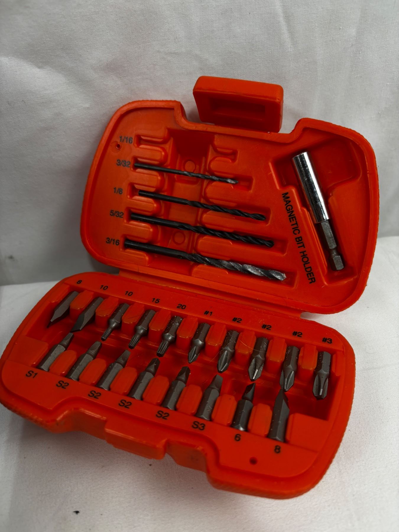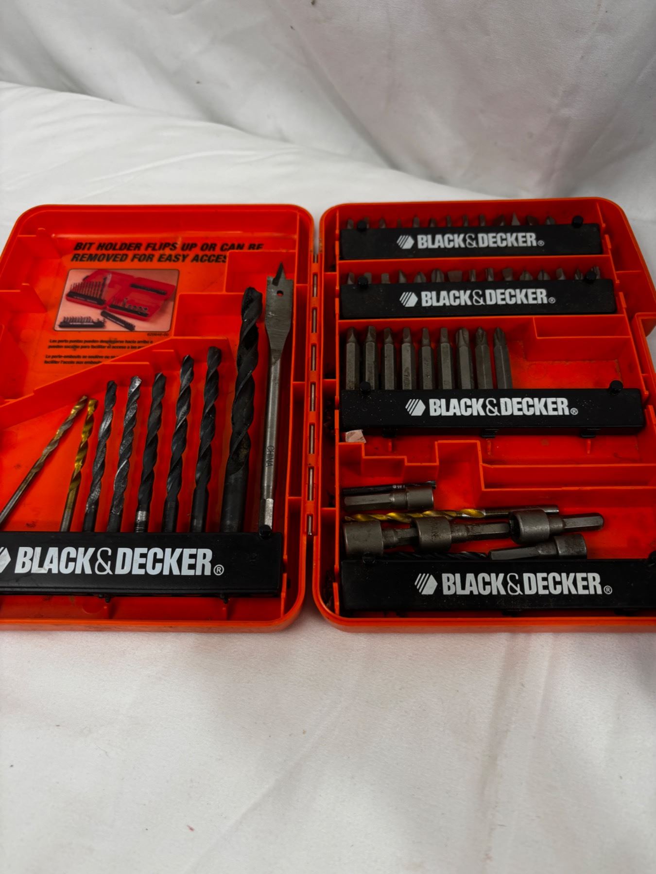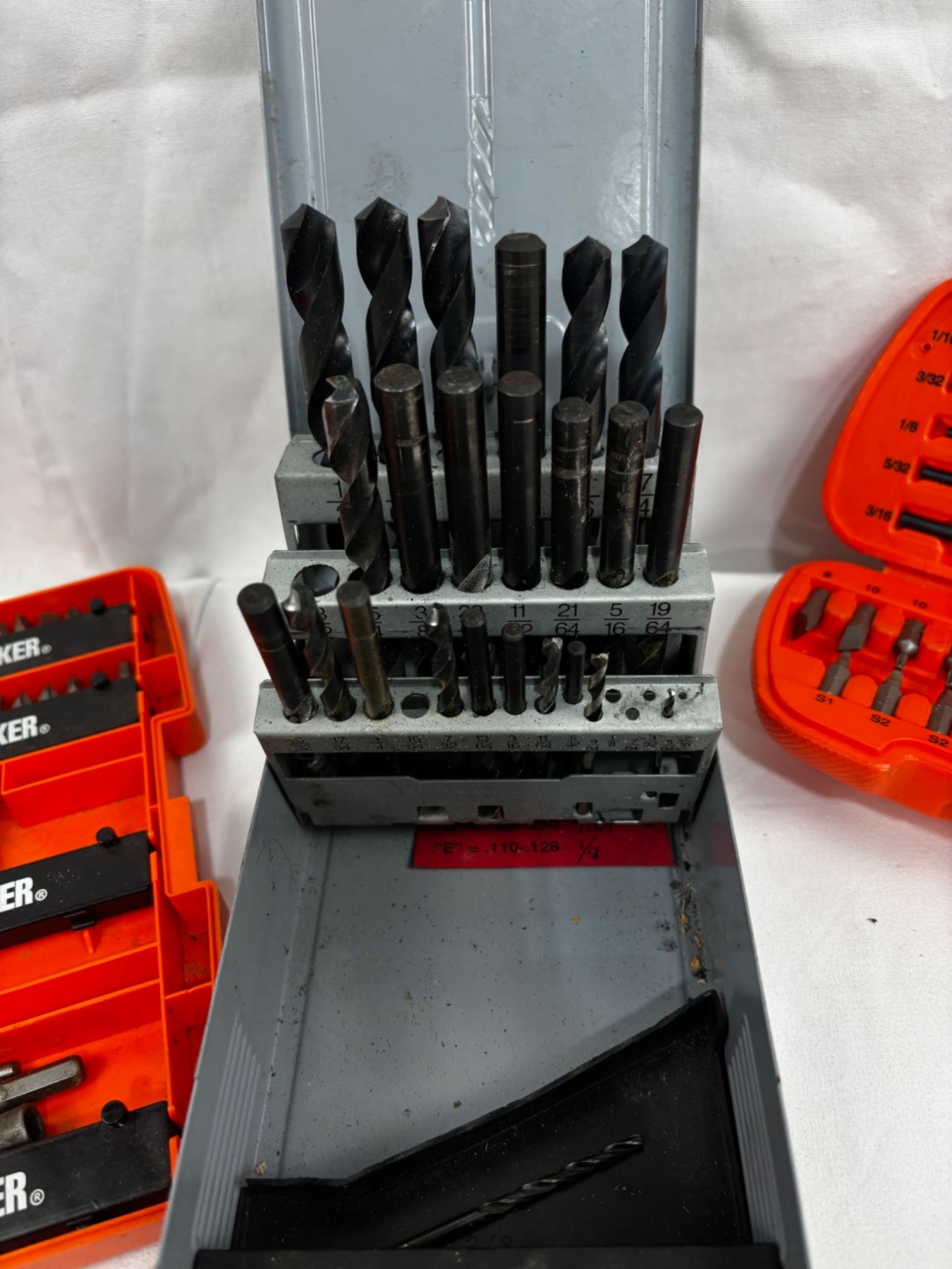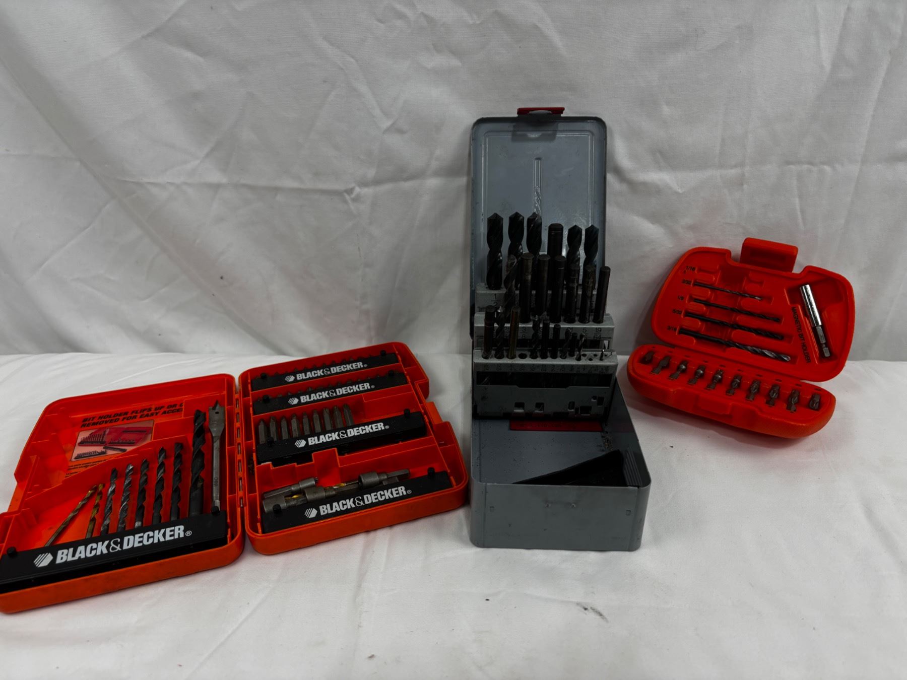 Includes 2 Black & Decker Sets and one Drill bit set, cannot guarantee that all of the pieces are accounted for