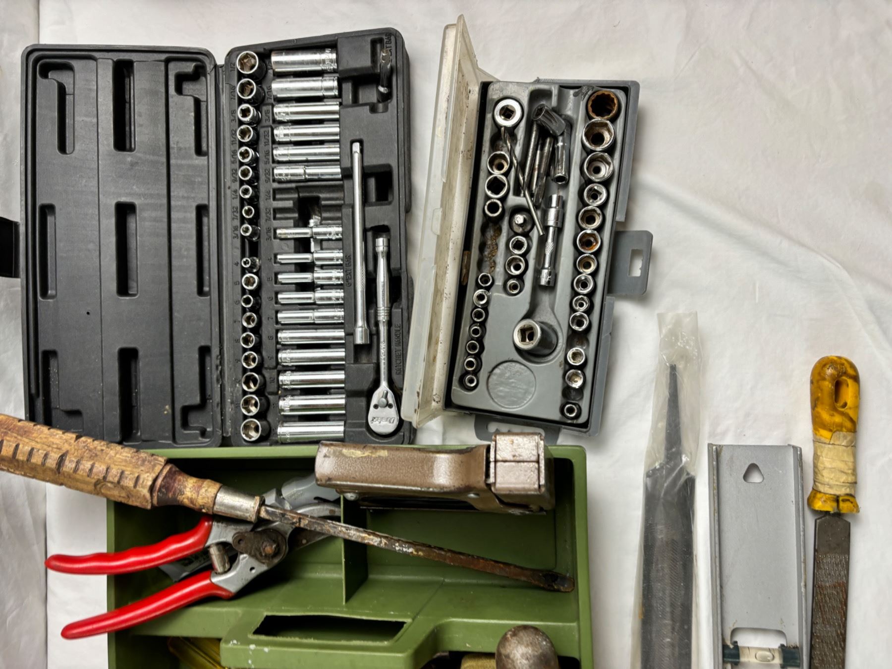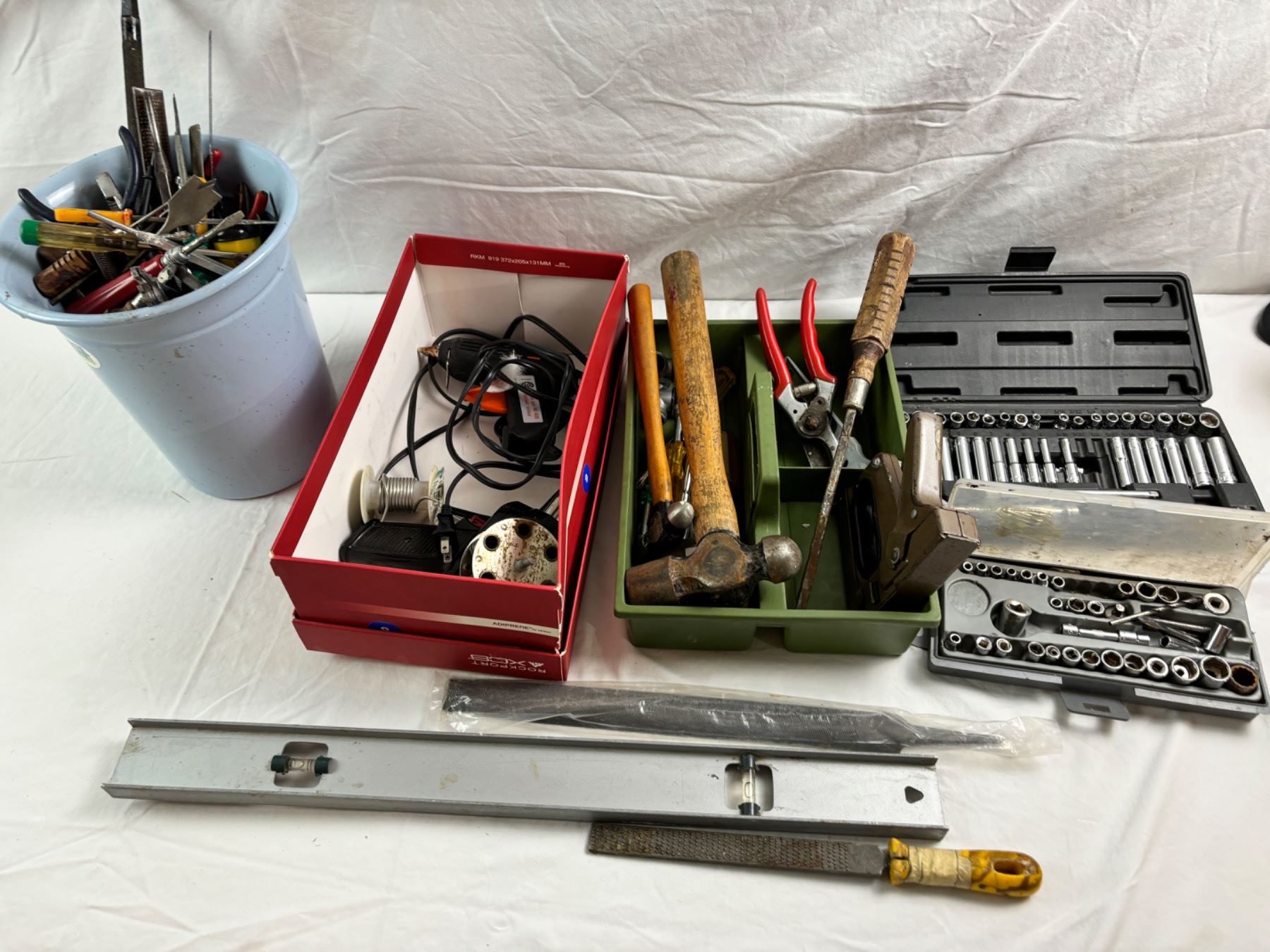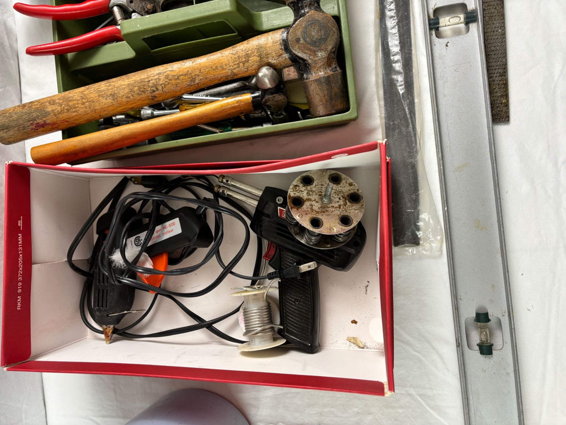 Includes, 2 Soldering irons (not tested), various screwdrivers, files, etc.