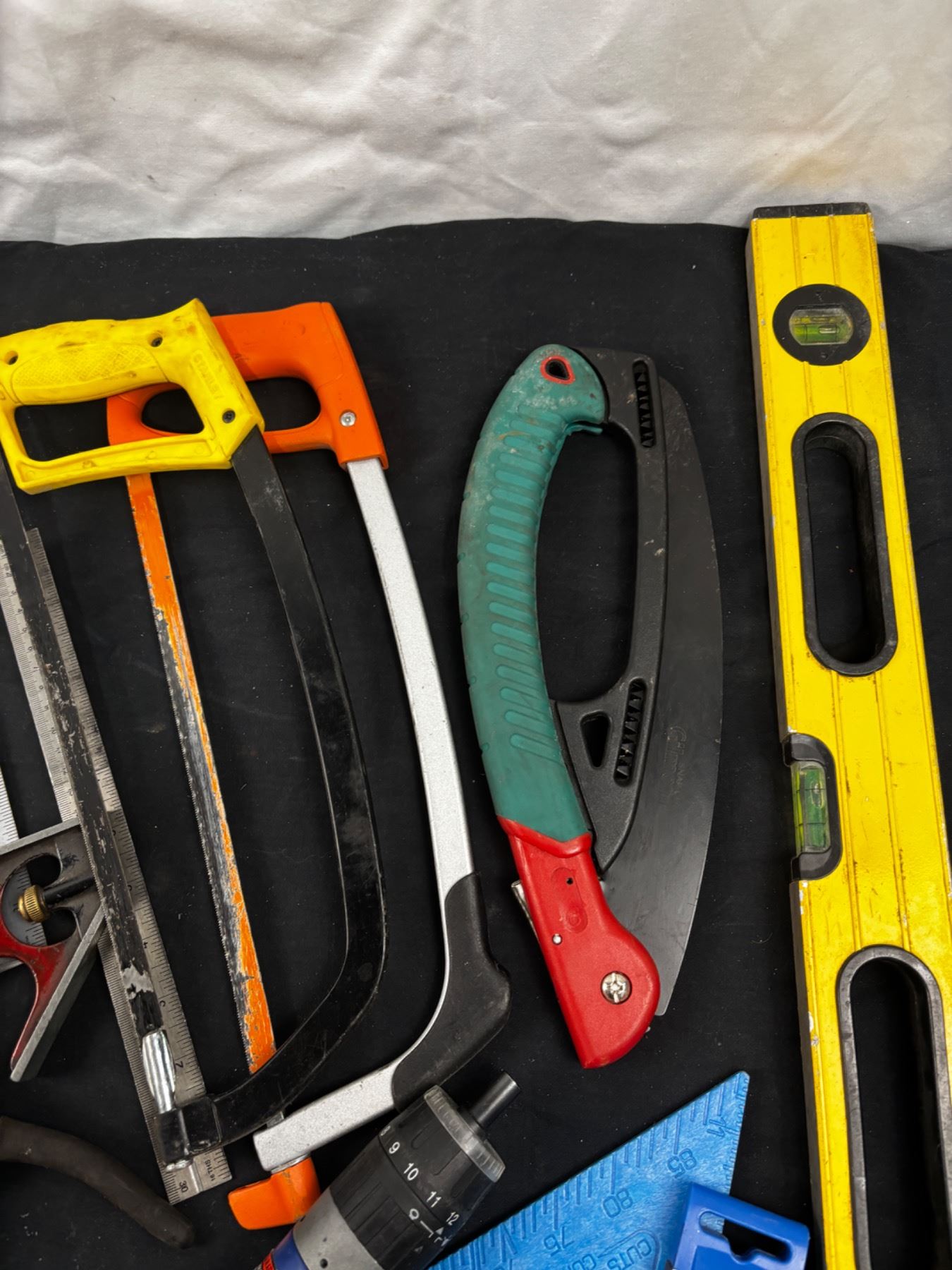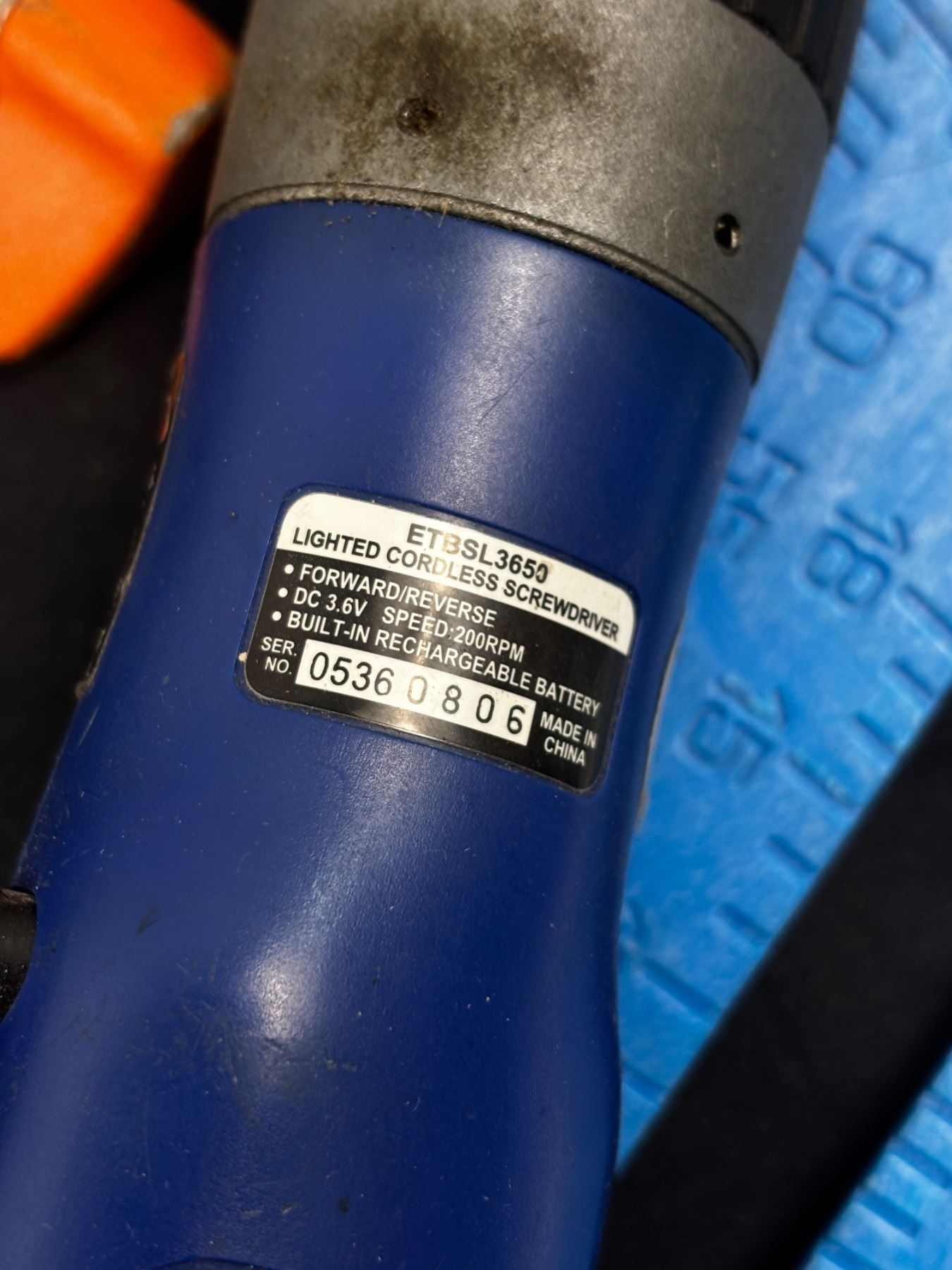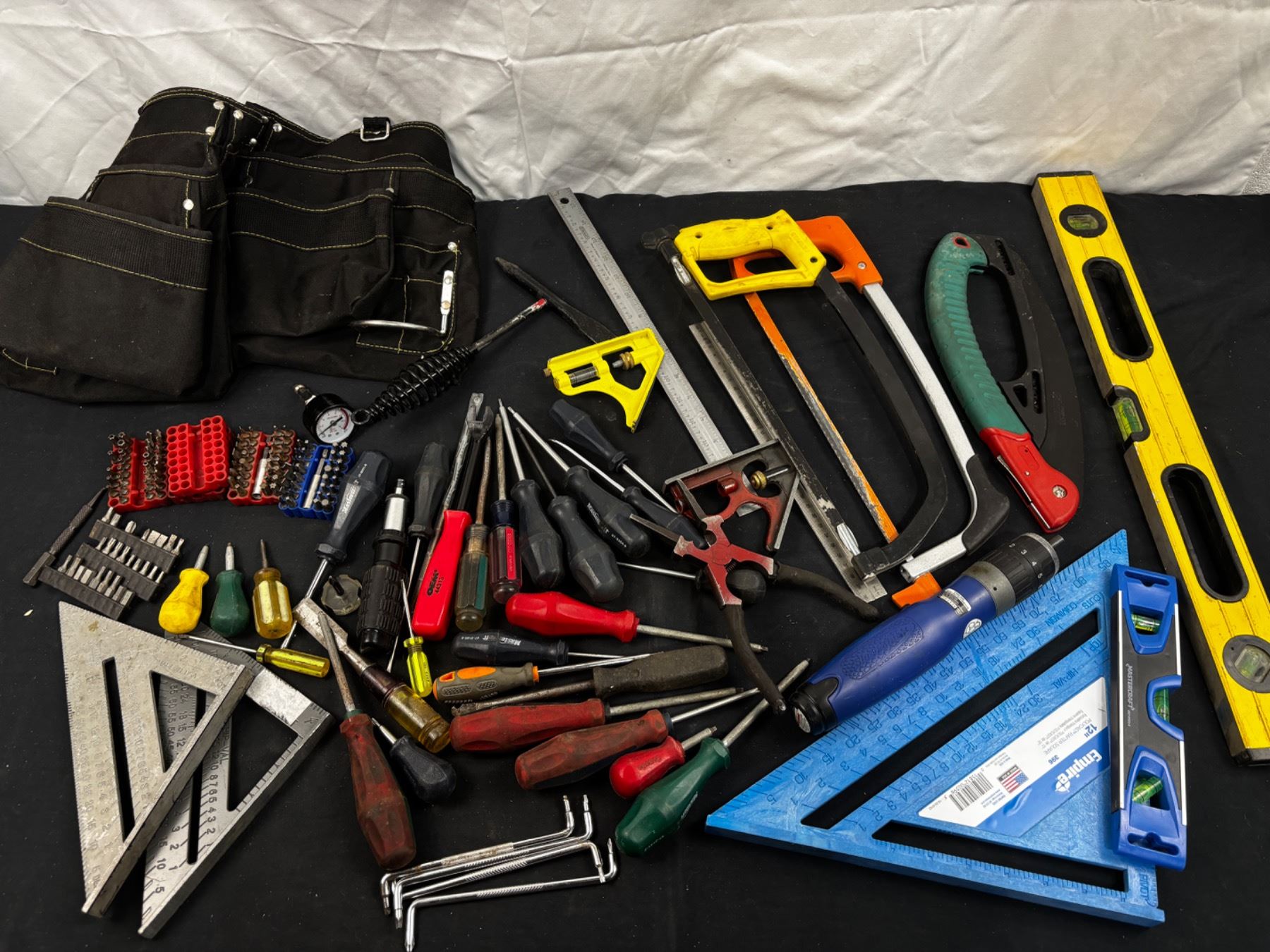 Includes, Powerfist Tool Belt, Lighted Cordless Screwdriver No. ETBSL3659 (works), Hand tools, Levels, and more