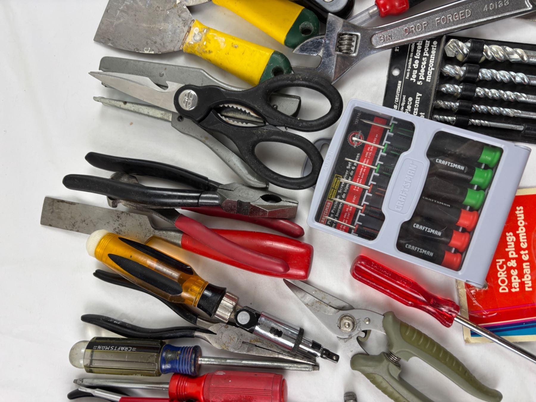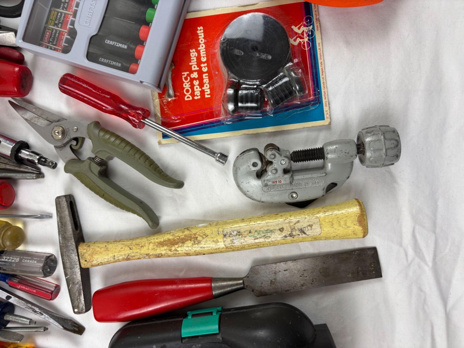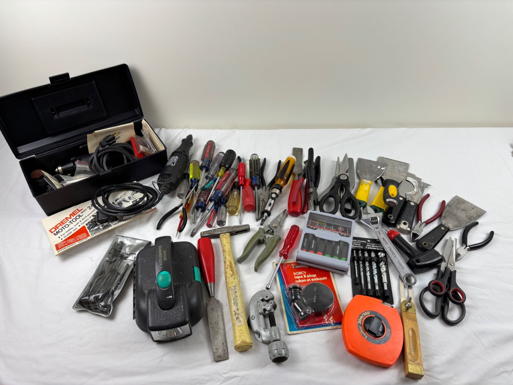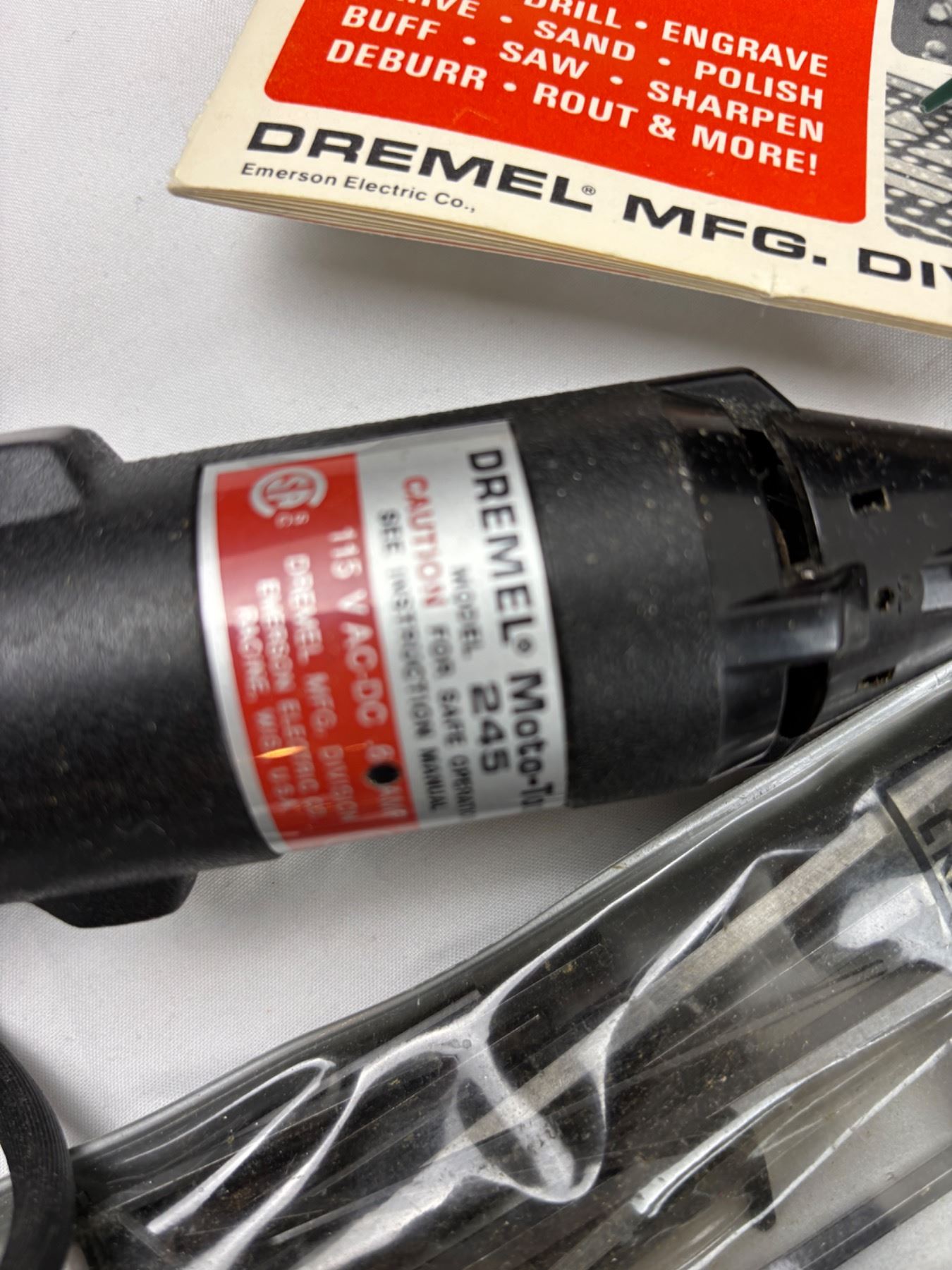 Includes a Dremel Model 245 and Craftsman Rotary Tool (turns on), various screwdrivers and hand tools