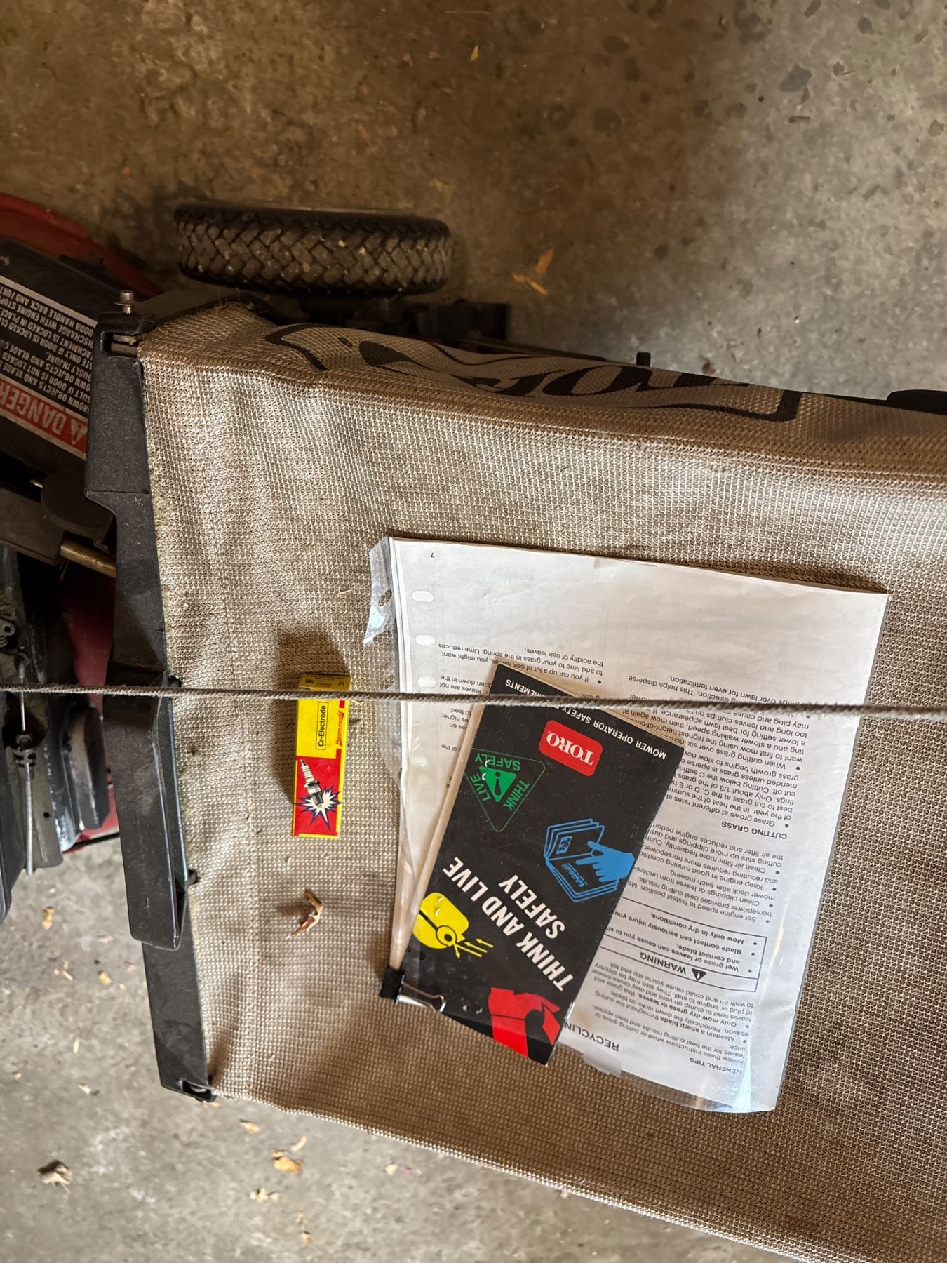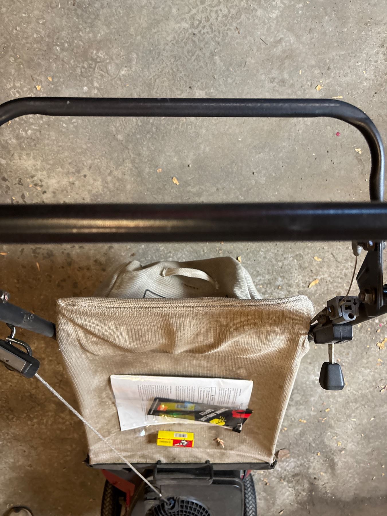 Includes a clipping bag and accessories, Not tested - Needs fuel, Model No. 20435