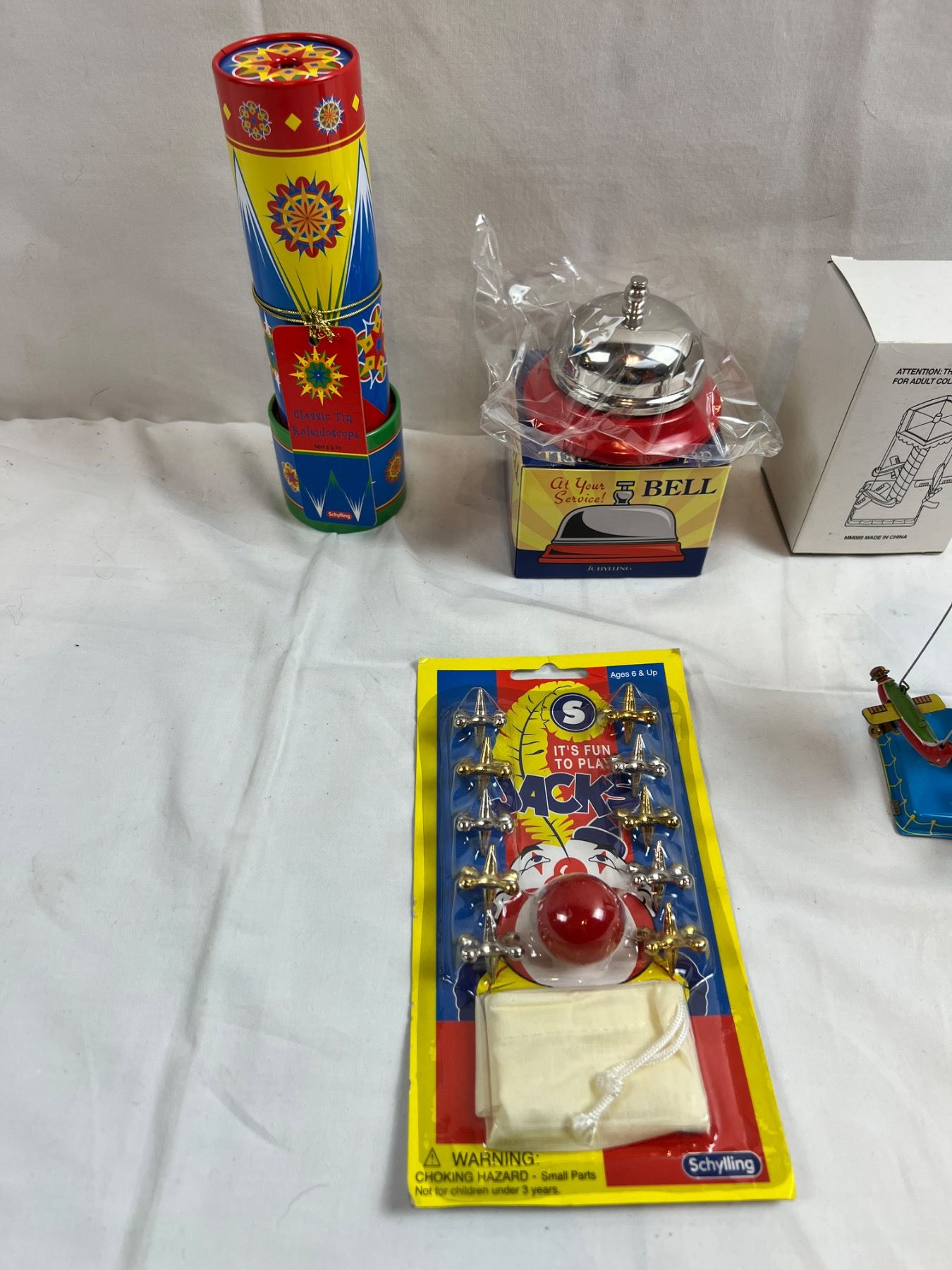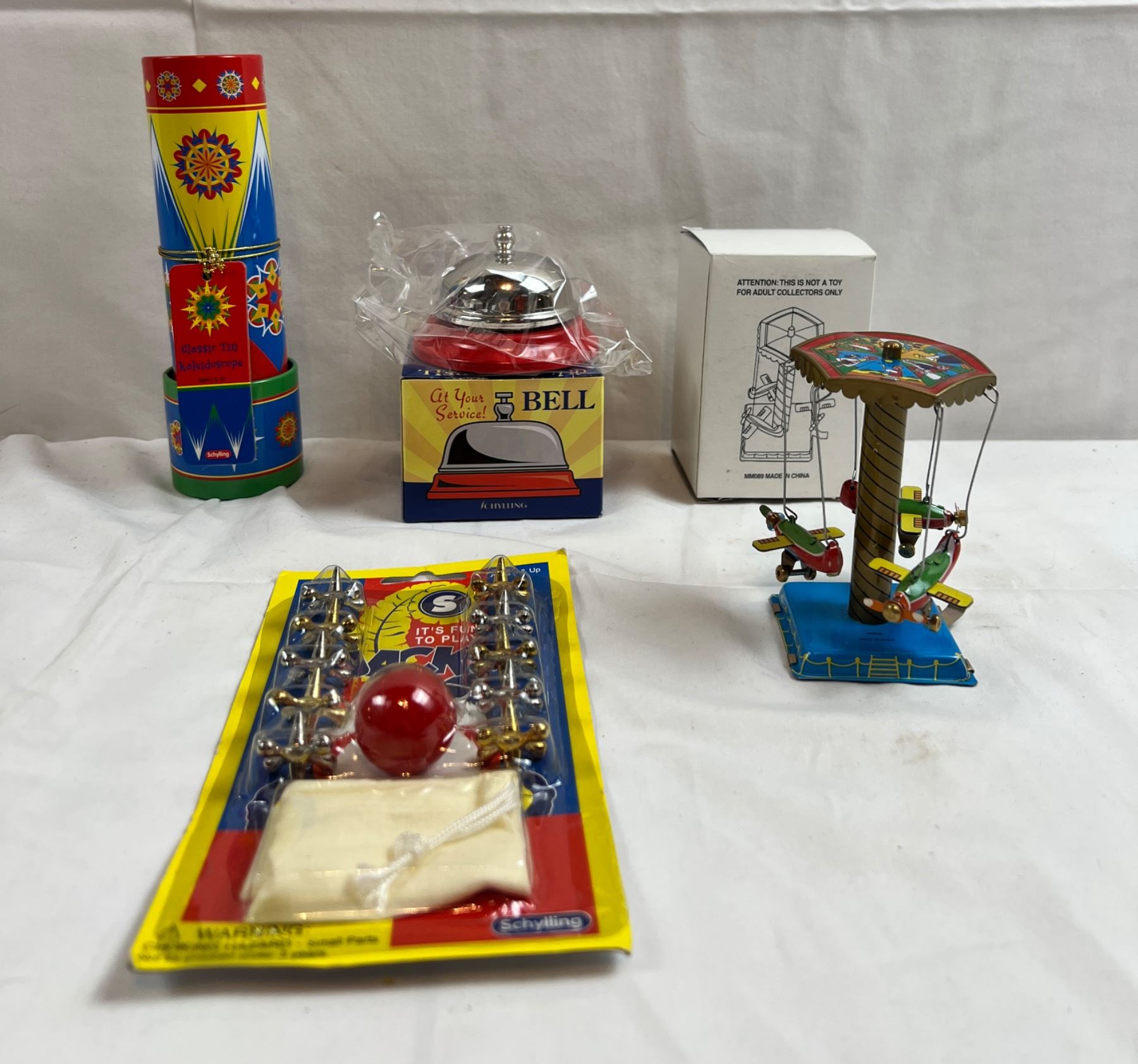 Includes jacks, kaleidoscope, bell and collectors miniature plane carnival.