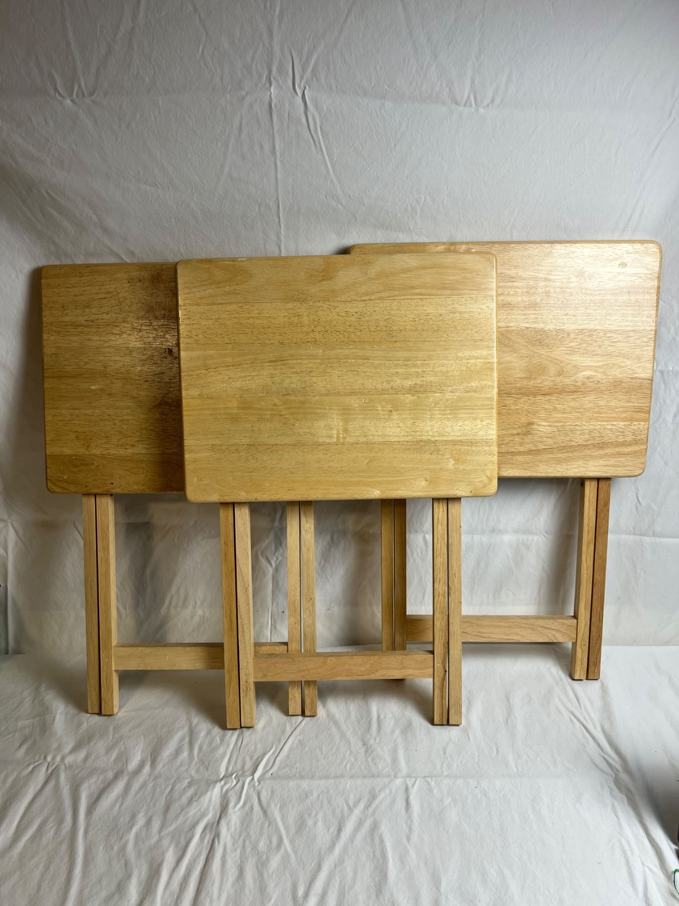 Stand 30" tall and table measure 19" by 15". Some stains and Bill is written on two of them in the way shown in photos.