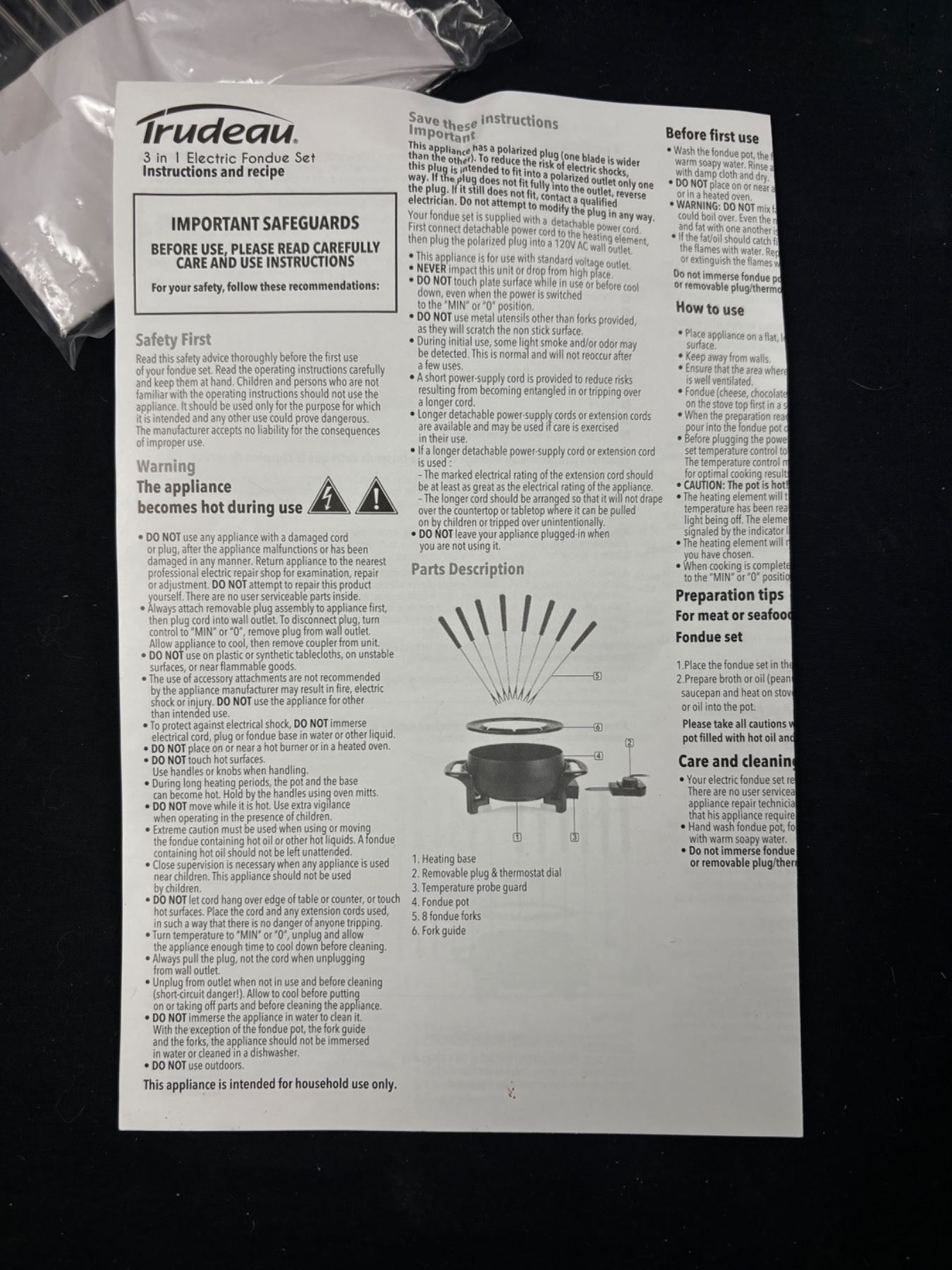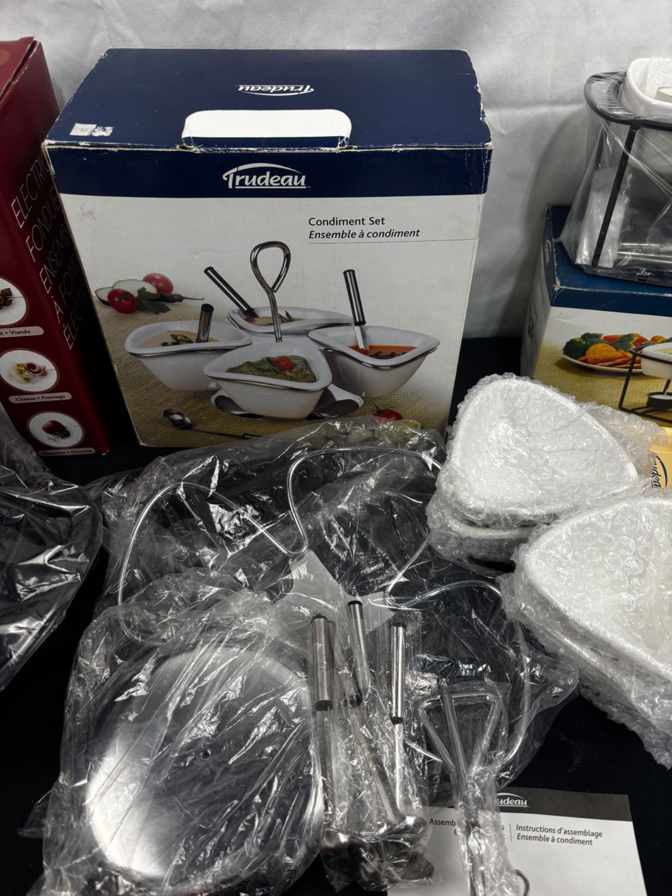 Includes 3 in 1 Electric Fondue Set, Triple Dip Set, Condiment Set & Preserving Pump
