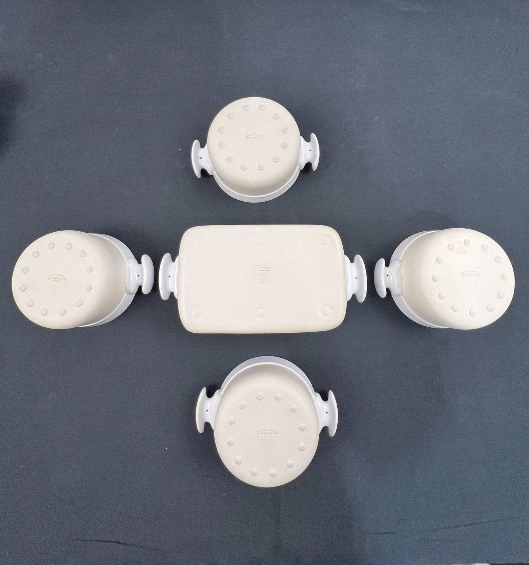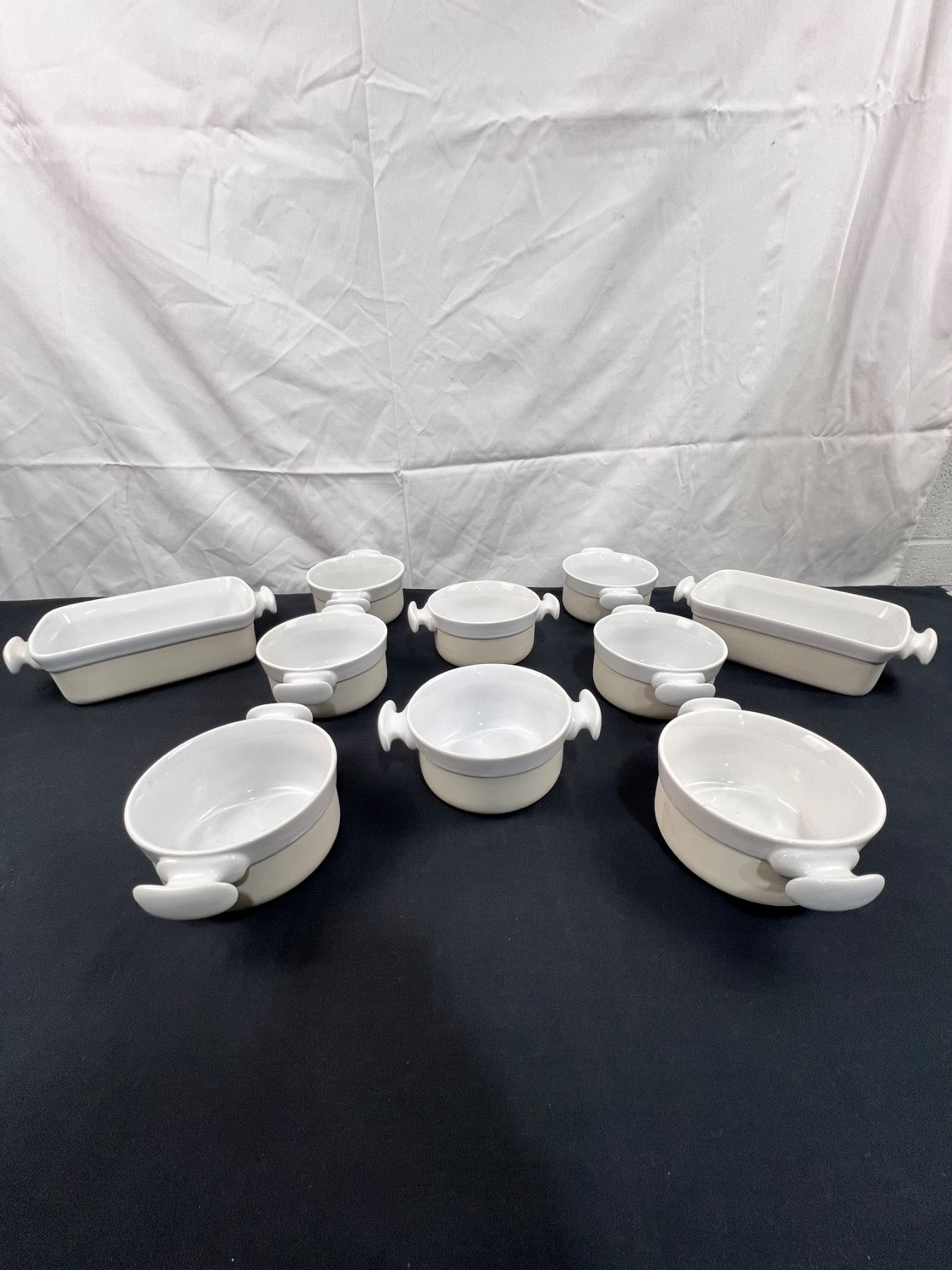 Includes, 2 rectangular dishes and 8 french onion soup bowls, some small stains